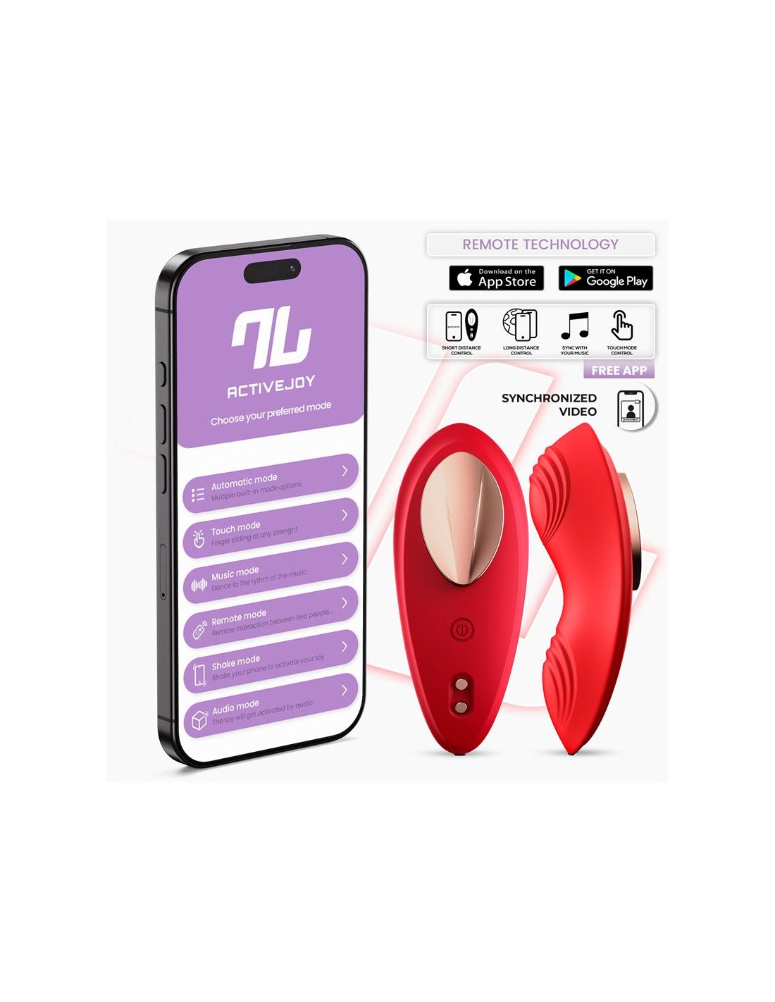 Lo más emocionante es la capacidad de controlar sus numerosas funciones a través de ActiveJoy®, nuestra aplicación gratuita. Esta innovadora App te permite disfrutar de estos juguetes a corta, media y larga distancia, brindándote flexibilidad y emoción.