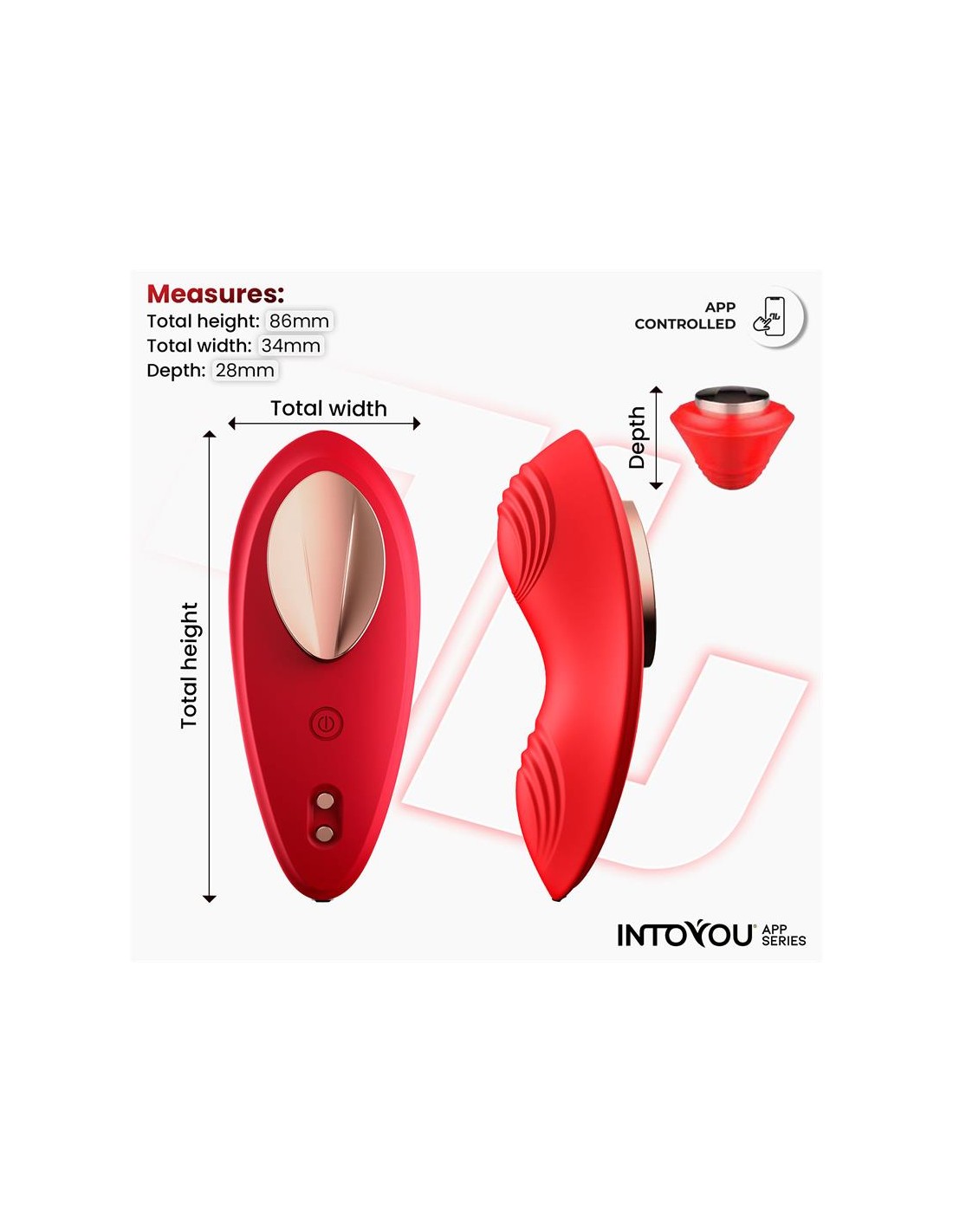 Ahora, echemos un vistazo a las características de la braguita. Ha sido diseñada ergonómicamente, con un diseño redondeado. Pero lo mejor de nuestra braguita es su tamaño y su motor. Con un tamaño compacto, es ideal para que se ajuste en tu ropa interior y solo te ofrezca placer, al mismo tiempo que es súper discreta. Al mismo tiempo cuenta con un motor potente pero silencioso. Con todo esto, la braguita vibradora de Intoyou® App Series es perfecta para llevártela donde quieras.