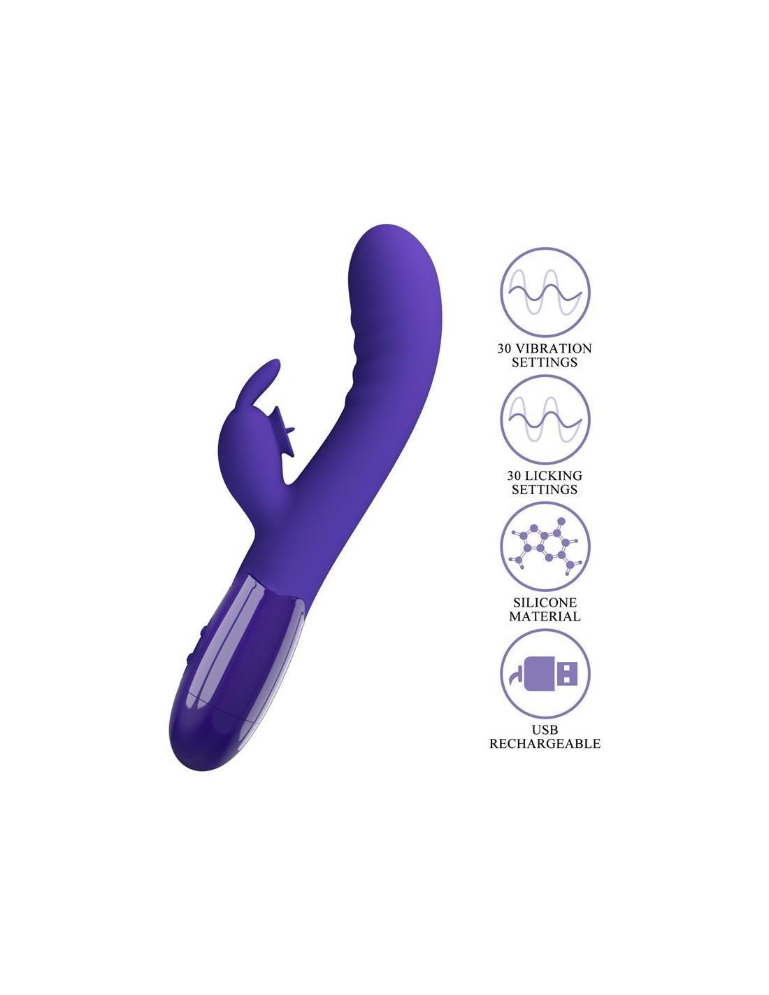 Este suave vibrador de silicona con conejito de 30 funciones está increíblemente equipado para proporcionarte un intenso placer noche tras noche. La forma de este juguete es elegante y estilizado con un cuerpo suave y curvado, con una cabeza gruesa para alcanzar tu punto G interno y un pequeño estimulador de clítoris en forma de conejito curvado para garantizar orgasmos intensos. El vibrador tiene 30 configuraciones de vibración diferentes para brindarte horas de juego interminable.
