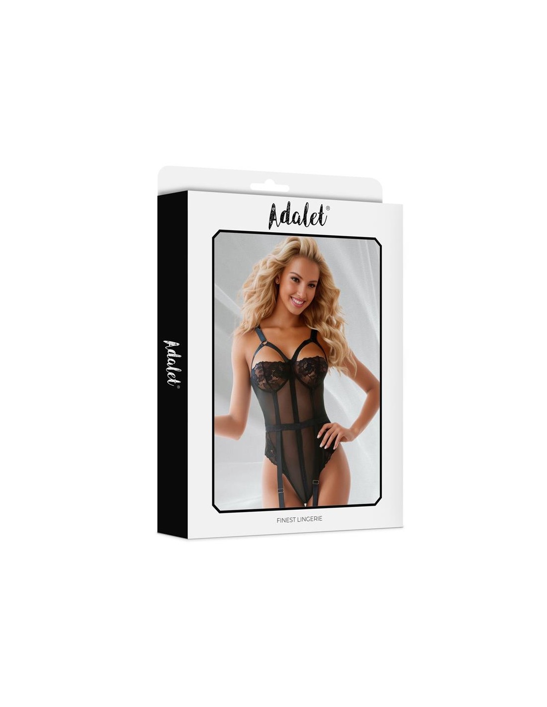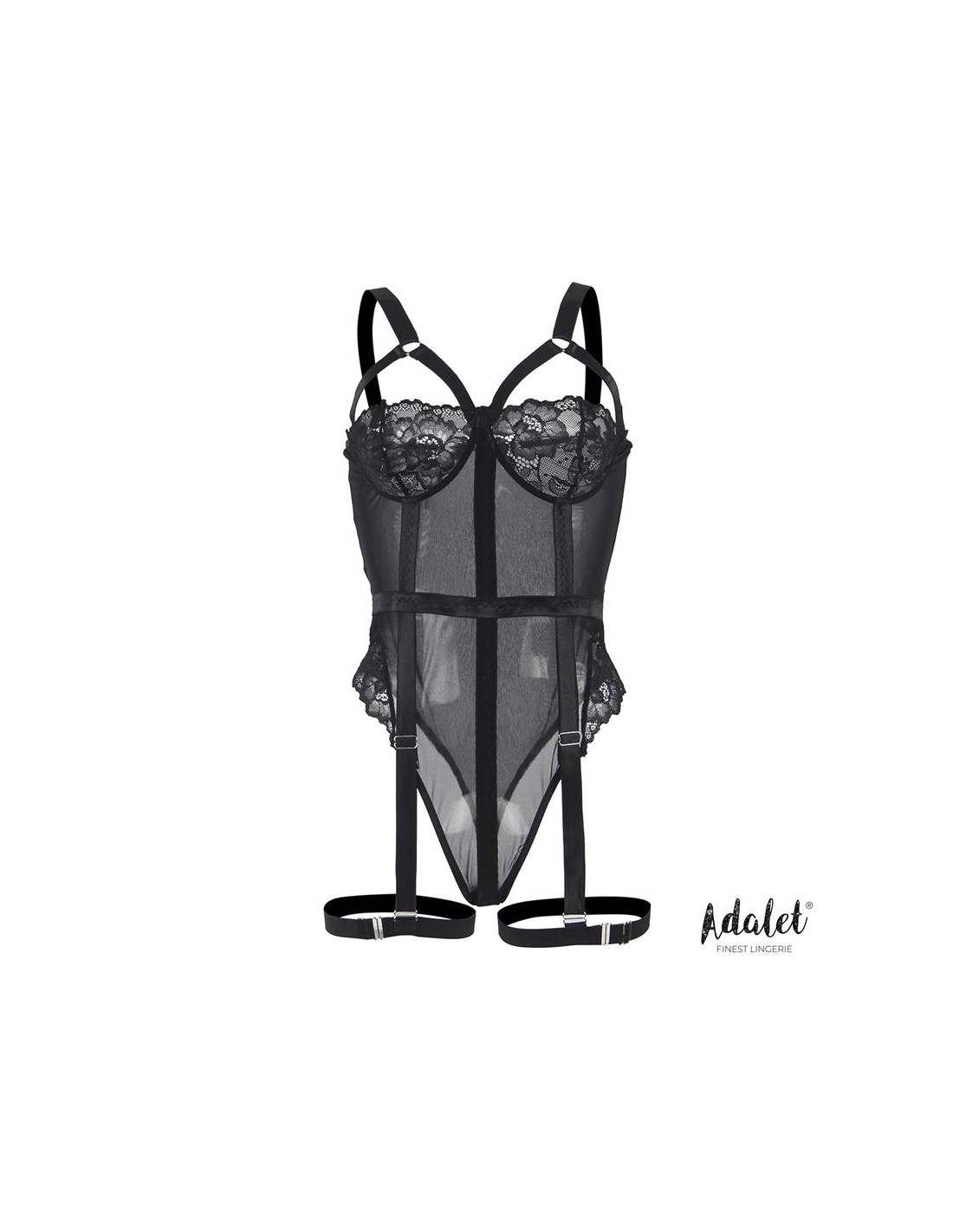 Eleva pasiones con el body Ariana. Este body cuenta con un pecho con medias copas y con una serie de tiras que abrazan tus pechos dándoles una forma más redondeada. Al mismo tiempo, desde la parte de la cintura sale el ligero que acaba en una liga.