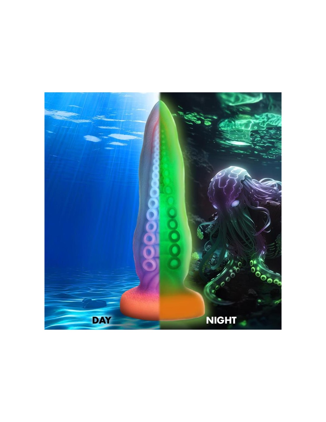 Lo mejor de todo es que nuestro dildo en forma de tentáculo está completamente libre de ftalatos, así que puedes concentrarte por completo en tu placer sin preocuparte por sustancias dañinas. Deja volar tu imaginación con este juguete único y luminoso, y vive aventuras nocturnas como nunca antes.