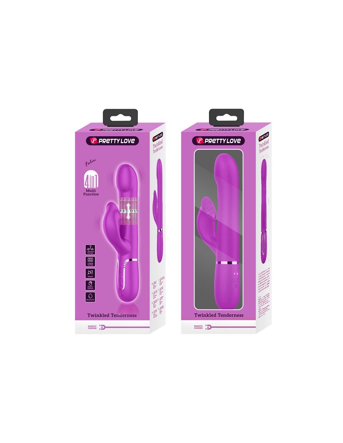 Diseñado para el máximo placer, disfruta del Pretty Love Rabbit Vibrator sin salir de la cama. Con potentes motores duales, uno ubicado en la punta y el otro en el brazo externo, te prometemos que encontrarás la vibración perfecta con 7 intensidades y ritmos que te llevarán a un poderoso clímax combinado. Con una fila única de cuentas rígidas que se desplazan hacia arriba y hacia abajo en un masaje íntimo súper emocionante, disfruta de los tres niveles de velocidad. Para un placer aún mayor, presiona el Botón de Clímax Explosivo y explora orgasmos increíbles y estremecedores.