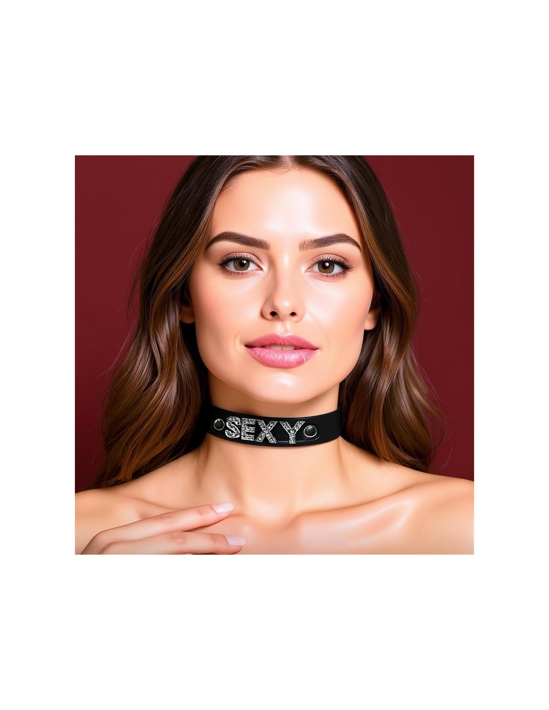 Este collar, con la palabra Sexy en piedras brillantes, ha sido pensado para dar ese toque extra a tu look, ya sea en una noche de pasión con tu pareja o cuando quieras dar la nota en una noche de fiesta.