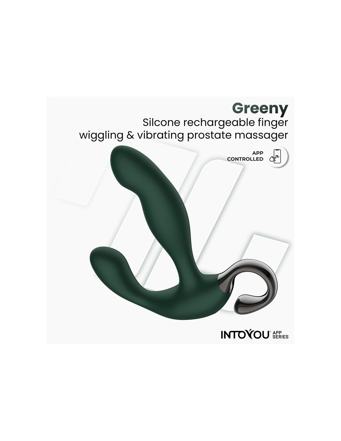 Greeny, como su nombre indica, es de un color verde profundo. Su forma ha sido diseñada para la estimulación anal, más concretamente de la zona de la próstata.