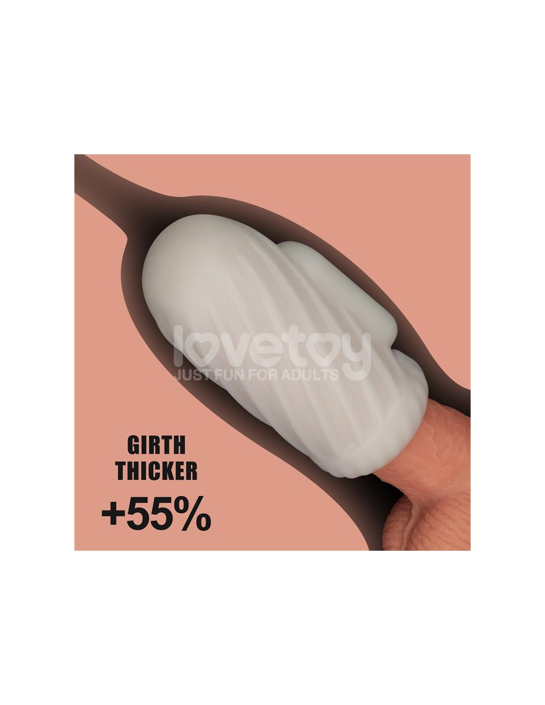 Fabricada con TPE de alta calidad, duradero y no tóxico, asegura un uso seguro y de larga duración. Disfruta de una mejora significativa en la intimidad, ofreciendo a tu pareja una sensación más plena y placentera gracias a un aumento de al menos un 55% en el grosor.