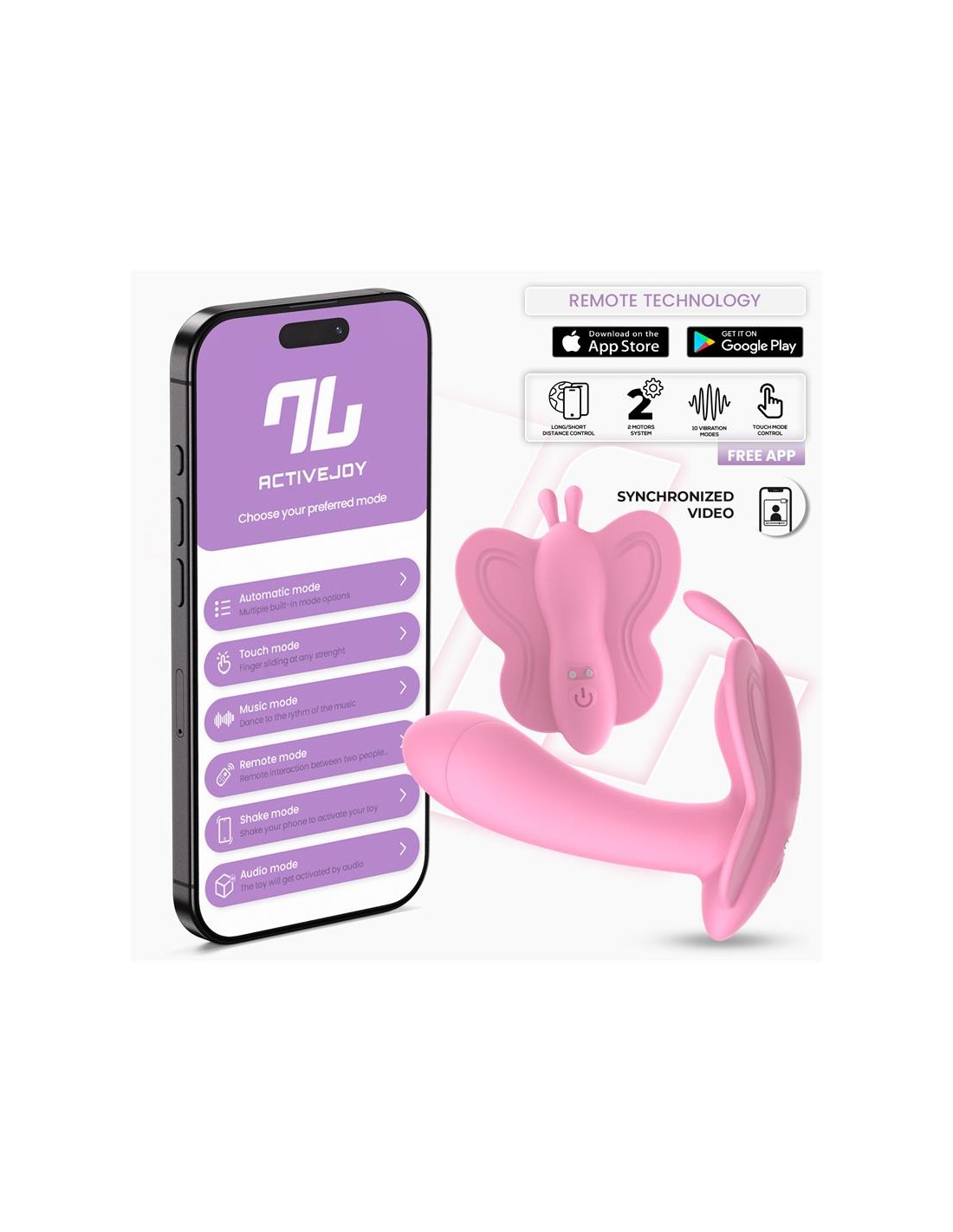 Lo más emocionante es la capacidad de controlar sus numerosas funciones a través de ActiveJoy®, nuestra aplicación gratuita. Esta innovadora App te permite disfrutar de estos juguetes a corta, media y larga distancia, brindándote flexibilidad y emoción.