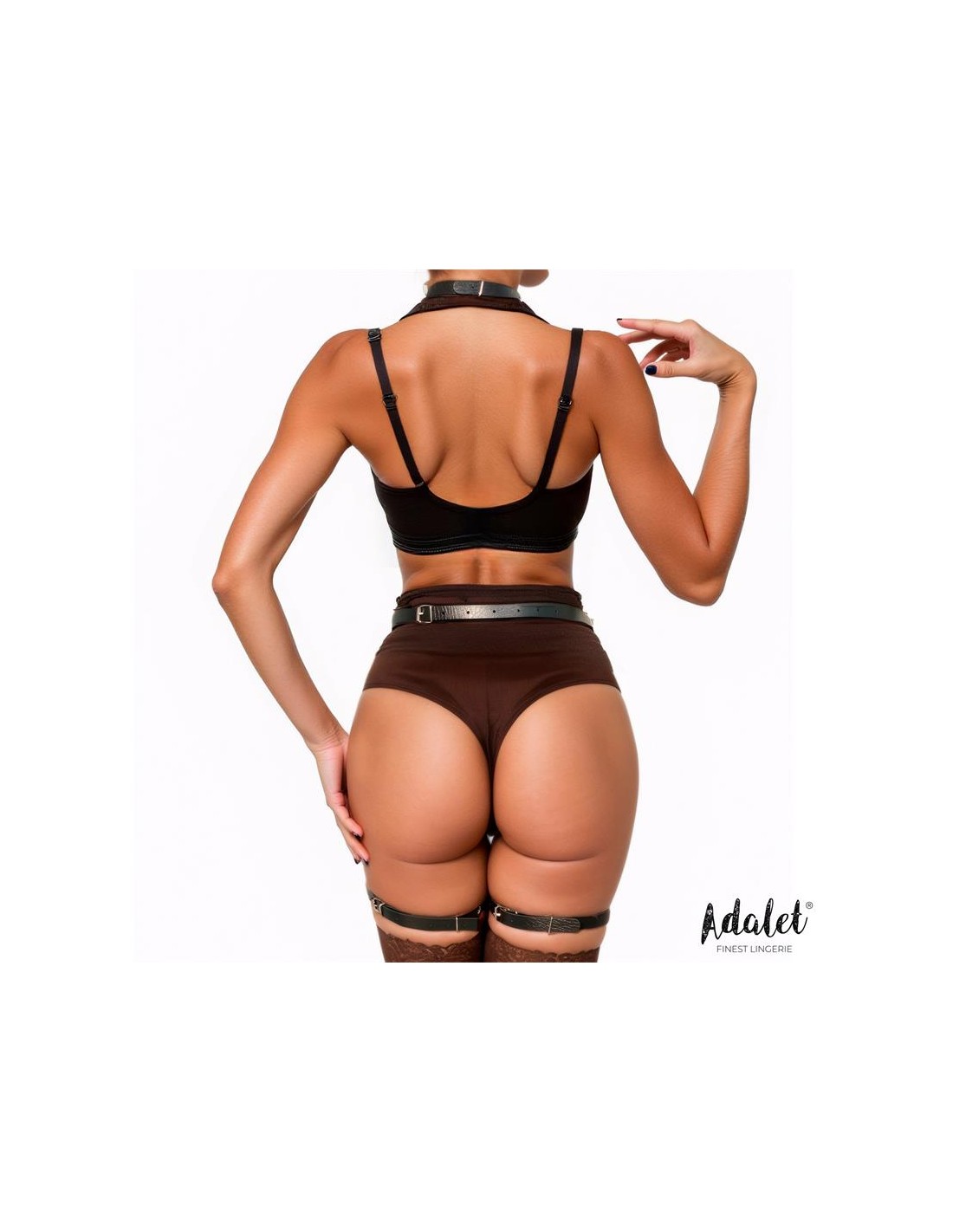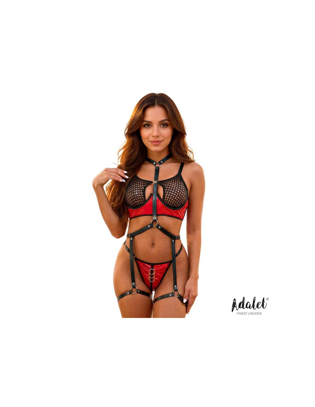 Deja con la boca abierta a tu pareja con este arnés de cuerpo entero. Cuenta con una zona para el cuello, una tira que cruza tu pecho hacia la cintura, y unas tiras que simulan unas ligas. Es ajustable en la zona del cuello, en la cintura y en las ligas.