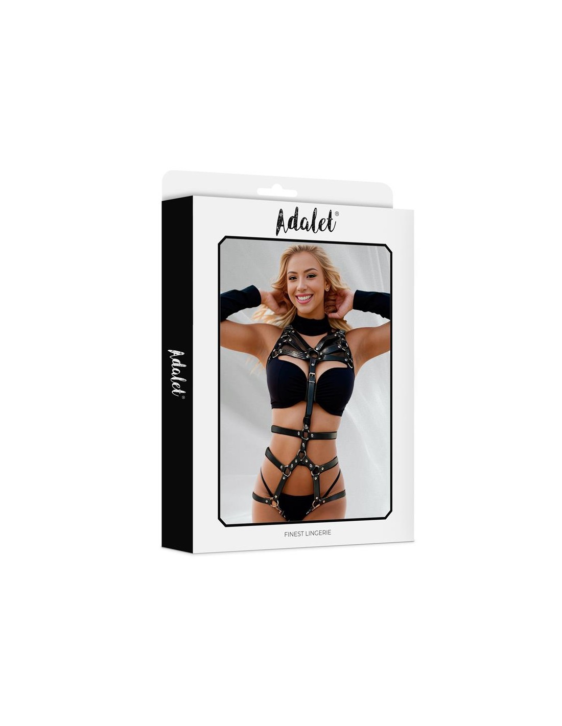 Deja salir a tu kinky interior con este teddy tipo arnés. Fabricado de cuero vegano, cuenta con una serie de tiras, arandelas y corchetes, los cuales adornar tu cuerpo y lo hacen irresistible.