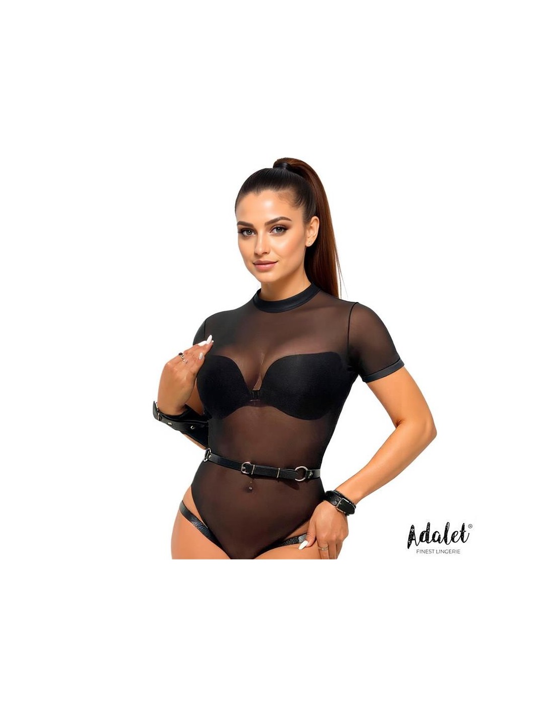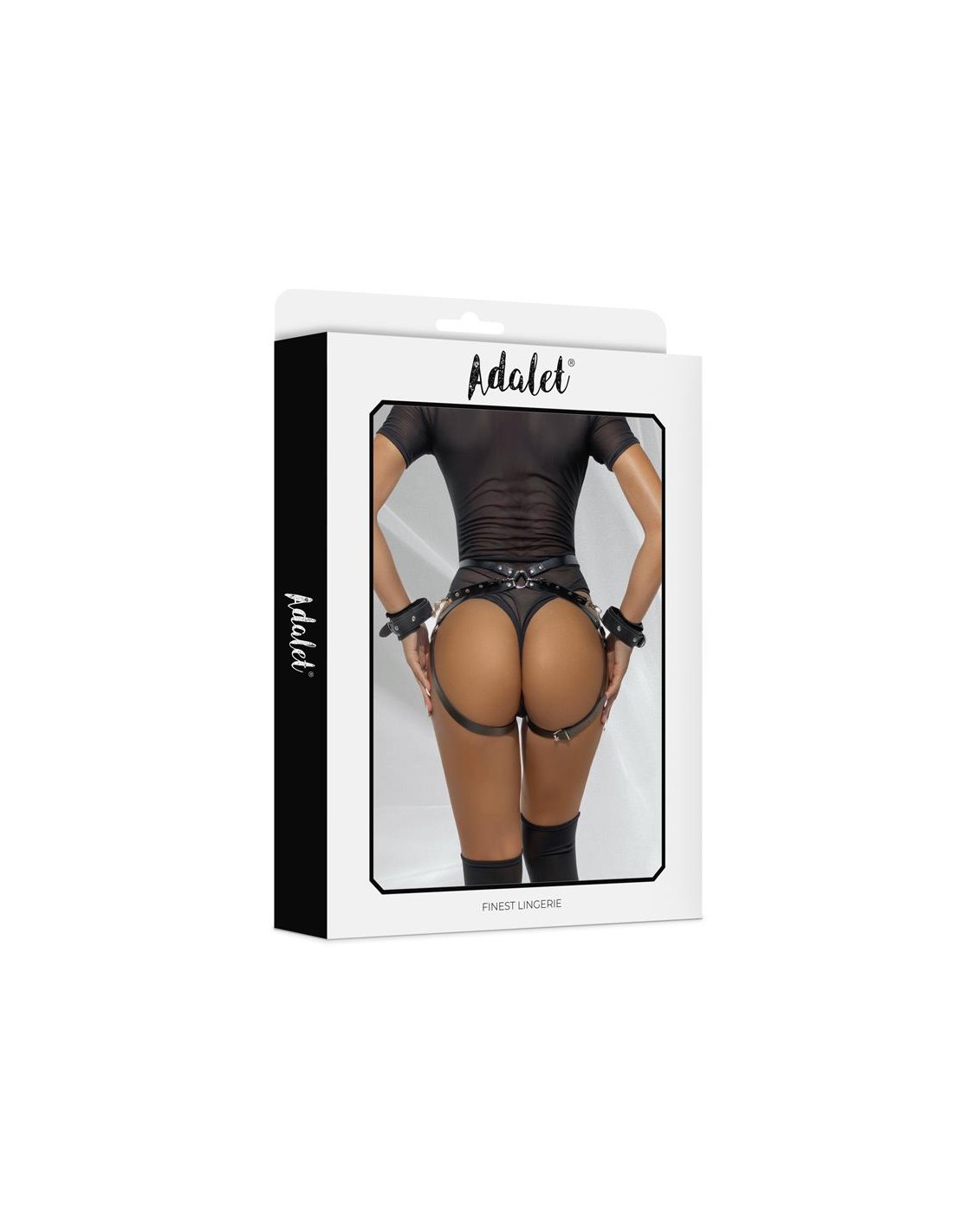 La mezcla perfecta entre lencería y bondage. Este liguero cuenta con unas tiras extra en la espalda, a las cuales van unidas unas esposas, perfecto para que tu sumiso se mueva solo lo necesario.