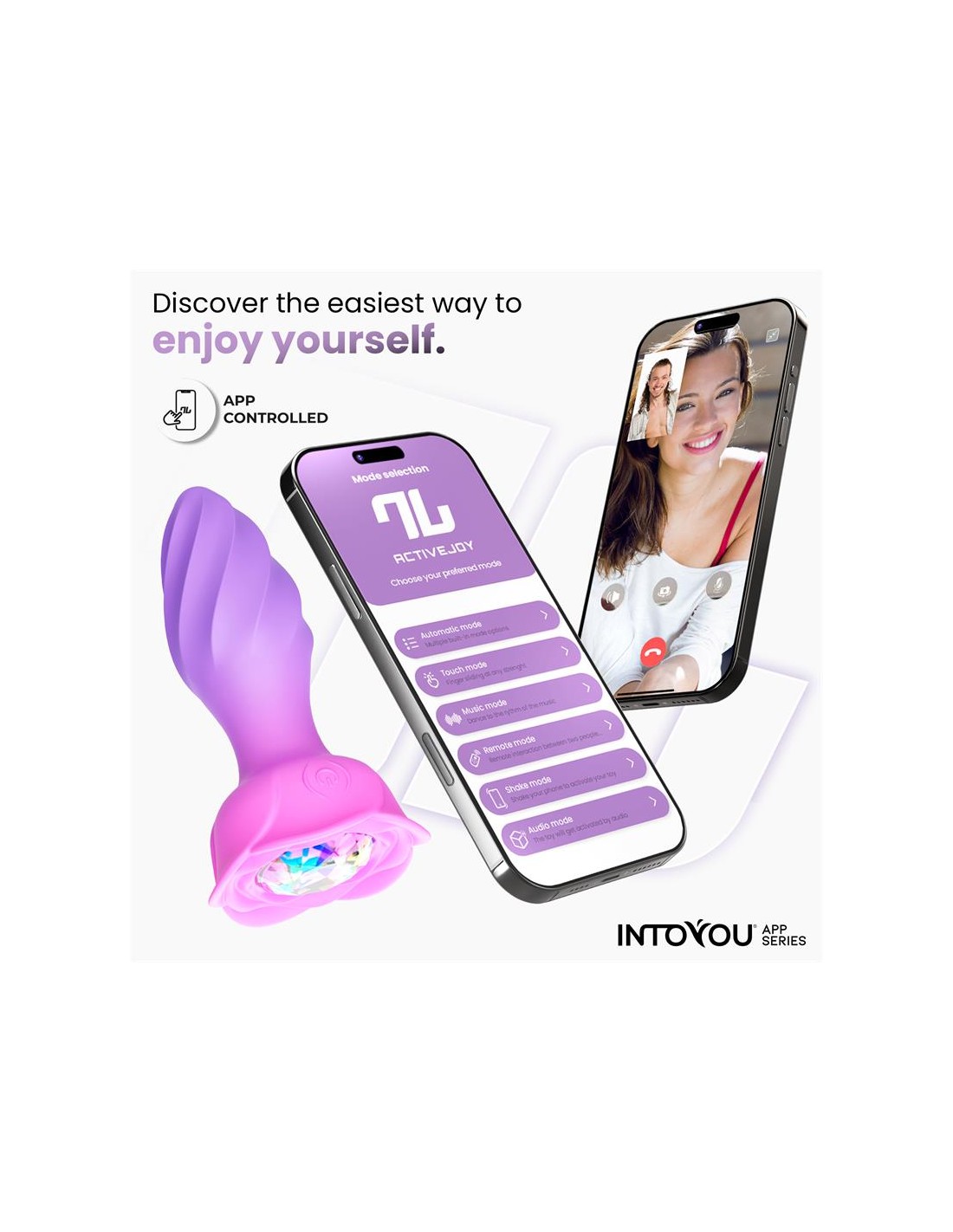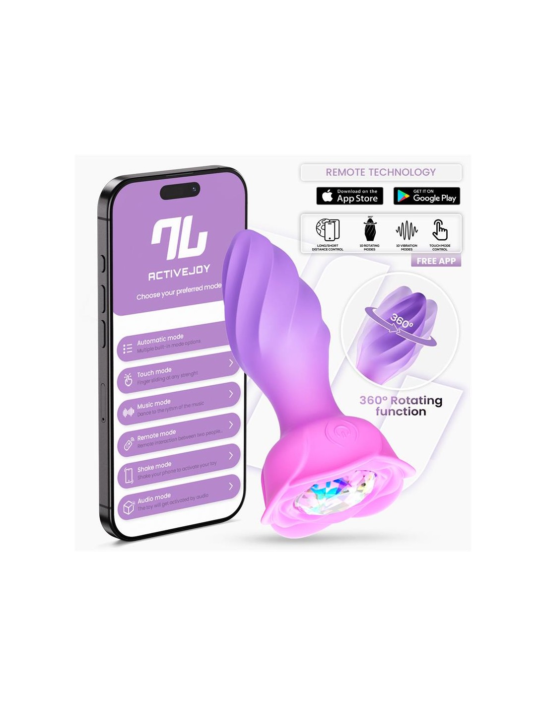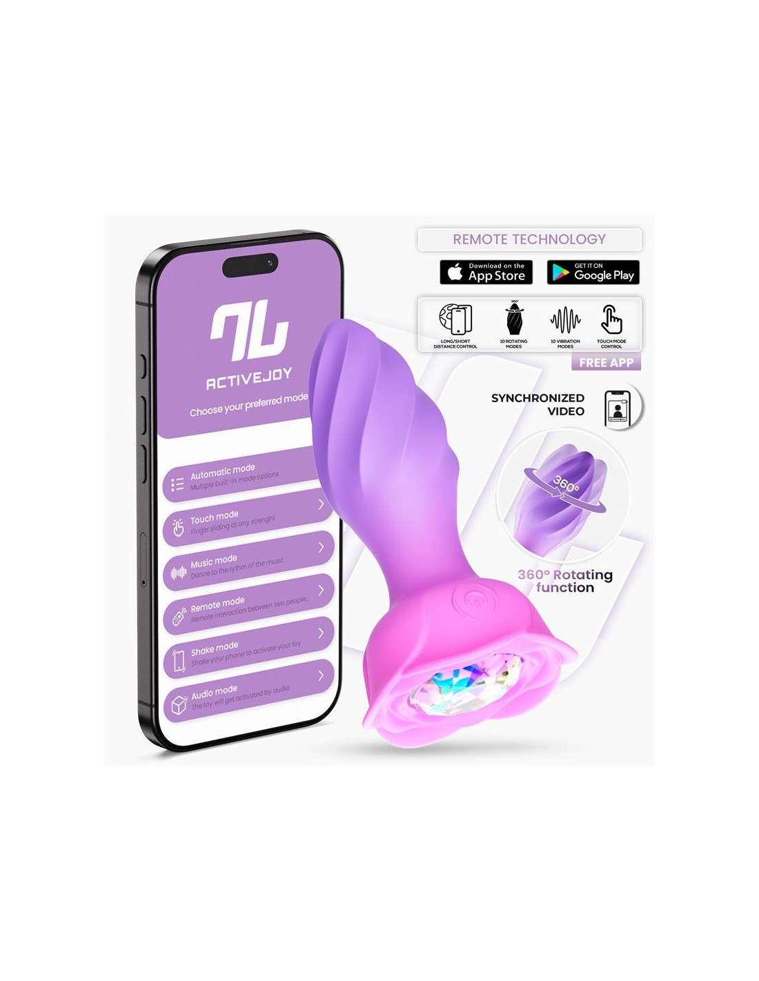 Lo más emocionante es la capacidad de controlar sus numerosas funciones a través de ActiveJoy®, nuestra aplicación gratuita. Esta innovadora App te permite disfrutar de estos juguetes a corta, media y larga distancia, brindándote flexibilidad y emoción.