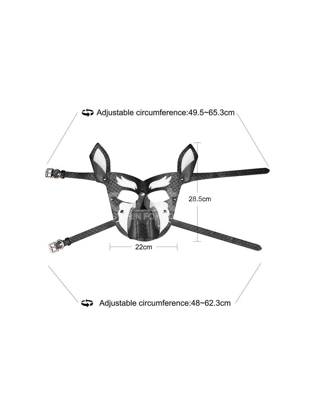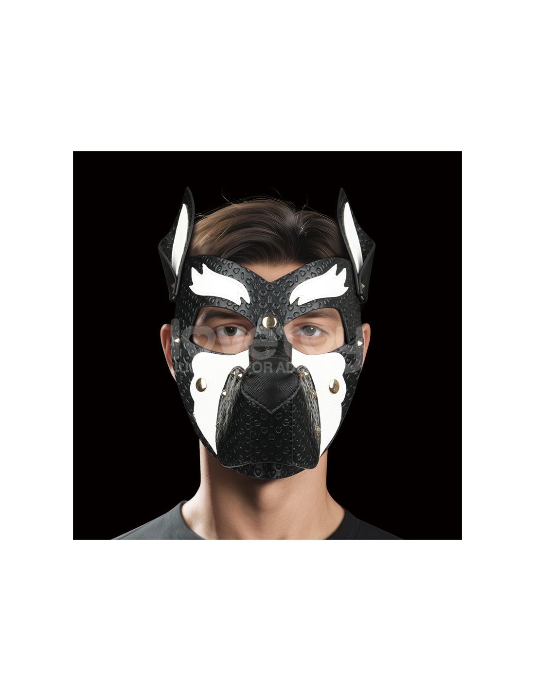 Fabricada en PU de alta calidad, esta máscara destaca por su llamativo diseño bicolor en negro y marrón, creando una presencia audaz e imponente. La base negra texturizada añade profundidad y misterio, mientras que los ricos acentos marrones en el hocico, las orejas y la frente ofrecen un cálido contraste, realzando su atractivo dinámico y elegante.