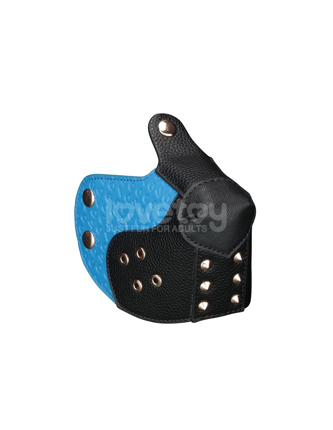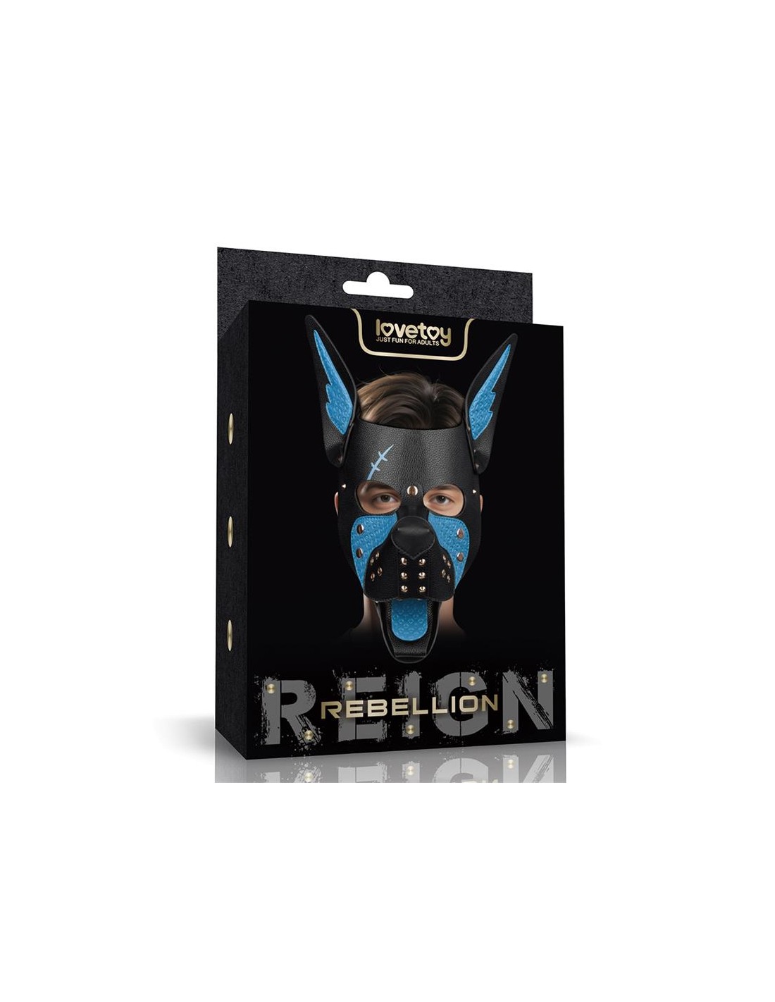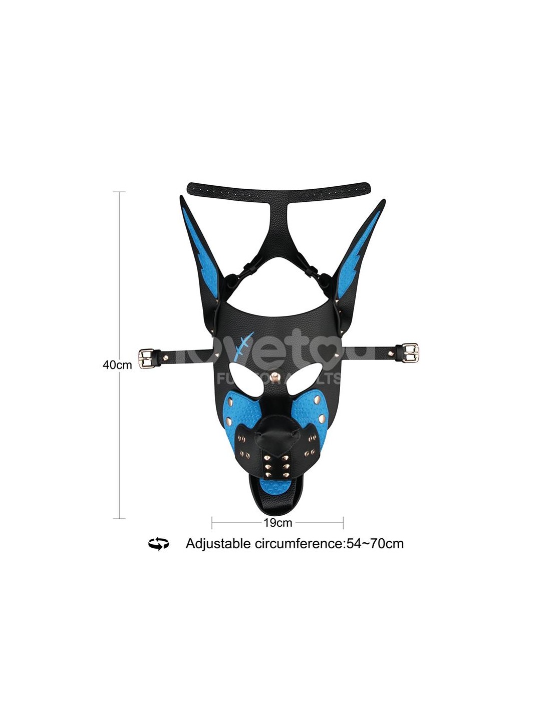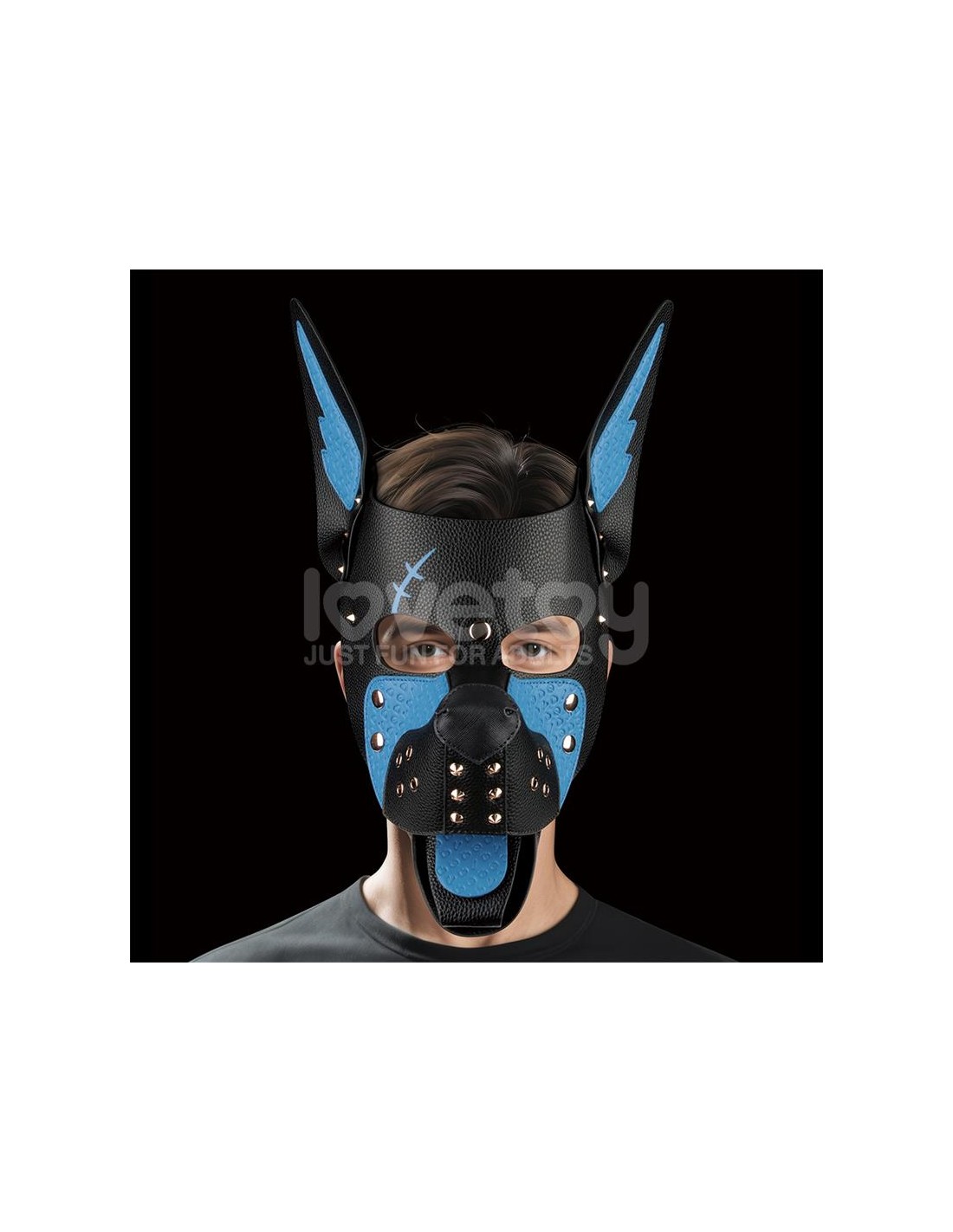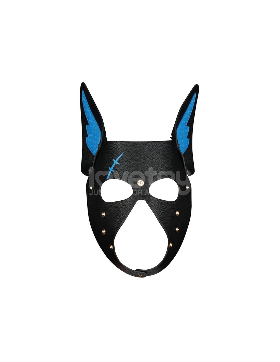 Elaborada en PU de primera calidad, esta máscara presenta una base texturizada en negro intenso con llamativos detalles azules, incluyendo un detalle de cicatriz grabado que añade una sensación de intensidad de batalla. La larga lengua azul y el hocico estructurado crean una estética de cachorro feroz e inmersiva, pero con un toque especial: tanto la lengua como el hocico son completamente extraíbles, ofreciendo opciones de juego versátiles para todos los gustos.