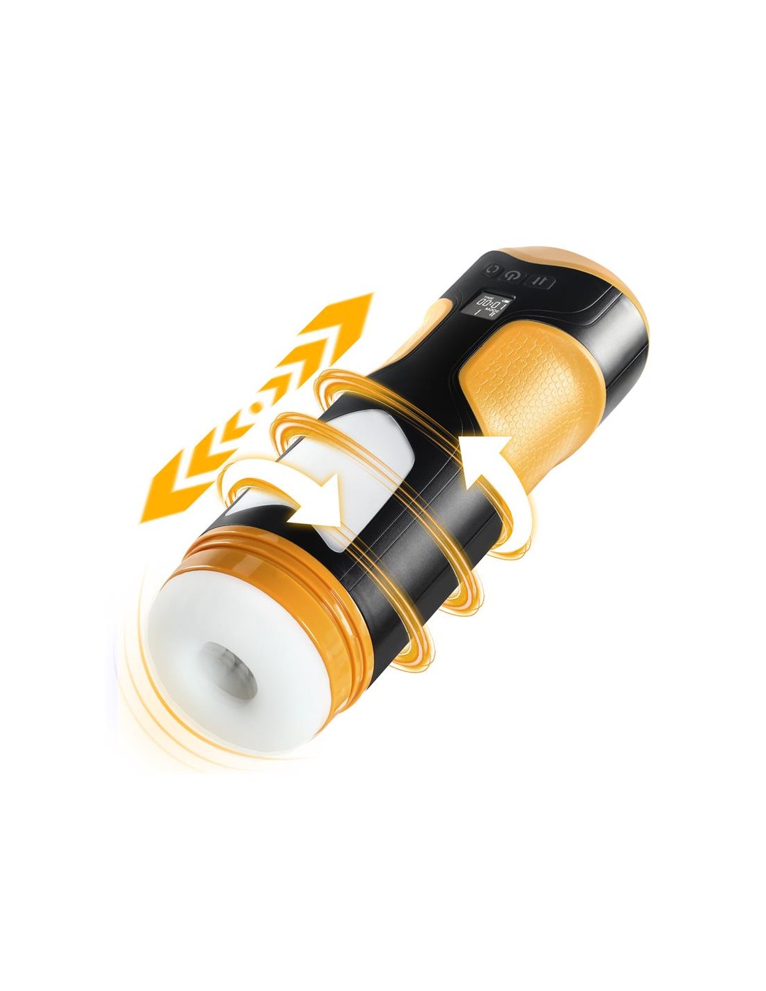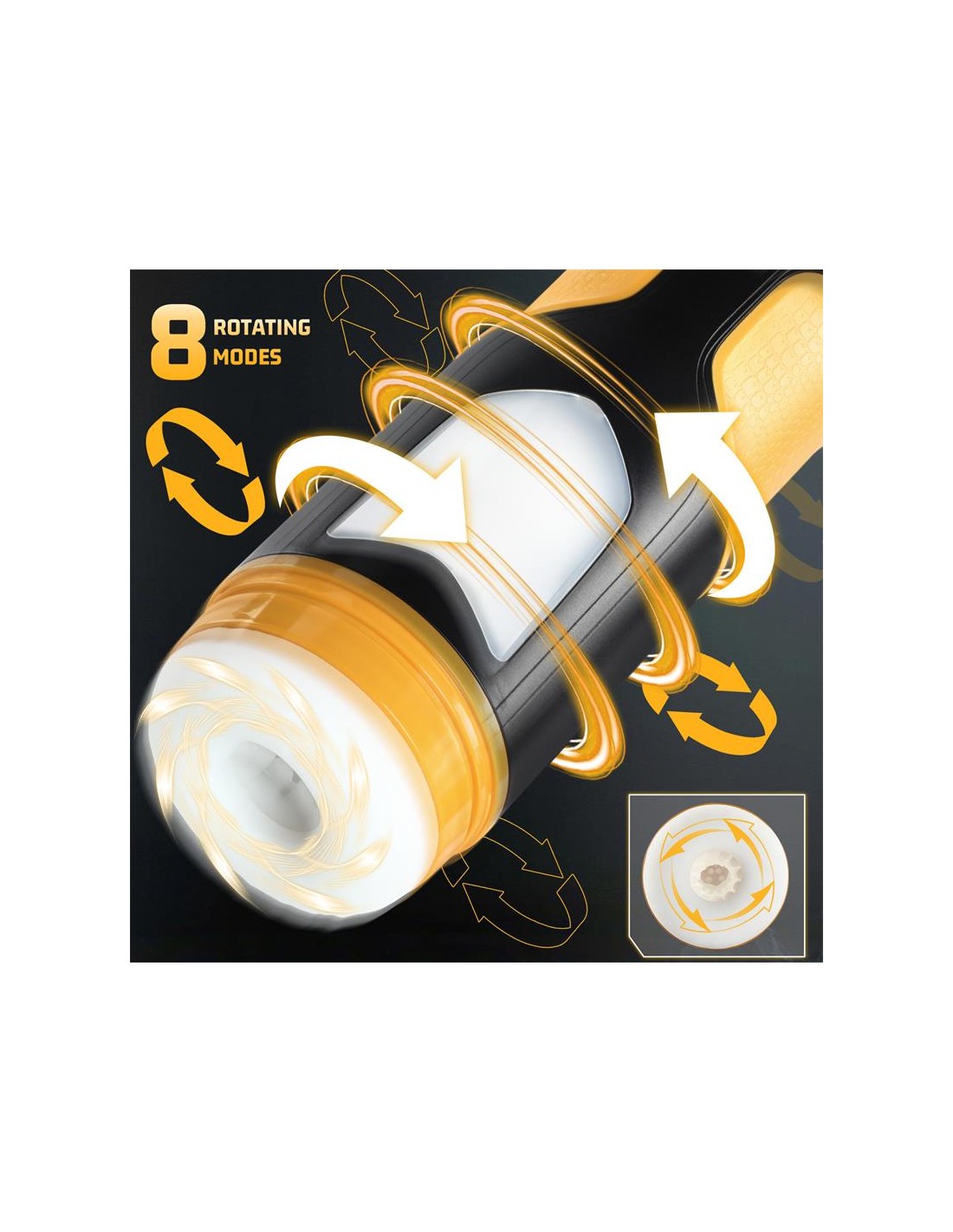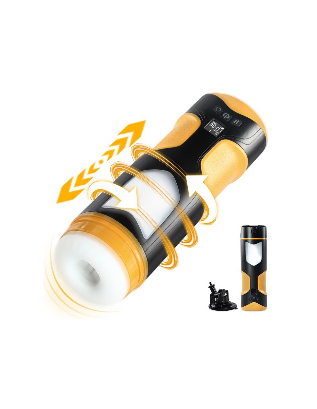 Masturbador masculino con un diseño moderno y futurista, con 8 velocidades de movimiento thrusting y 8 frecuencias de rotación. Cuenta con un canal totalmente texturizado y una manga suave y flexible. Podrás colocarlo casi en cualquier superficie gracias a su ventosa desmontable y posicionable.