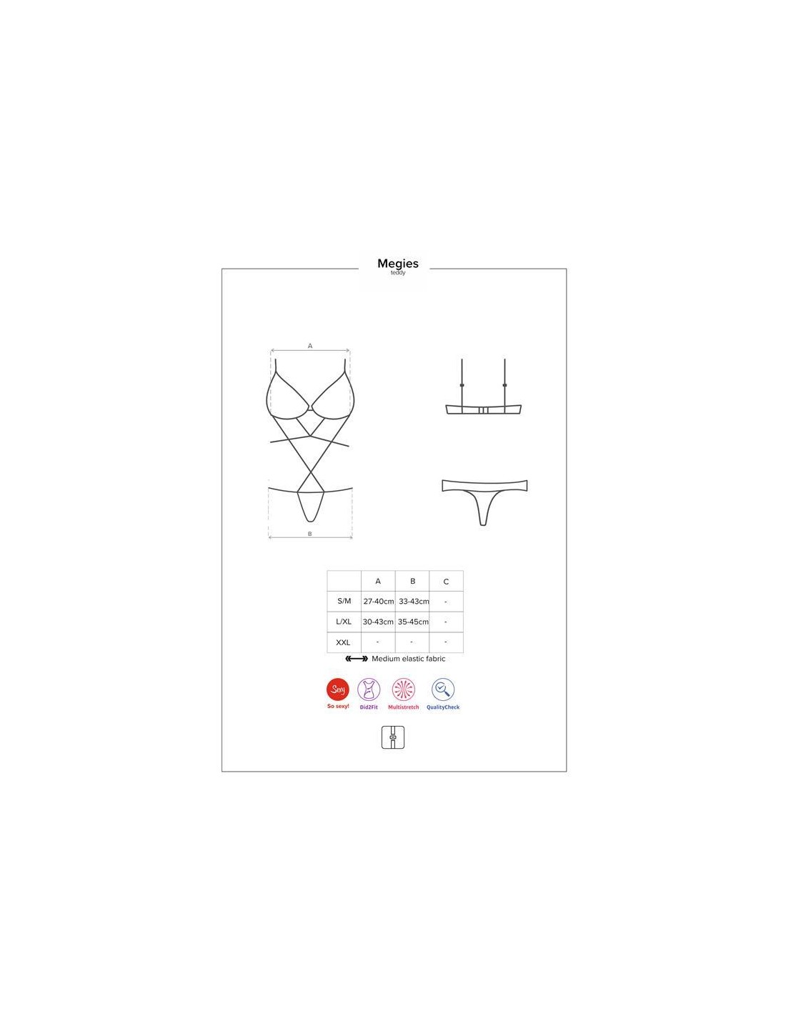 Dentro de la gama Megies encontrarás este body con el que triunfarás seguro. Cuenta con tiras en encaje negro que abrazan tu torso y conectan la parte del sujetador con la del tanga. Estas dos partes cuentan con un patrón de flores con una combinación súper decadente en encaje rojo y negro.