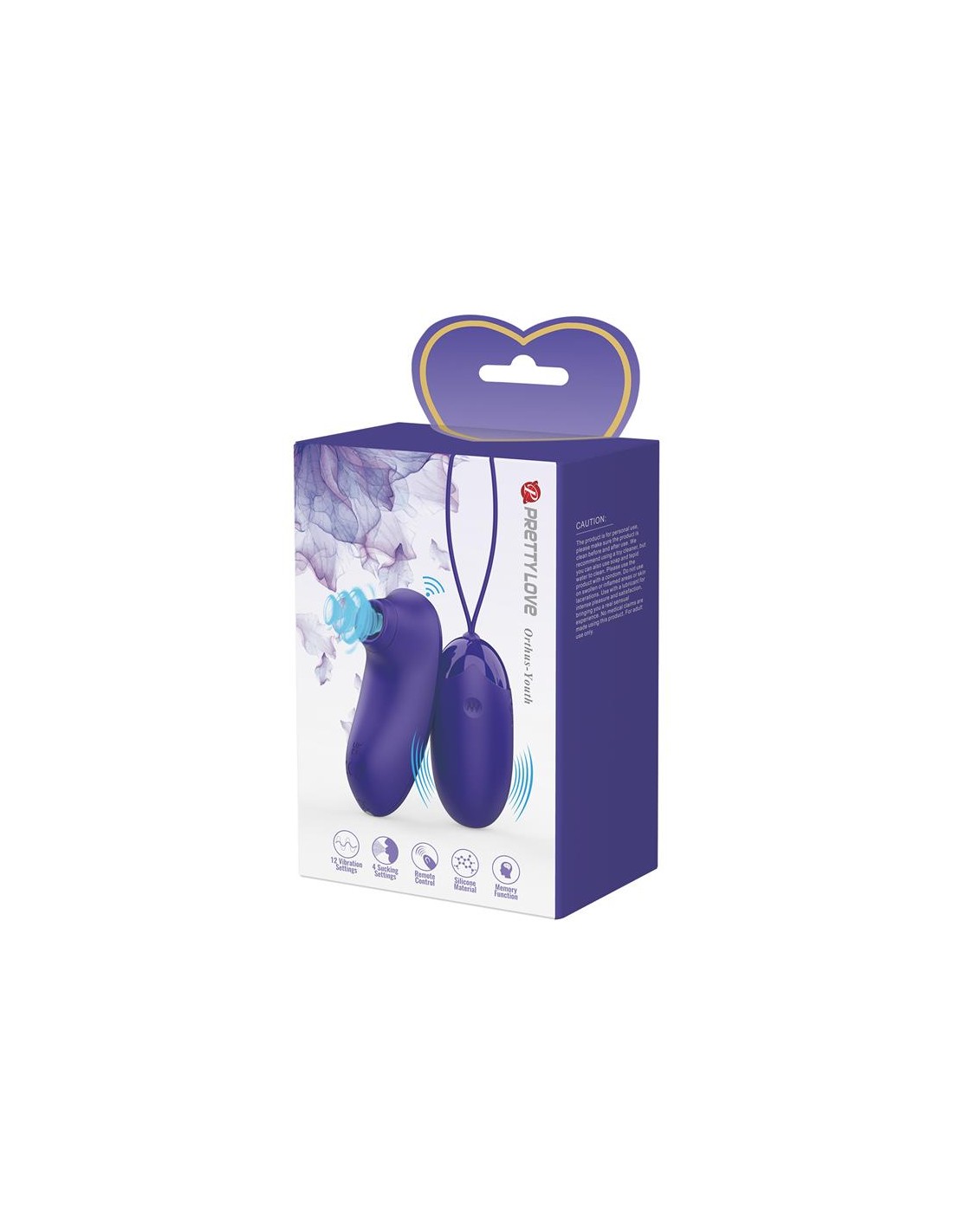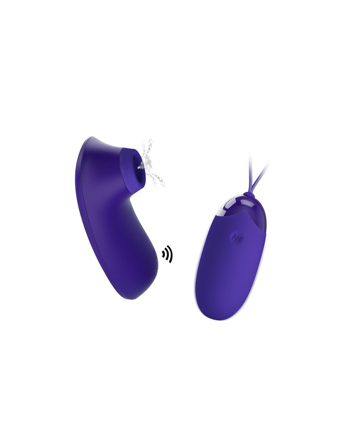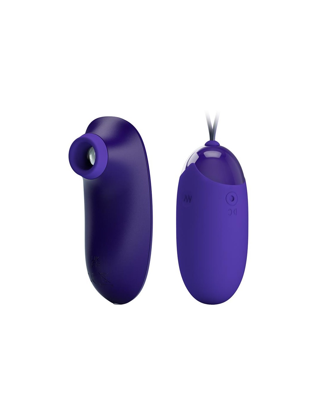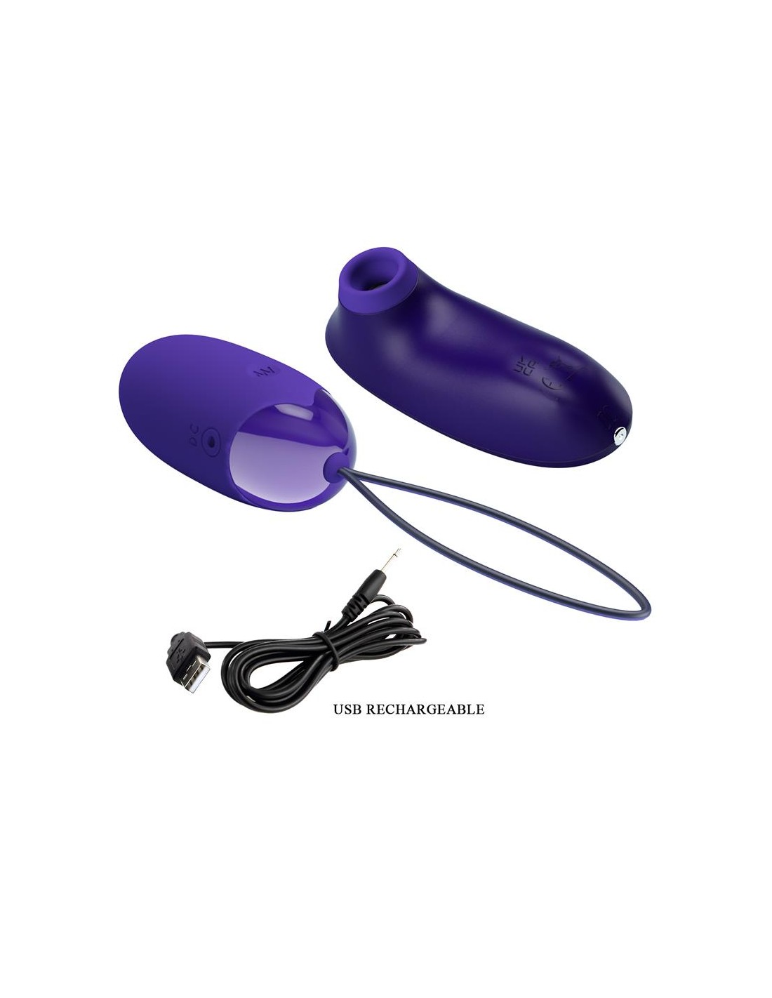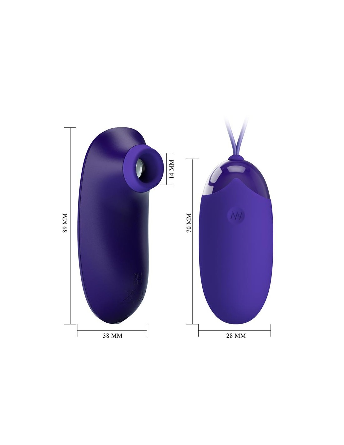 Este es el set que siempre has querido, un huevo vibrador recargable con 12 funciones de vibración y un pequeño succionador de clítoris con 4 funciones.
