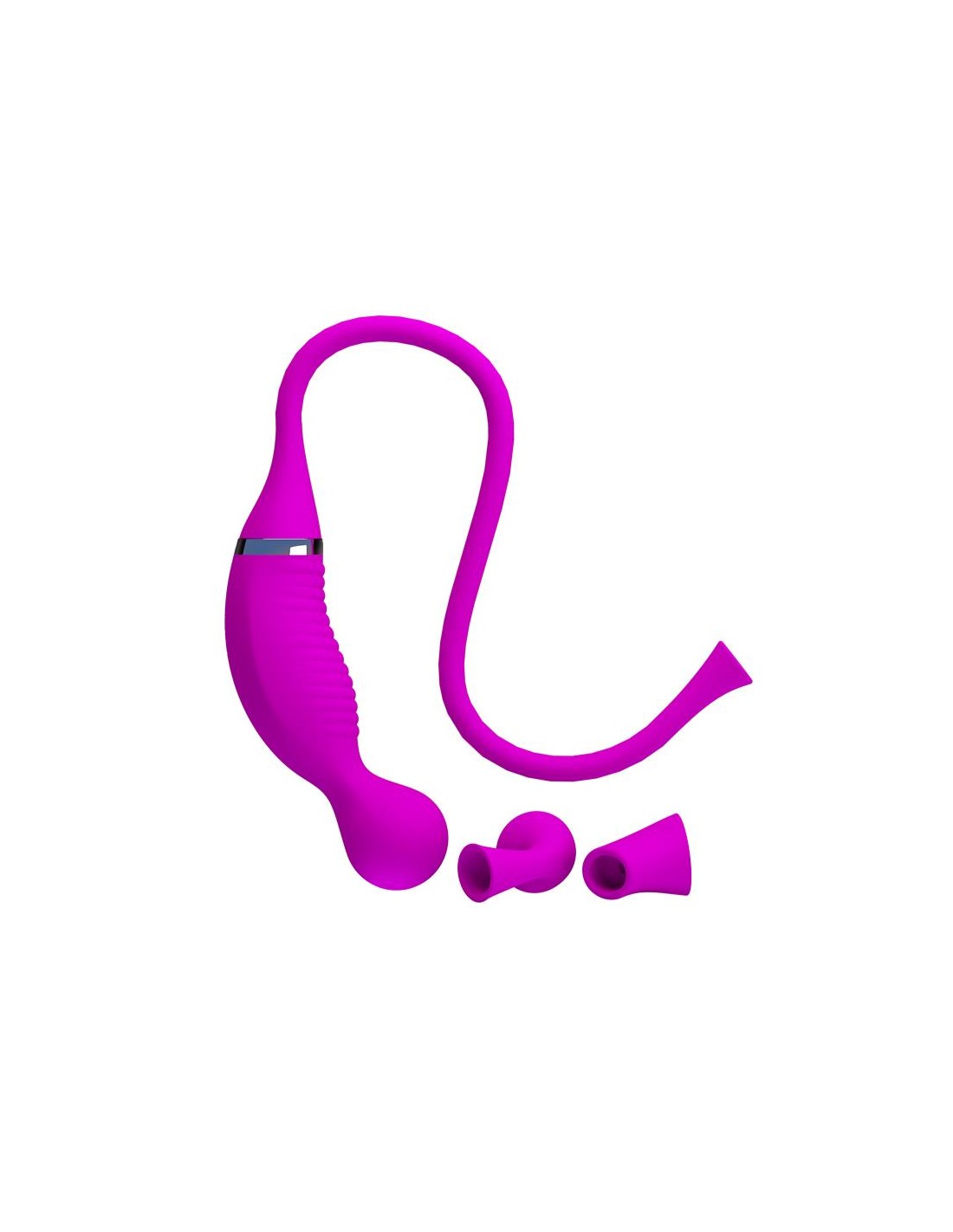 Prueba este estimulador con un largo apéndice donde podrás encontrar un succionador para que no solo lo disfrutes en el clítoris, sino que puedas disfrutarlo en todas partes. Cuenta con 12 funciones de vibración y de succión y es recargable por USB.