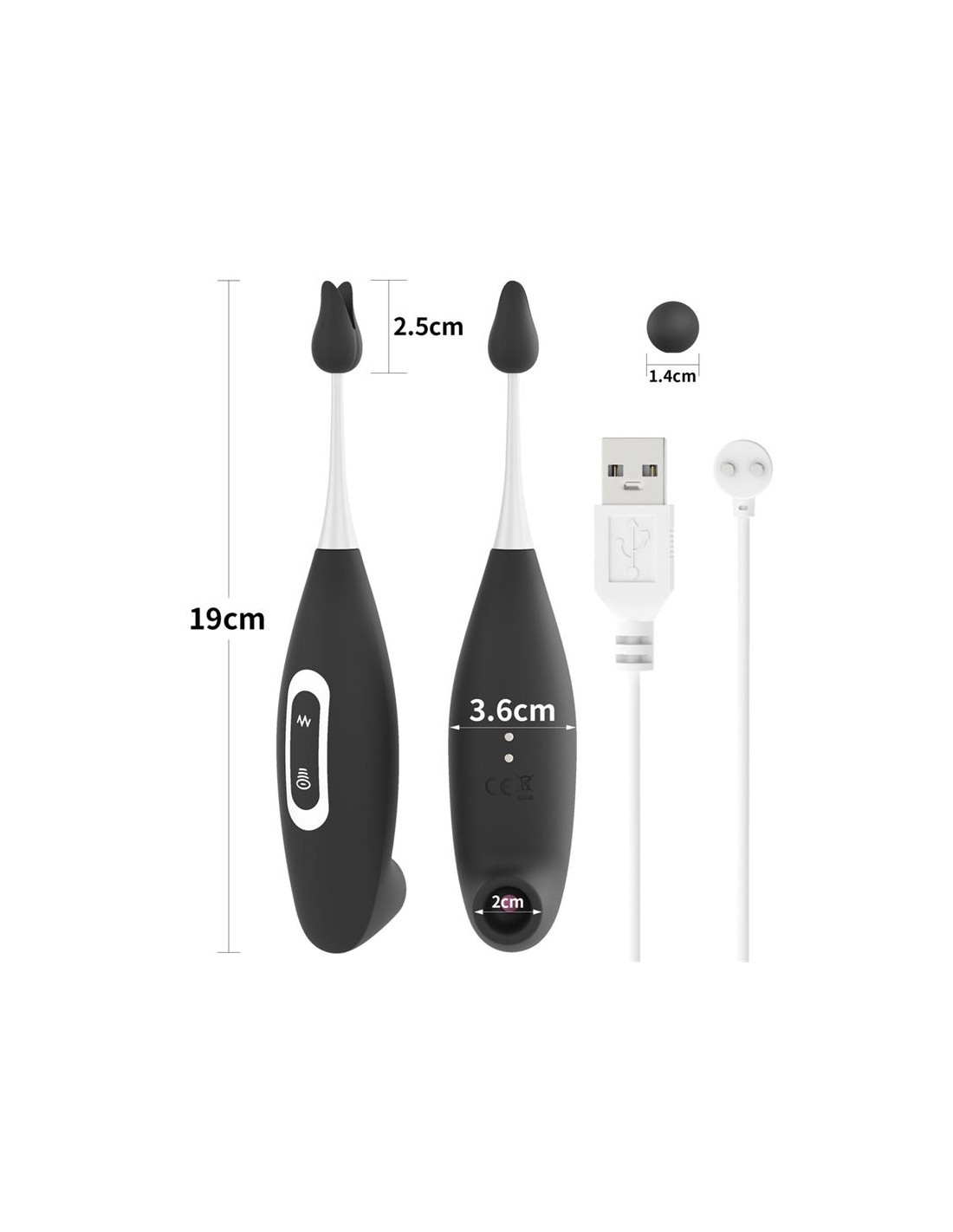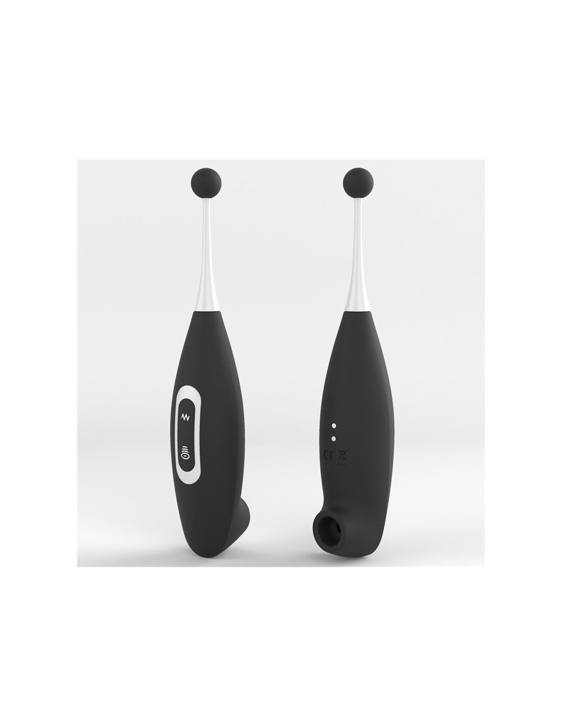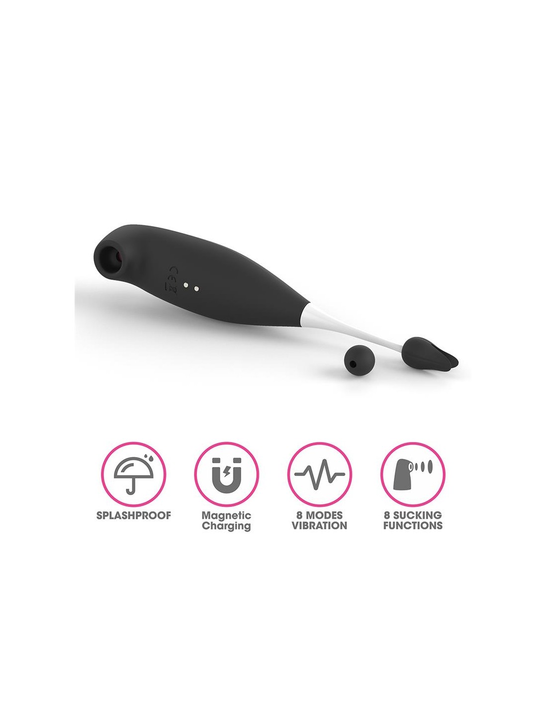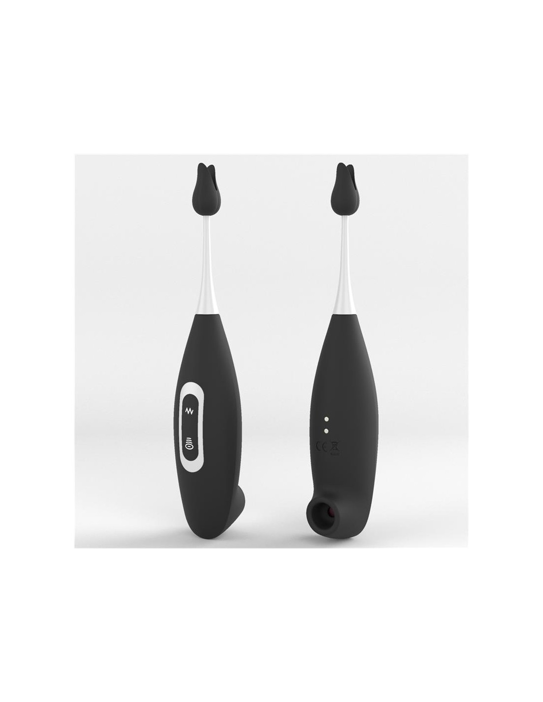 Incluye dos partes: una para el clítoris y otra para los pezones. Aunque ambas succionan, la parte en forma de aguja emite un sutil zumbido al apoyarse contra el clítoris o el pezón. Incluye dos accesorios de silicona para máxima comodidad. Puedes elegir entre 8 tipos de vibración y modos de succión. Con este dispositivo, tienes el control total de tu experiencia sexual.