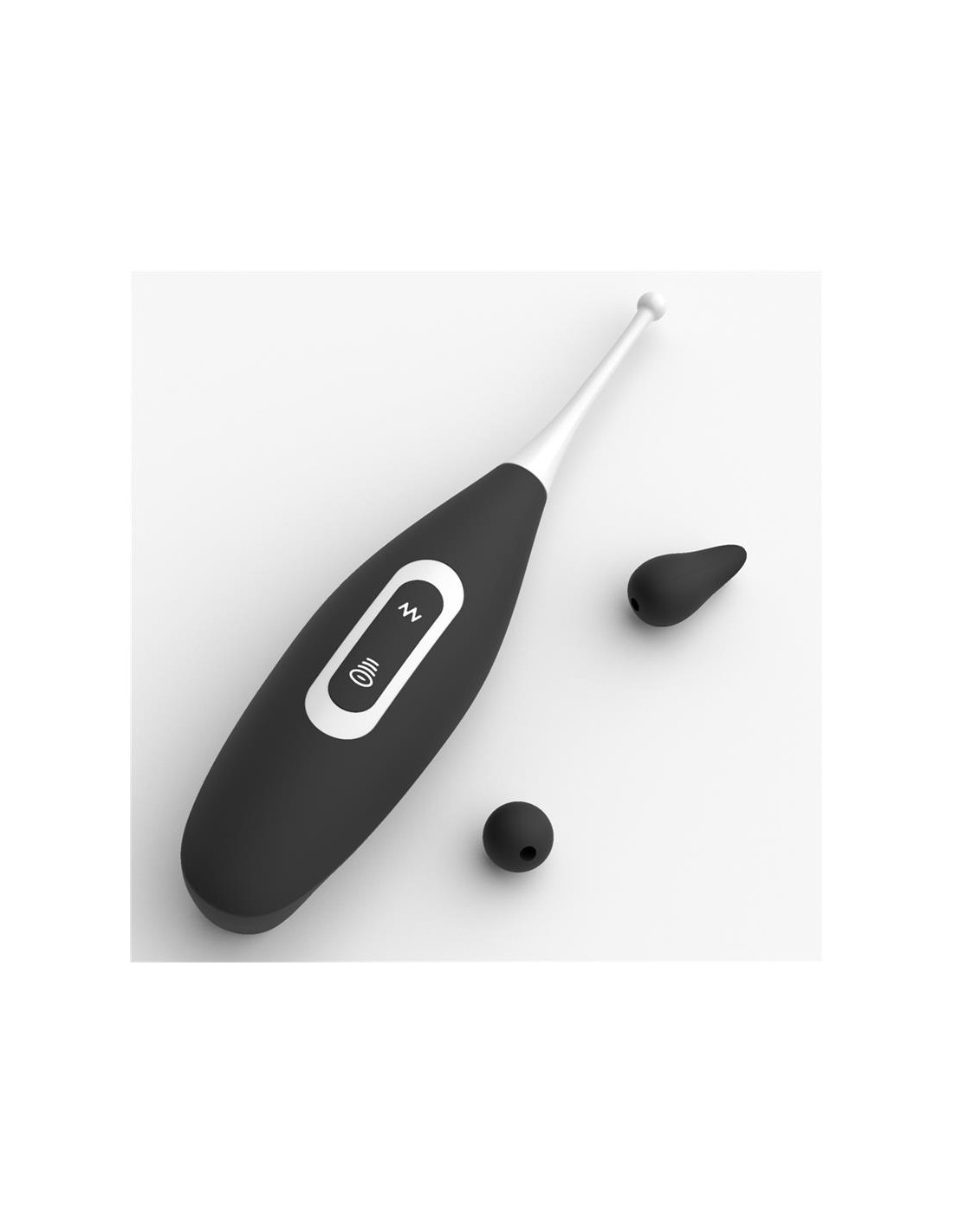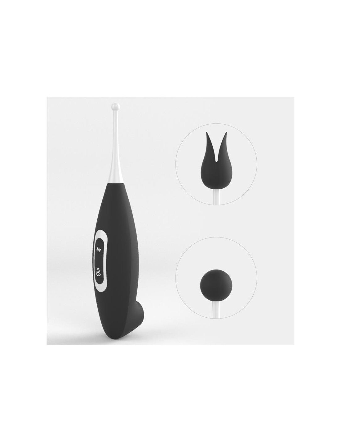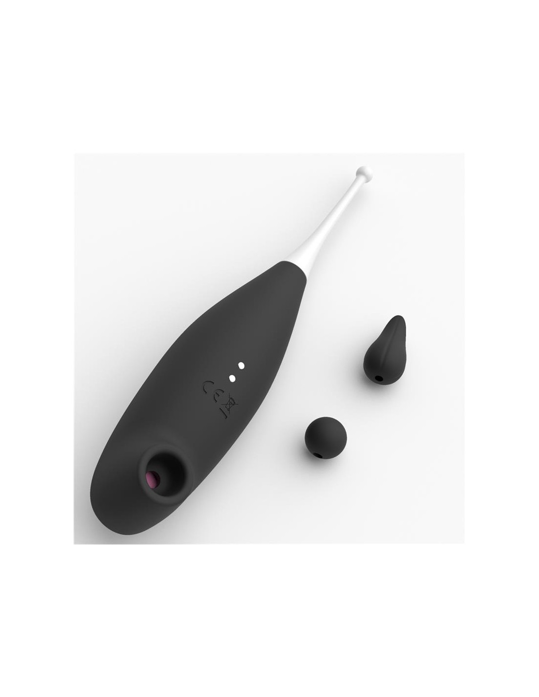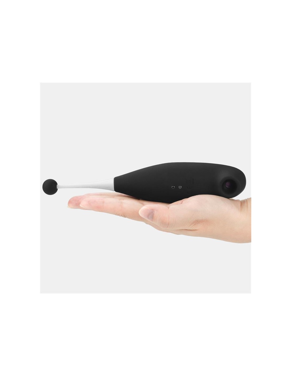 Incluye dos partes: una para el clítoris y otra para los pezones. Aunque ambas succionan, la parte en forma de aguja emite un sutil zumbido al apoyarse contra el clítoris o el pezón. Incluye dos accesorios de silicona para máxima comodidad. Puedes elegir entre 8 tipos de vibración y modos de succión. Con este dispositivo, tienes el control total de tu experiencia sexual.