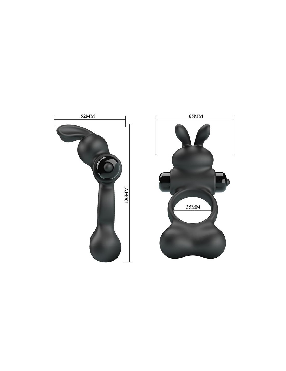 Este anillo para el pene es de silicona y resistente al agua y cuenta con 10 funciones de vibración. Este anillo es perfecto para mantener la erección por más tiempo. Cuenta con un par de orejitas de conejo flexibles para proporcionar estimulación clitoriana para ella. Al mismo tiempo las dos bolitas que verás en la parte de abajo tienen en su interior unas bolas de metal que proporcionan una erección más firme y mayor placer.