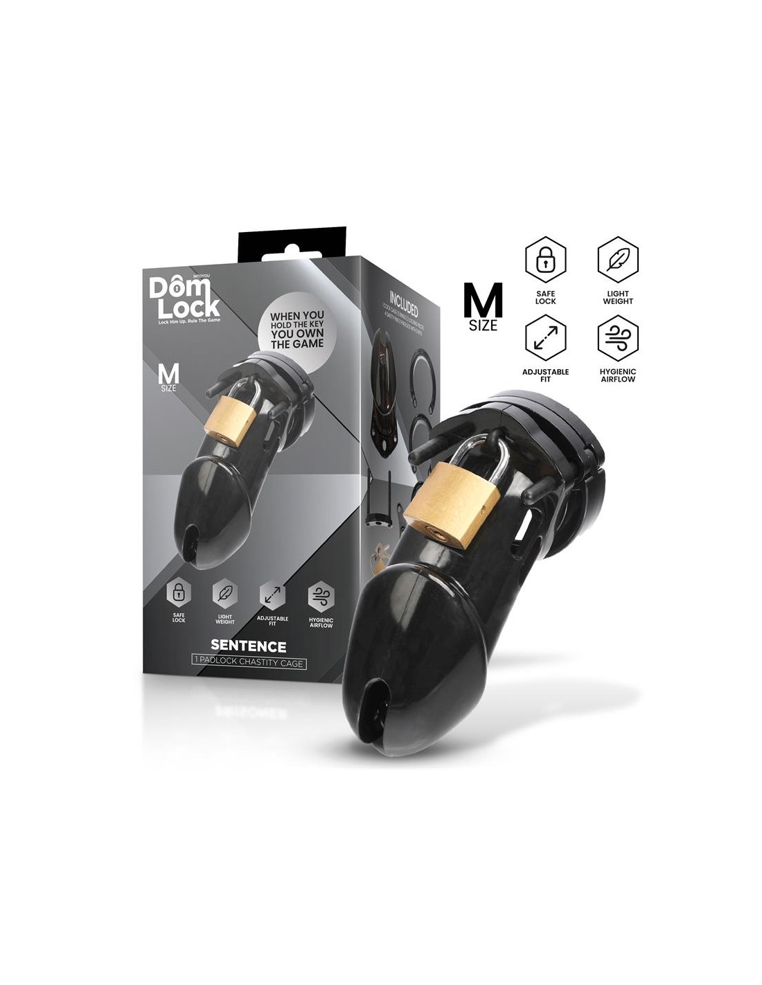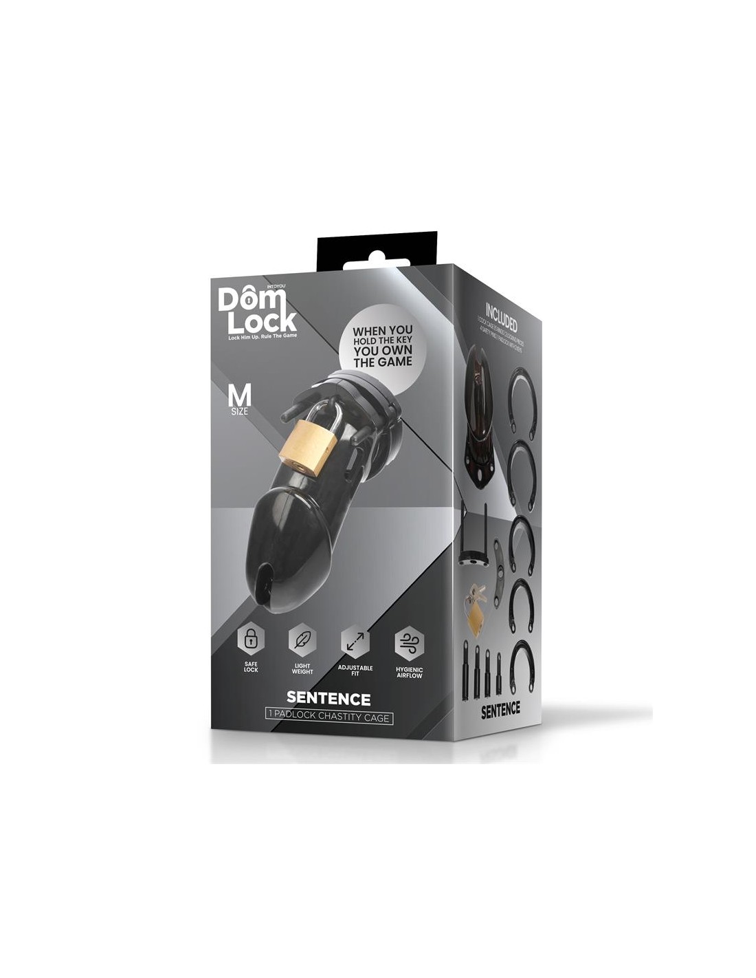 Sentence es una jaula en color negro que incluye 5 anillos de diferentes tamaños para que puedas elegir el momento de usarlos y puedas disfrutar de la sumisión de la manera más segura posible. Al mismo tiempo incluye 4 accesorios de seguridad y 2 piezas de bloqueo.