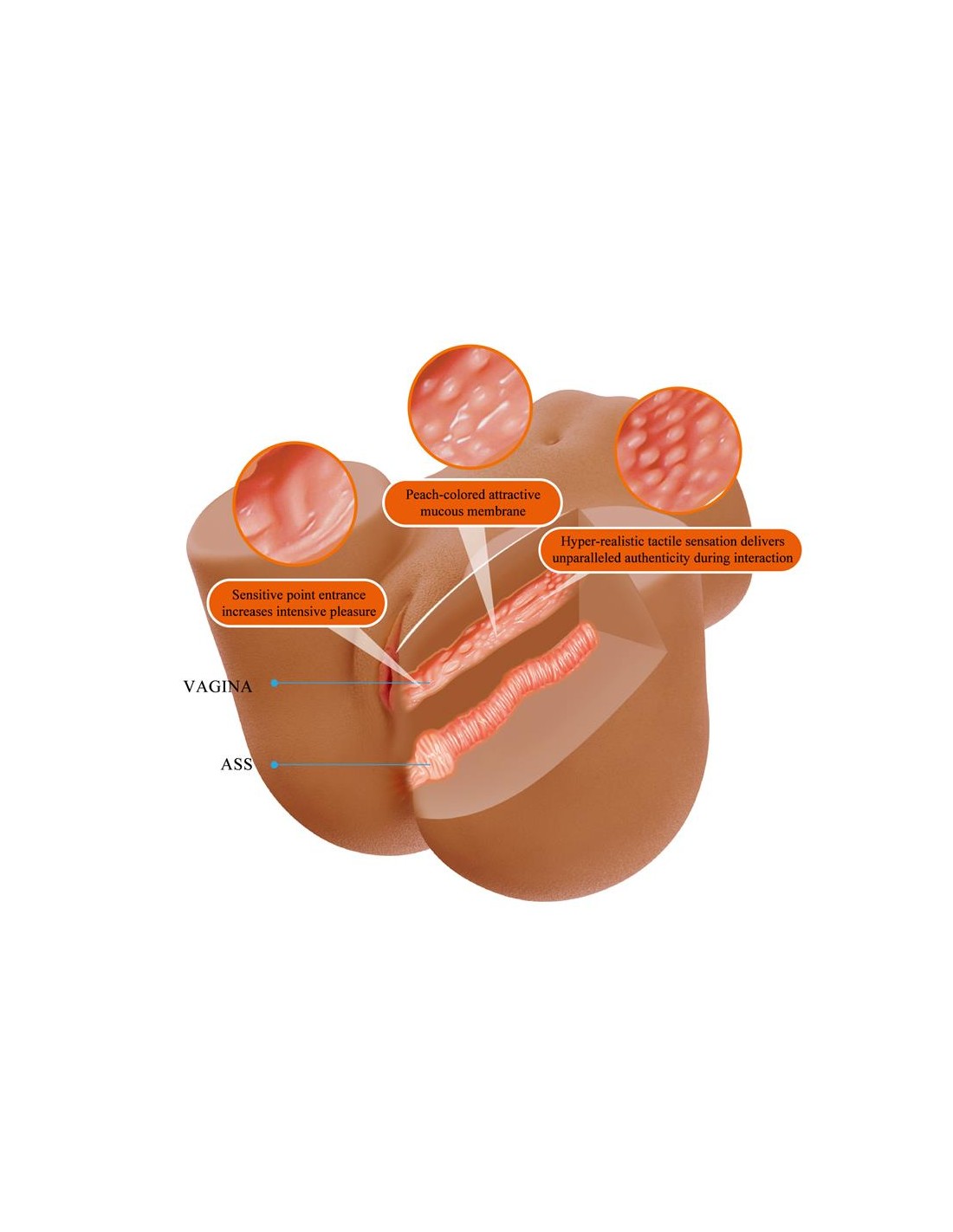 Este masturbador 3D está fabricado con más de 7 kilos de TPE denso y suave, con un diseño con una pelvis pequeña para una apariencia y sensación realistas. Cada detalle esculpido realza el placer visual de este hermoso masturbador. Perfectamente diseñado para que disfrutes en todas tus posiciones favoritas, es ideal para posturas como el perrito, el misionero, la vaquera y mucho más. Cuenta con 10 funciones de vibración y 5 de efecto succión.