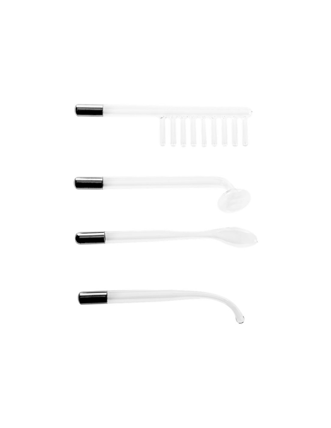 Este kit incluye 4 electrodos de vidrio con formas únicas, cada uno diseñado para brindar una gama de sensaciones emocionantes en la piel: