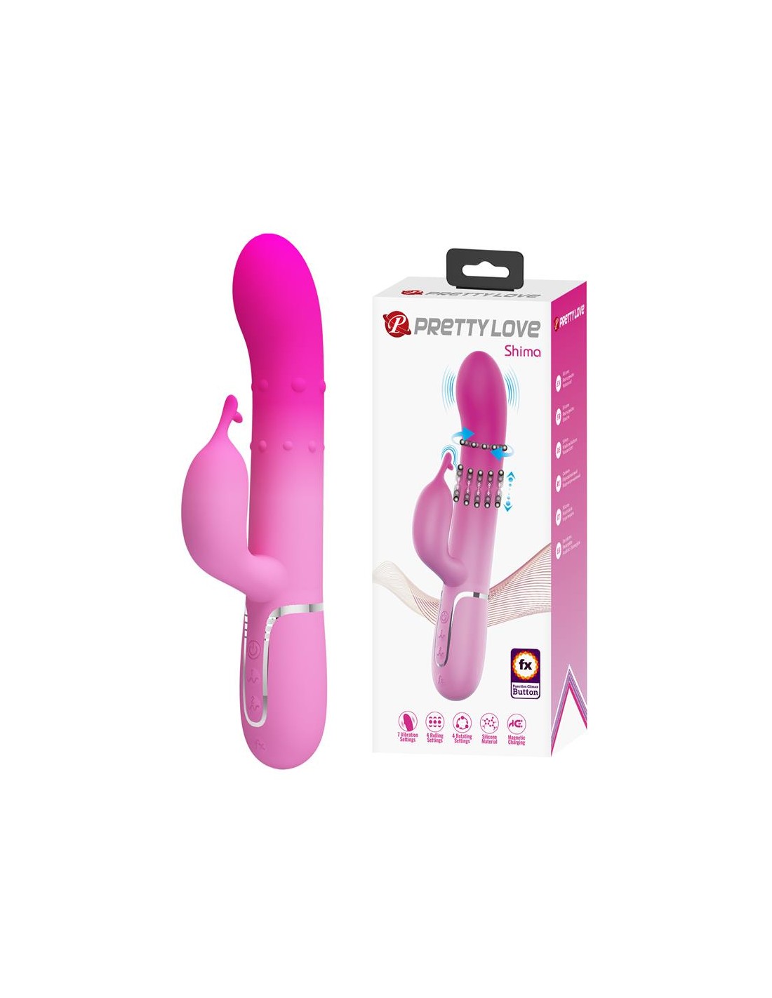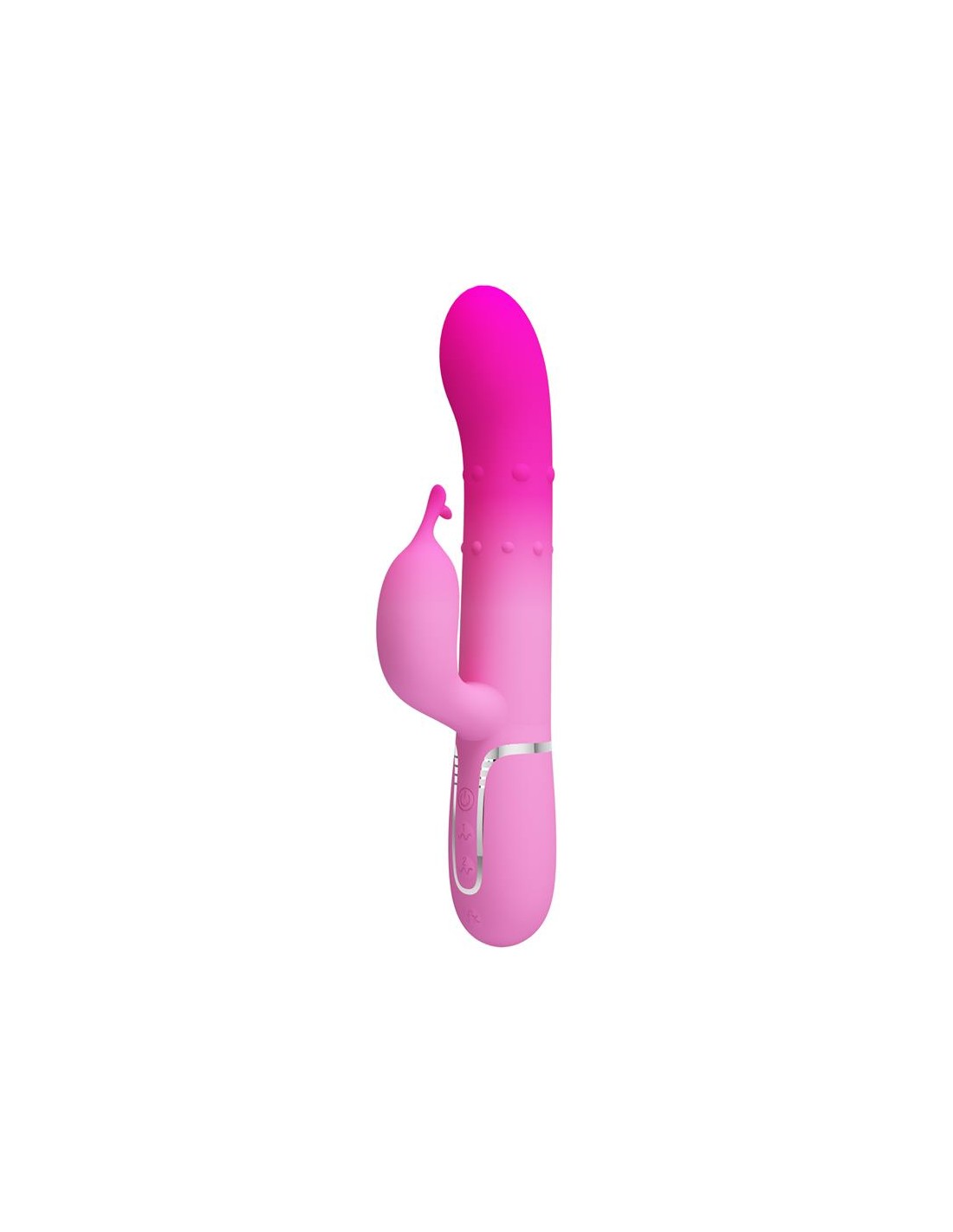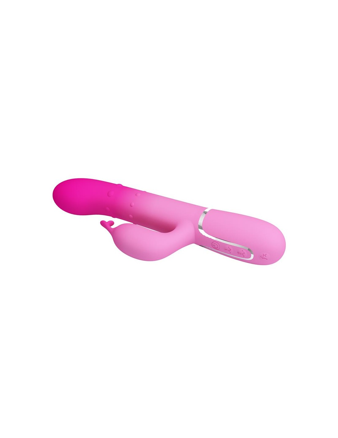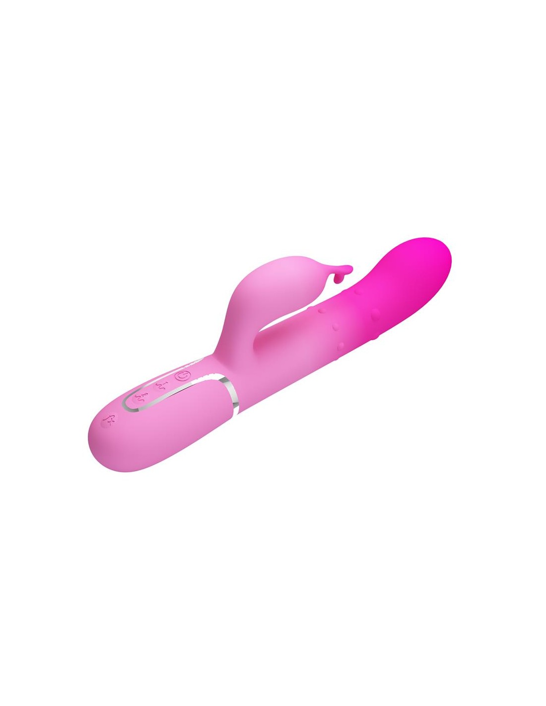 Diseñado para el máximo placer, el vibrador Pretty Love Rabbit cuenta con dos potentes motores, uno en la punta y otro en el brazo externo, te prometemos que encontrarás tu vibración perfecta, ya que sus 7 intensidades y ritmos de vibración te llevarán a un clímax intenso y envolvente. Cuenta con bolitas rígidas que se desplazan hacia arriba y hacia abajo en un estimulante masaje íntimo en la parte superior del eje, y disfruta simultáneamente de los 4 ajustes de velocidad de rotación de las bolitas en la parte inferior. Además, el estimulador de clítoris roza suavemente tu punto G. Para un placer aún mayor.