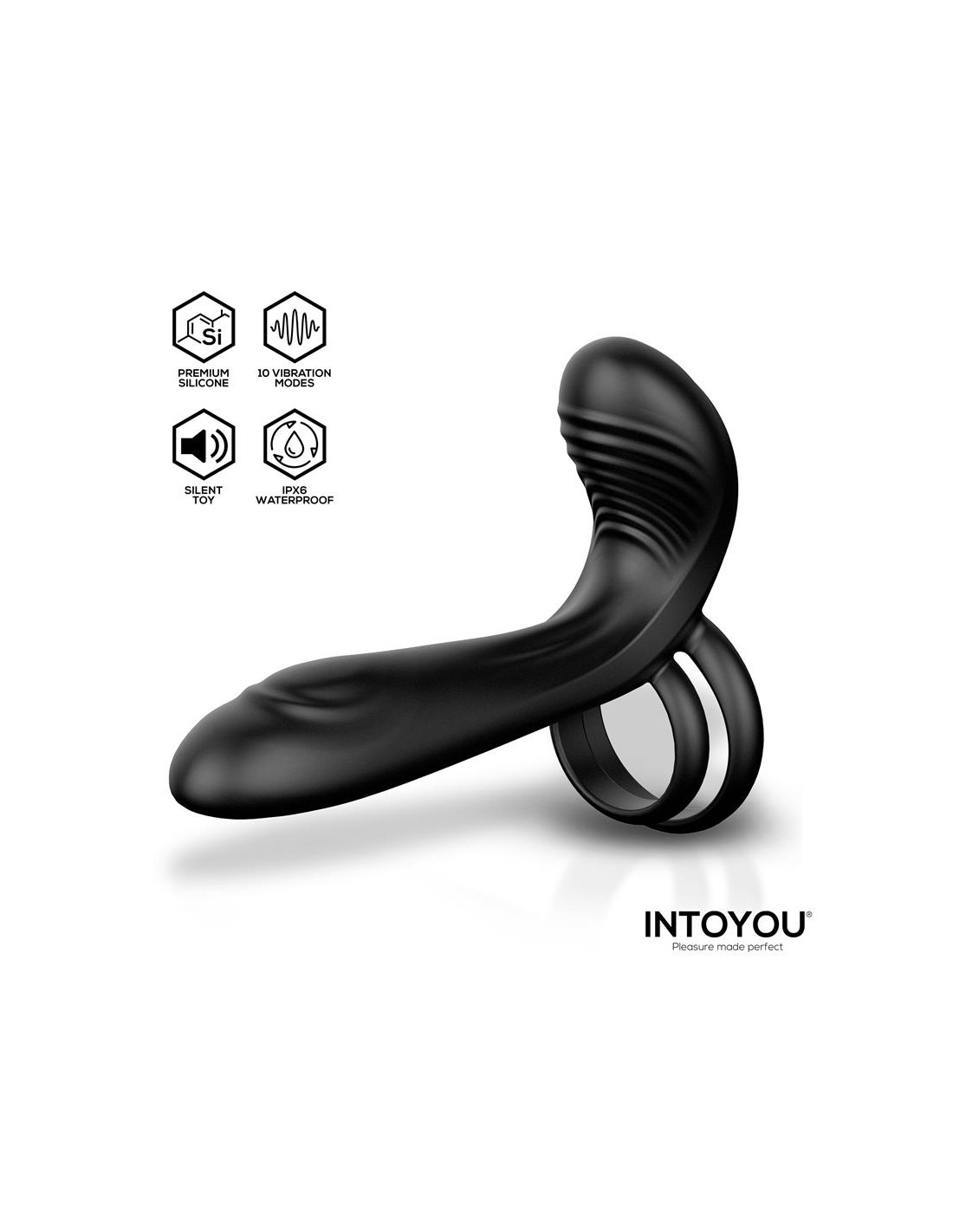 Su diseño de doble estimulación cuenta con una cabeza curvada y texturizada que se encarga de la estimulación interna, mientras que el anillo flexible en la base ofrece una estimulación externa, continua y placentera.