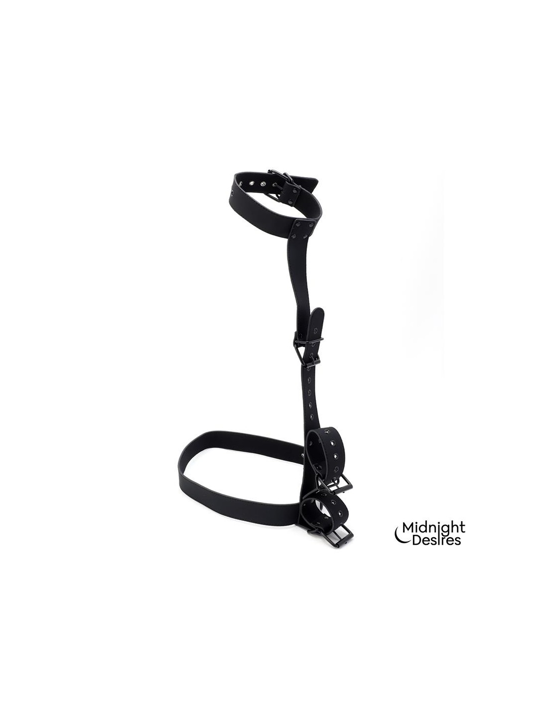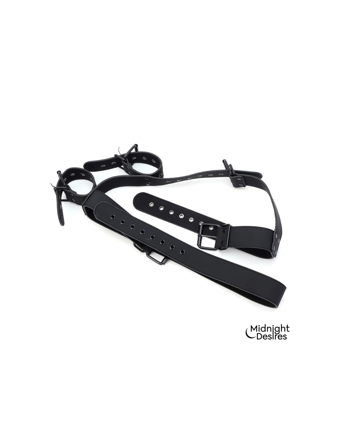 Estas restricciones están diseñadas para ser usadas por la espalda, aunque saber que el límite lo ponéis vosotros. Tanto la zona de las esposas para muñecas, el collar y la parte que las une son totalmente ajustables con hebillas. Esto es ideal para que lo puedas ajustar a la distancia que necesites en cada momento.