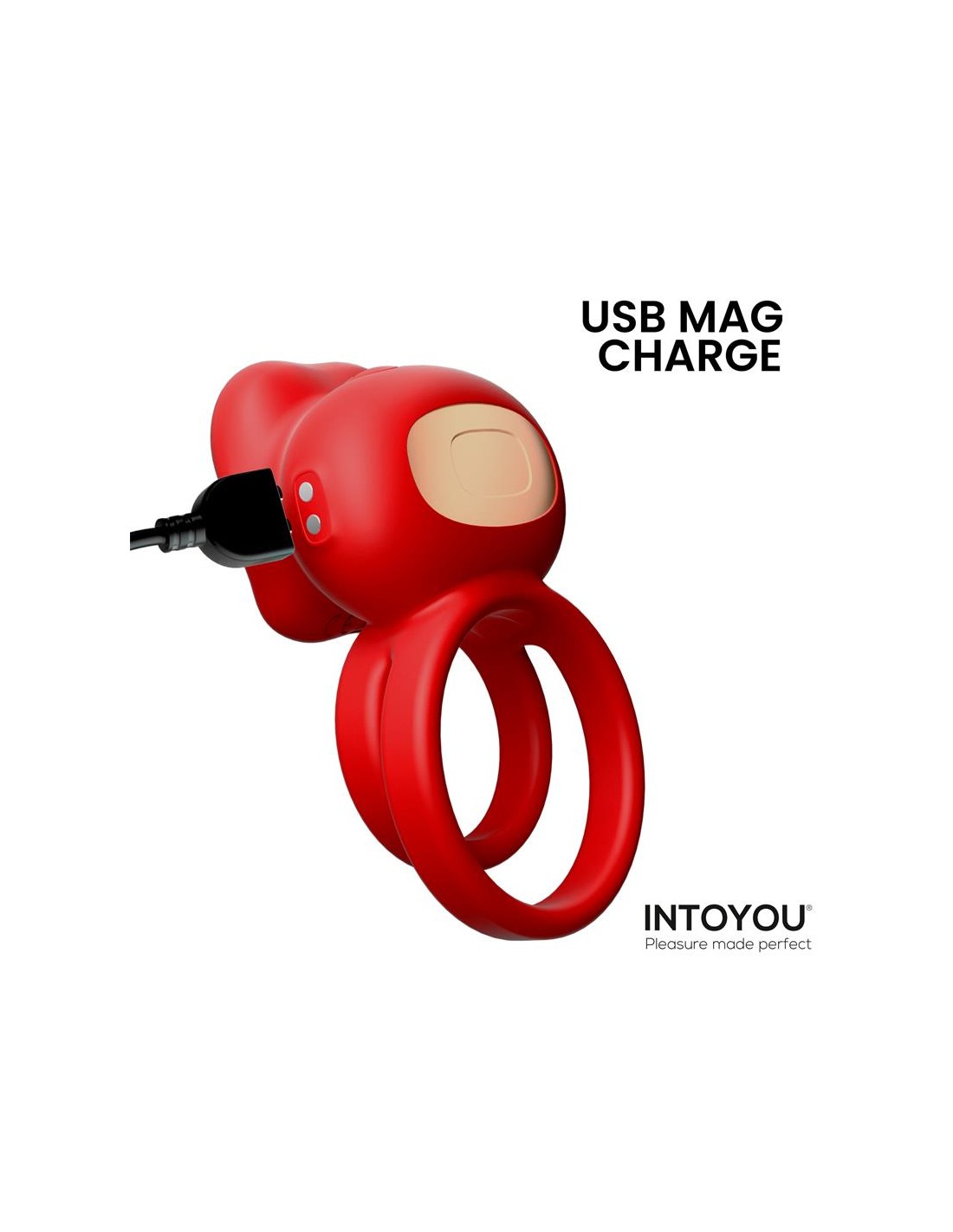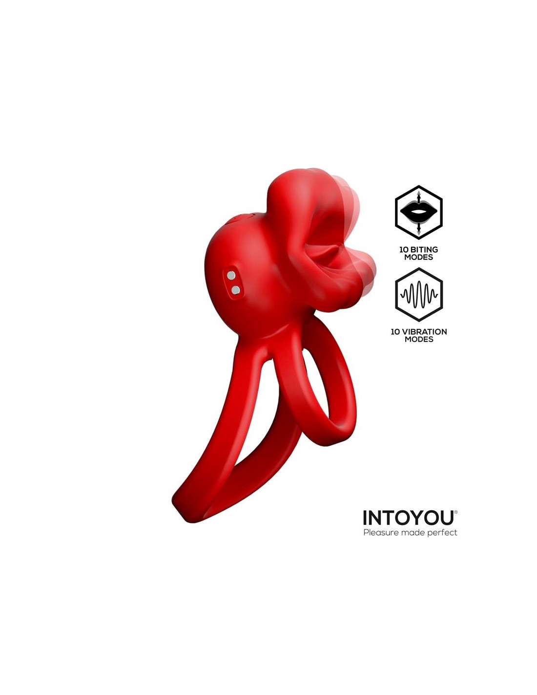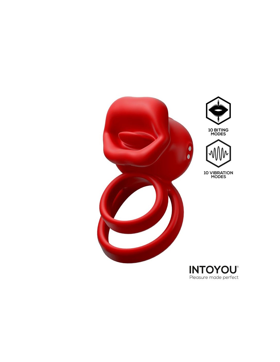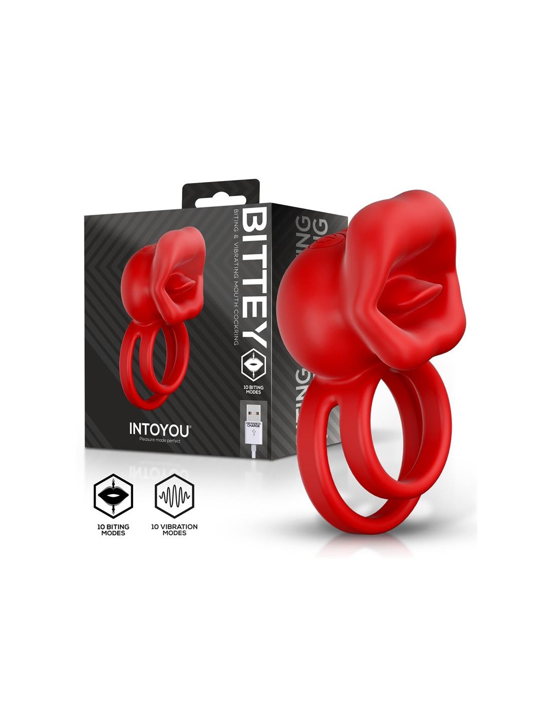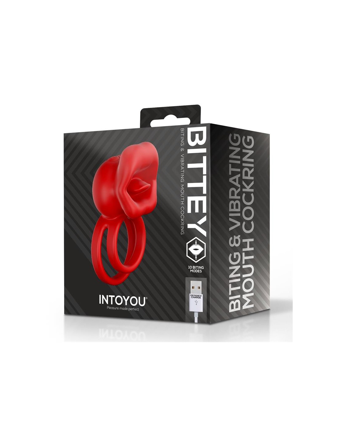 Bittey es un anillo vibrador con estimulación para el clítoris. Cuenta con un diseño muy especial, con un anillo doble para el pene y con un estimulador de clítoris de lo más novedoso. Es totalmente ergonómico y está fabricado en un material suave de un rojo intenso de lo más erótico.