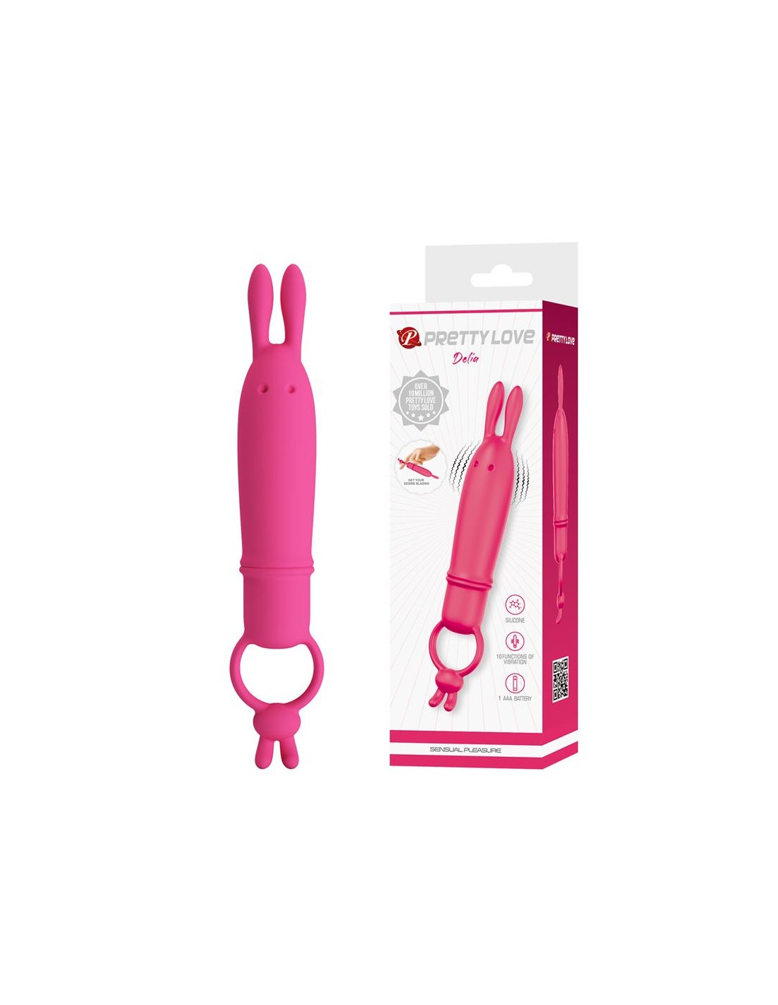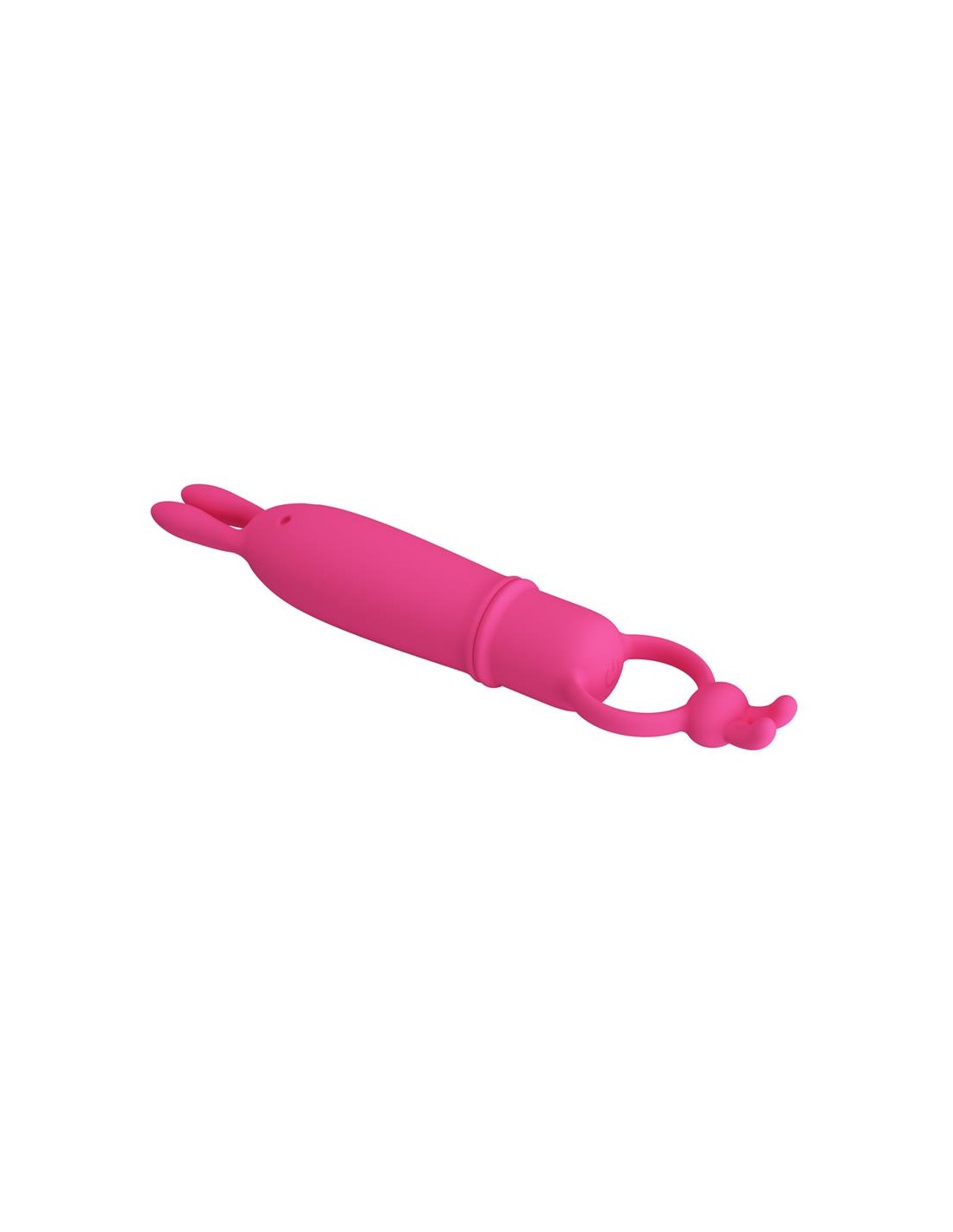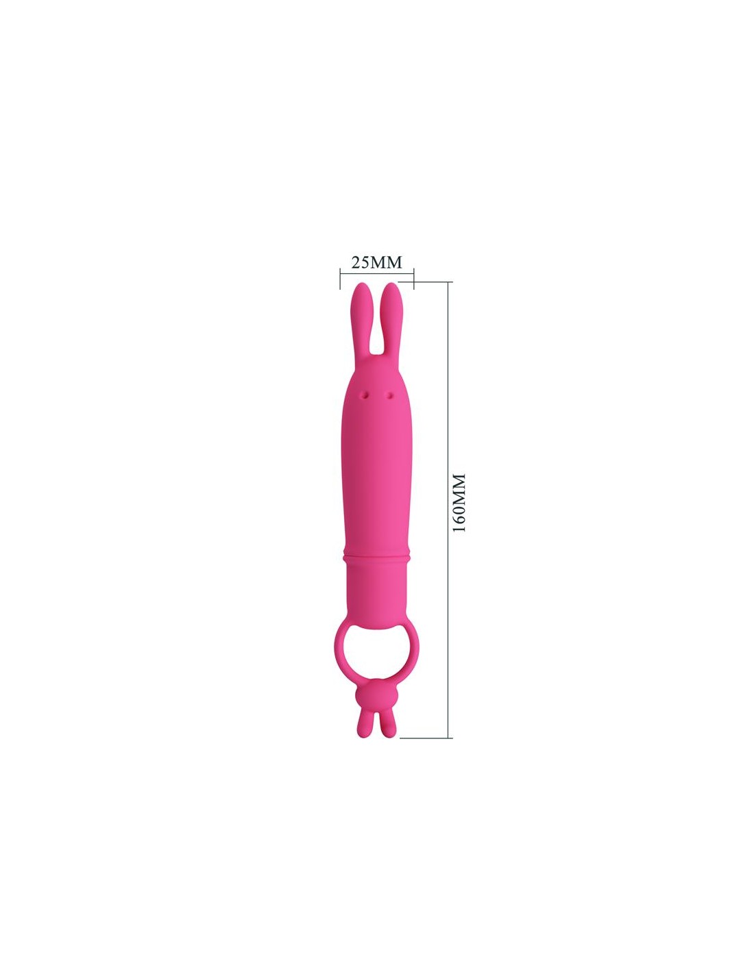 ¡Descubre 10 emocionantes modos de vibración con este vibrador de silicona de ingenioso diseño! Con divertidas orejitas de conejo para una estimulación localizada y un soporte de anillo seguro para un control sin esfuerzo, te ofrece placer versátil justo donde lo desees. Fabricado en silicona segura para el cuerpo para una comodidad aterciopelada, es totalmente resistente al agua para disfrutar en la bañera o la ducha. Funciona con solo una pila AAA, disfruta de un tiempo de juego prolongado en cualquier lugar.