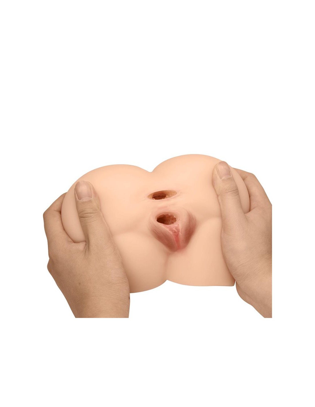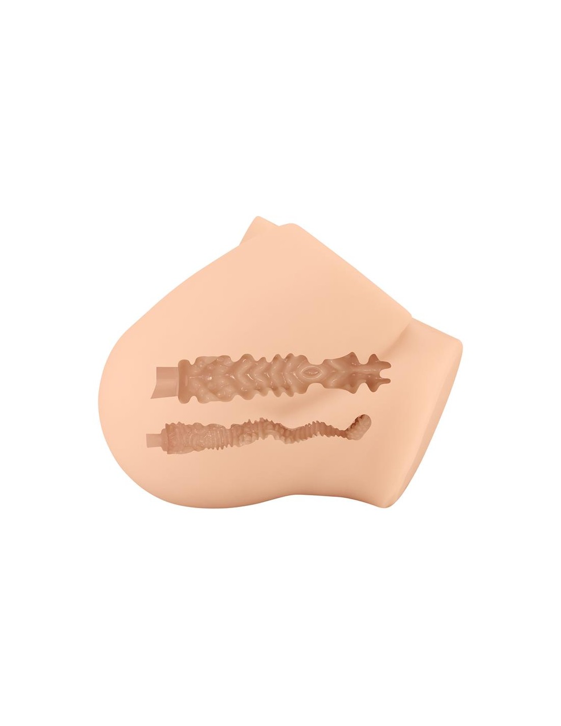 Agarra, aprieta, acaricia y azota este masturbador realista de ano y vagina. Cuenta con dos orificios y ofrece una experiencia perfecta y llena de placer. Sus túneles son estriados, y cuentan con finas estrías y estimulantes protuberancias que rodean tu pene.