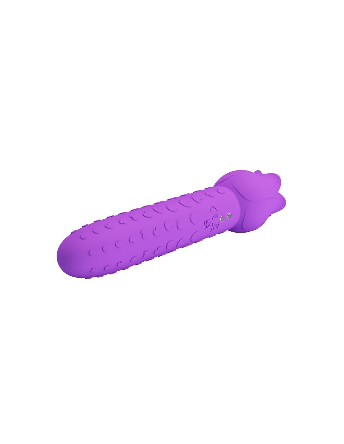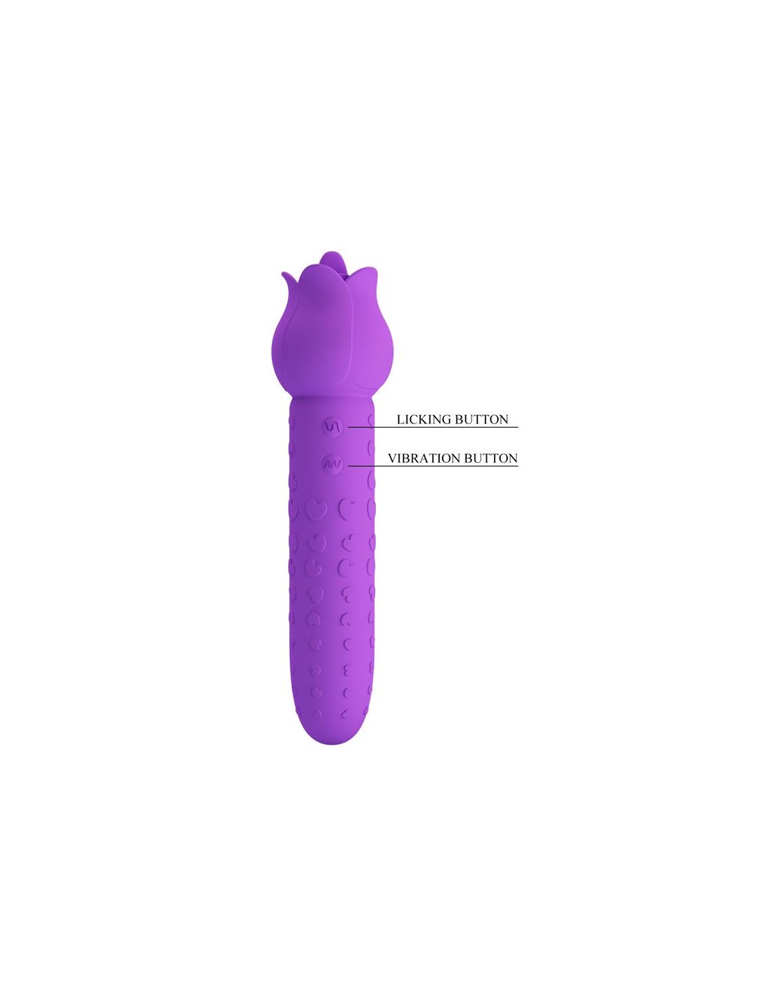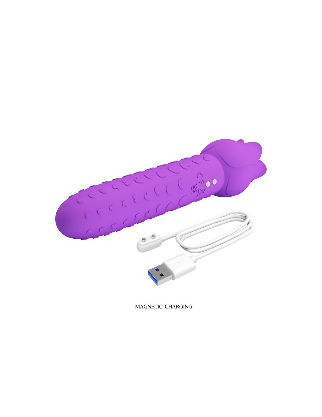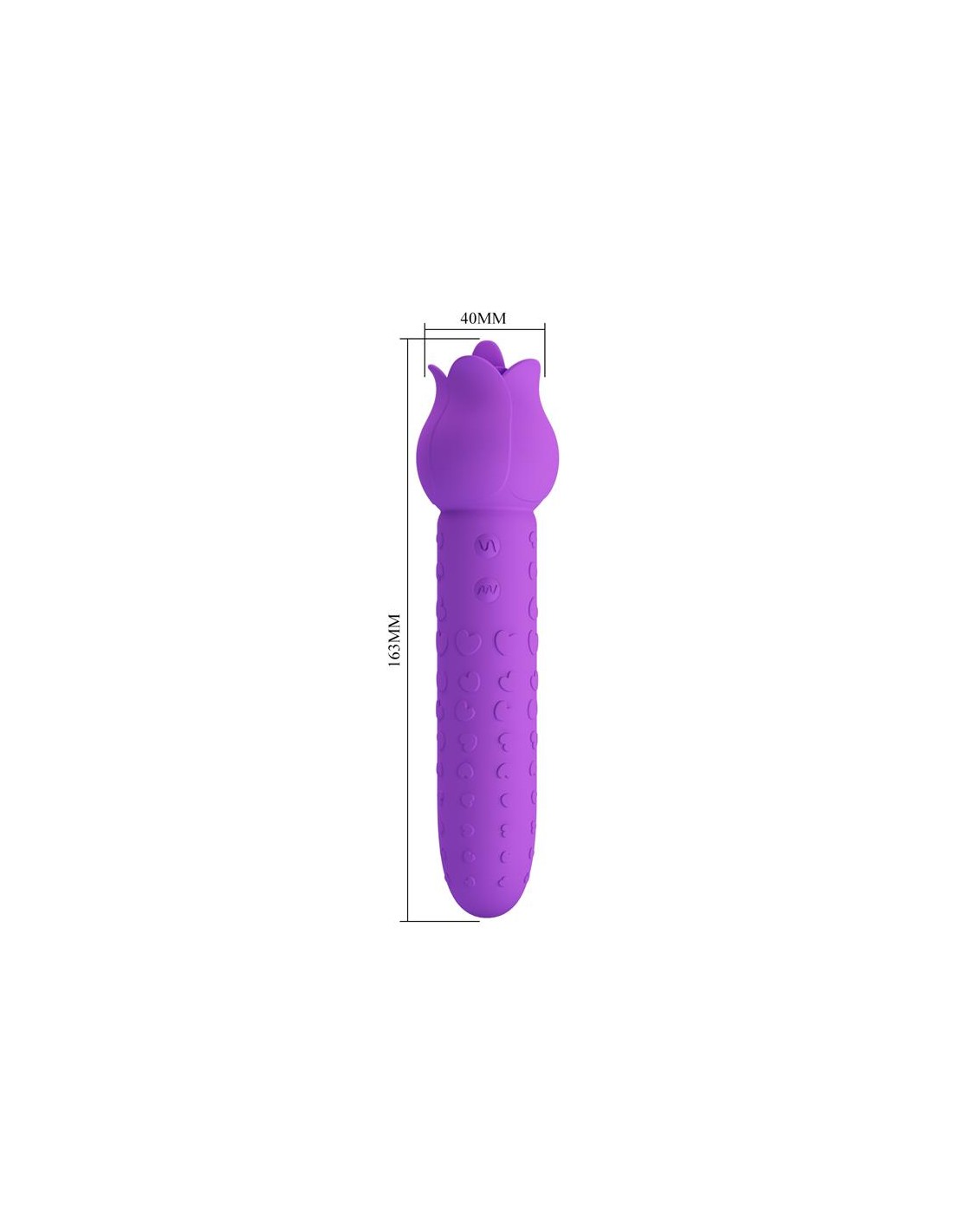 Hecho de silicona suave este hermoso masajeador cuenta con 7 funciones de vibración y 7 de lengua. Está diseñado para ofrecerte la doble estimulación definitiva. La pequeña lengua estimulará a la perfección tu preciado clítoris, mientras que el cuerpo te proporcionará potentes vibraciones. Con un cable de carga magnético portátil, puedes usarlo cómodamente en cualquier lugar.
