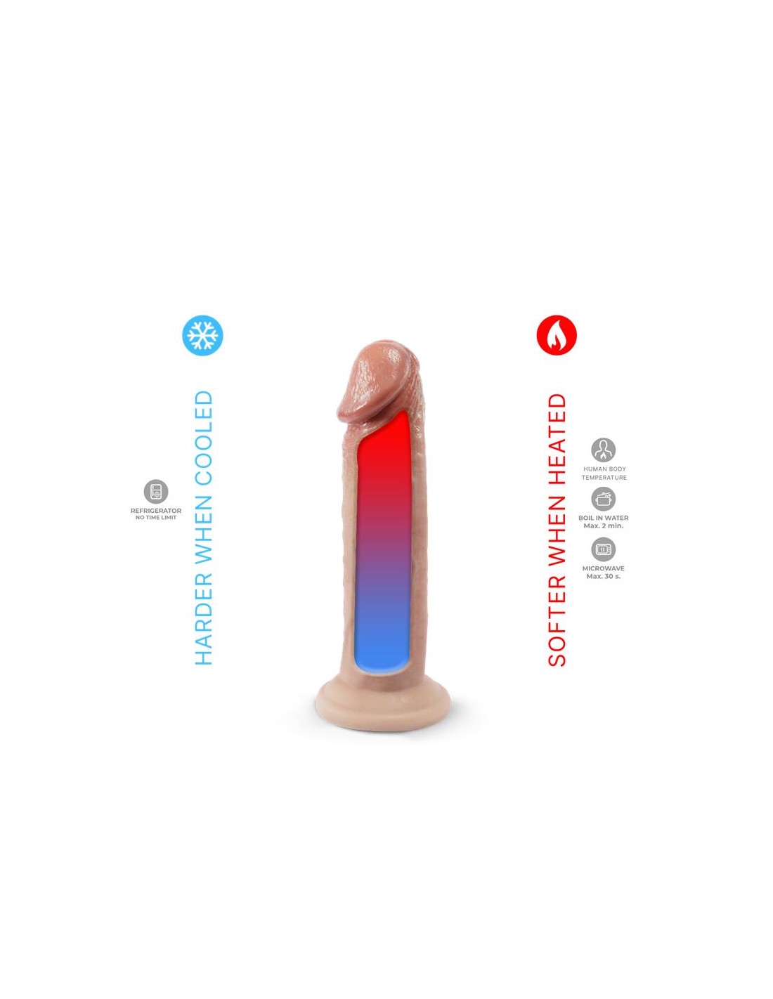 Gracias a su innovadora composición, este dildo se ablanda con el calor y se endurece con el frío, adaptándose perfectamente a tu temperatura corporal para sensaciones más naturales e inmersivas. Su combinación de exterior suave y núcleo firme garantiza un equilibrio ideal entre confort y estimulación.