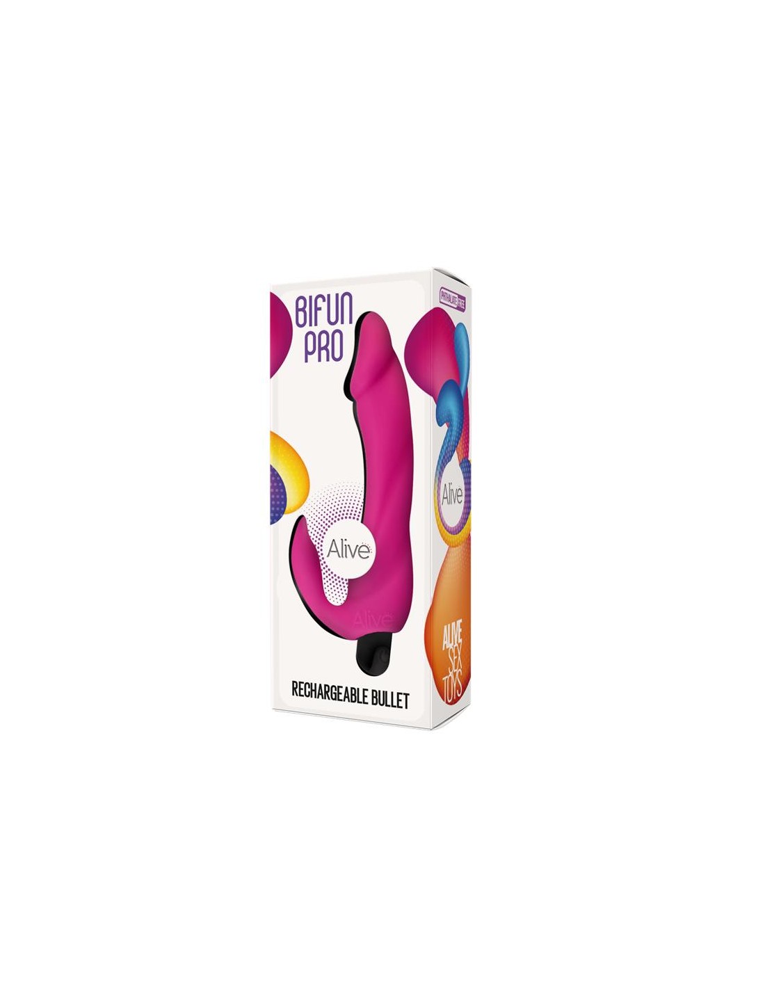 Bifun Pro es un vibrador con una forma curva ideal para la estimulación del punto G y del clítoris, para jugar en solitario o en pareja y disfrutar de un placer íntimo versátil.