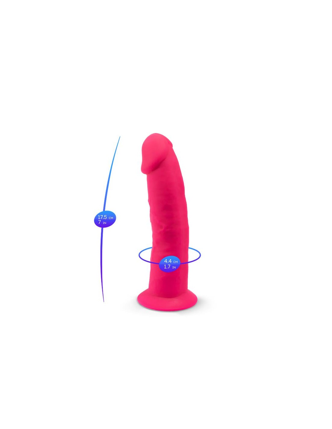 Cuenta con una punta redondeada en forma de glande, un cuerpo lleno de venas y unos testículos para añadir más sensaciones. Cuenta con una novedosa textura Memory Silicone suave, flexible y sobre todo, realista. Para que la puedas usar donde quieras cuenta con una fuerte ventosa en la base para que no te pongan límites. Es compatible con arneses para que lo puedas disfrutar con tu pareja.