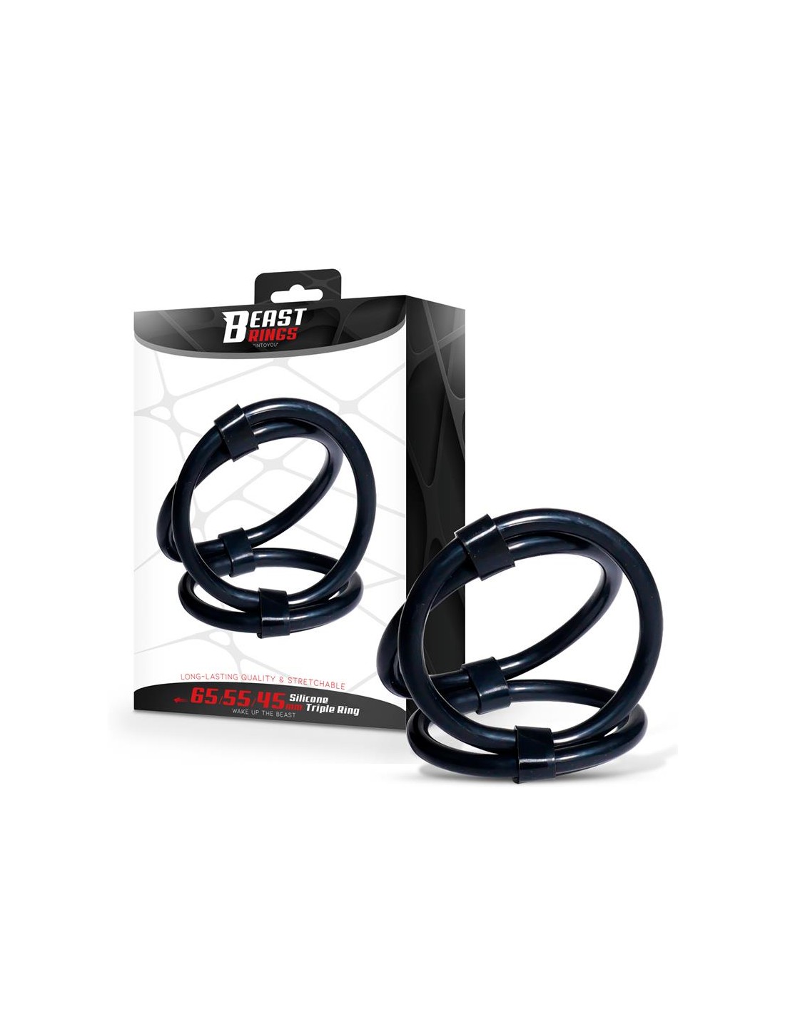 Este anillo triple para el pene cuenta con tres anillos, uno que va en la base del pene, otro para los testículos y otro para el cuerpo del pene. Esto es ideal para disfrutar por triplicado.