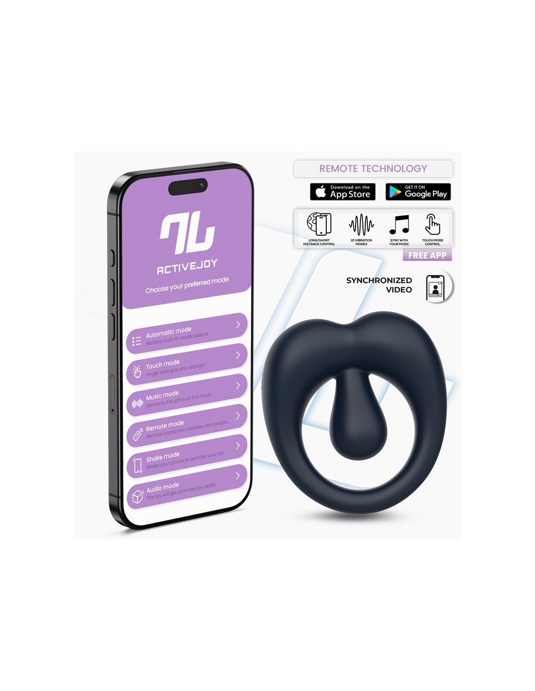 Lo más emocionante es la capacidad de controlar sus numerosas funciones a través de ActiveJoy®, nuestra aplicación gratuita. Esta innovadora App te permite disfrutar de estos juguetes a corta, media y larga distancia, brindándote flexibilidad y emoción.