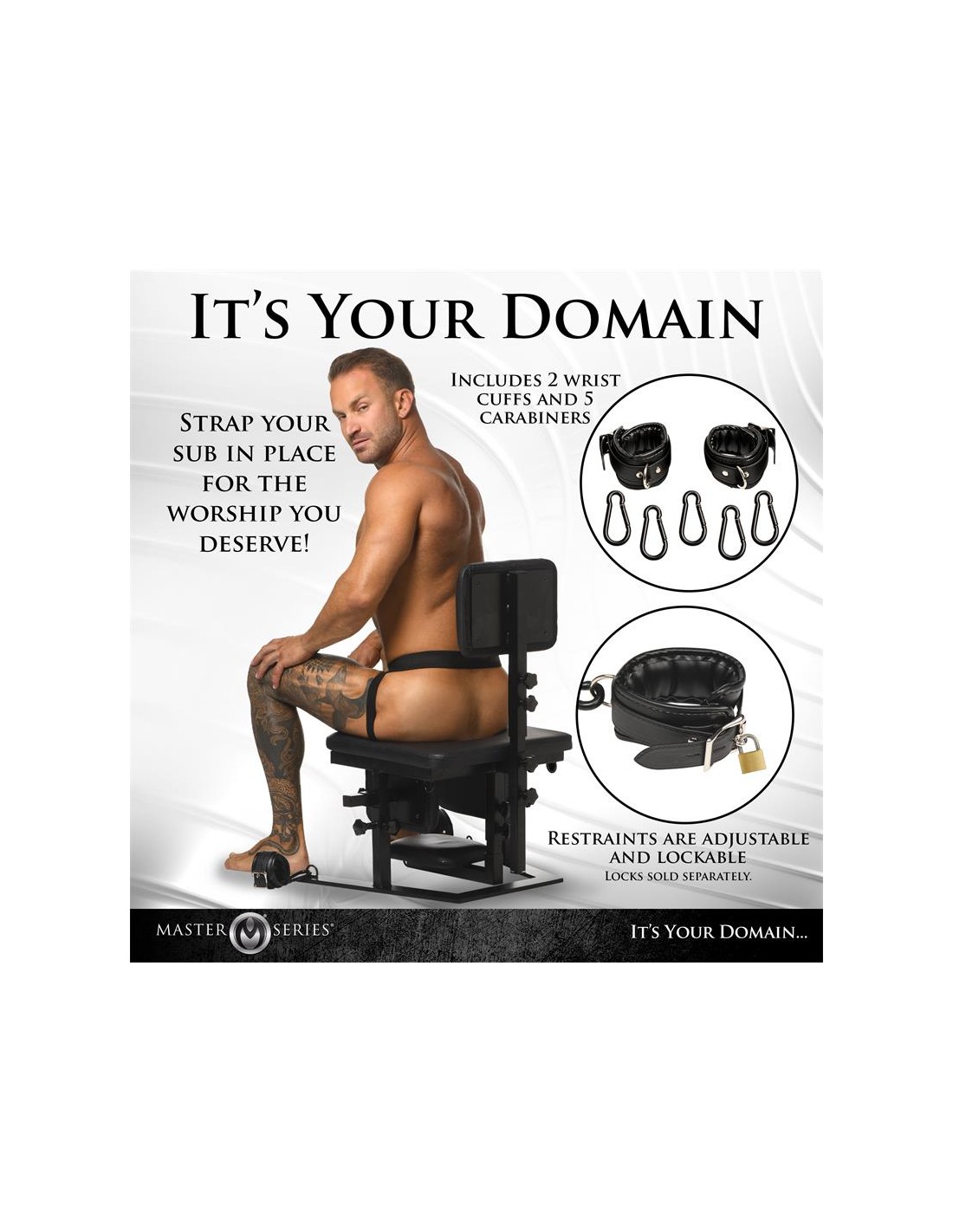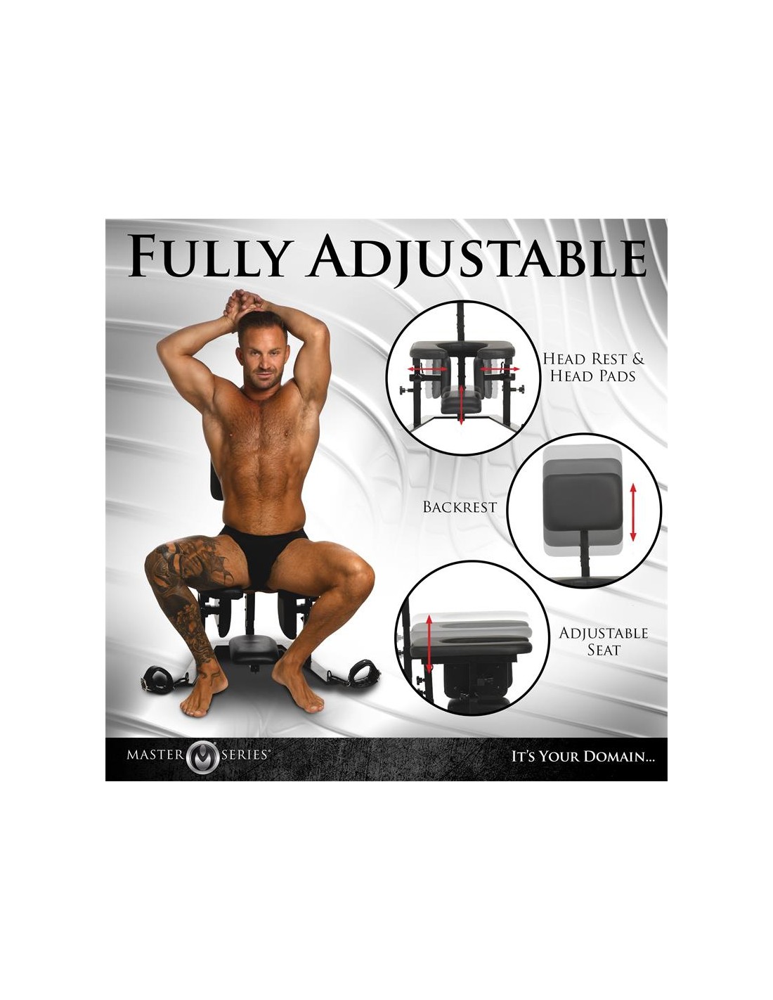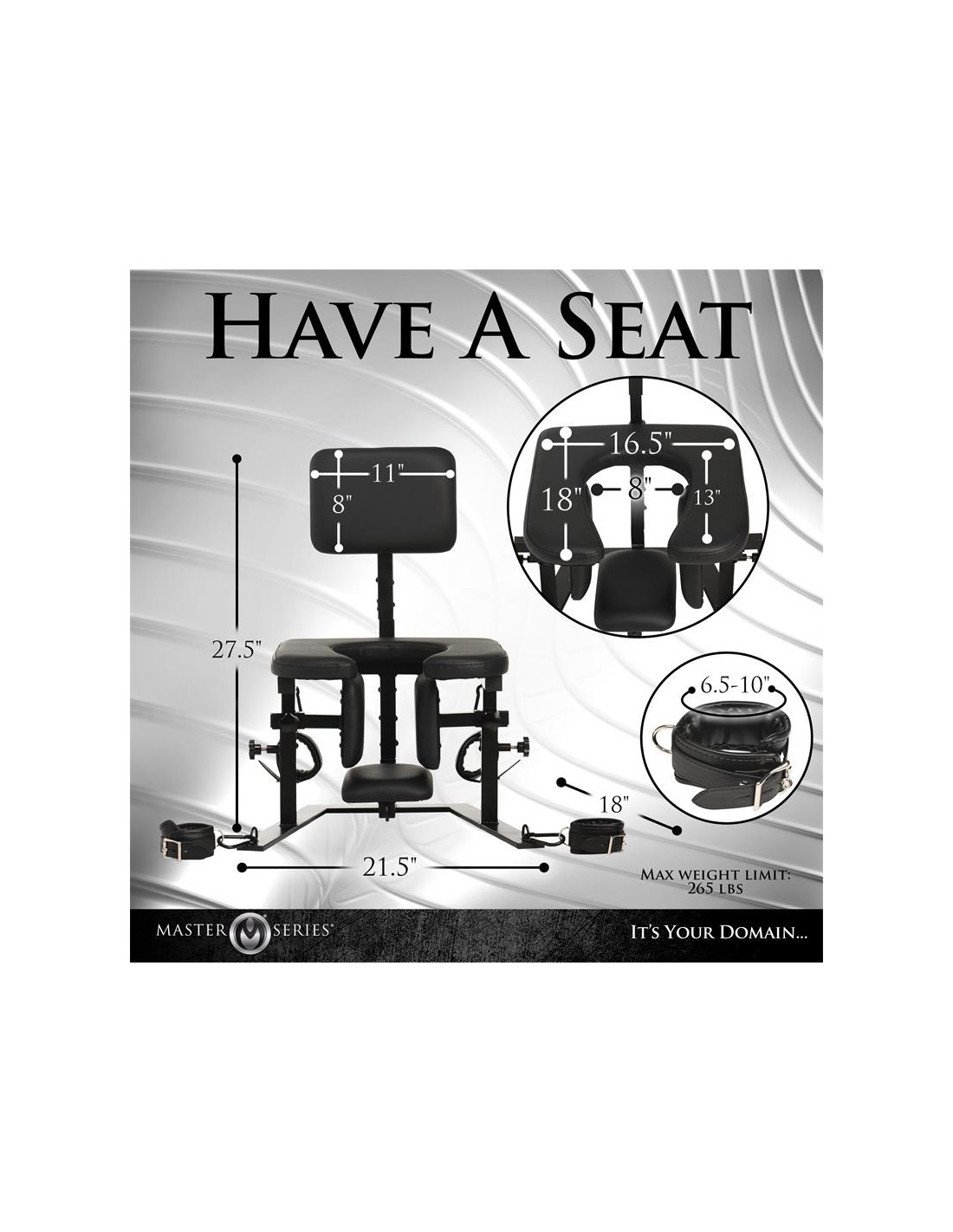 Siéntate en un trono de felpa digno de una Reina o un Rey mientras te adoran desde abajo. ¡Este Trono de Placer está diseñado para todos! Construido con hierro resistente, puede soportar hasta 265 libras. ¡Desliza la cabeza de tu pareja debajo de tu asiento y deja que te dé la atención que deseas! Perfecto para cunnilingus, analingus, teabagging u otras actividades pervertidas, el trasero y las áreas privadas pueden suspenderse fuera del alcance, o pueden bajarse para sentarse directamente en su cara. Diseñado para ser totalmente ajustable para que puedas disfrutar de la posición ergonómica perfecta para ti y tu pareja, el respaldo y el asiento son ajustables en altura para el que está sentado en el trono, y el reposacabezas y los cojines para la cabeza son ajustables en altura y ancho respectivamente para el que está acostado boca arriba. ¡Los cojines para la cabeza tienen un propósito especial! Mantienen la cabeza de tu pareja en su lugar para que no pueda girarla ni mirar nada más que tu trasero.