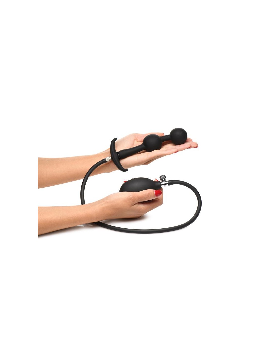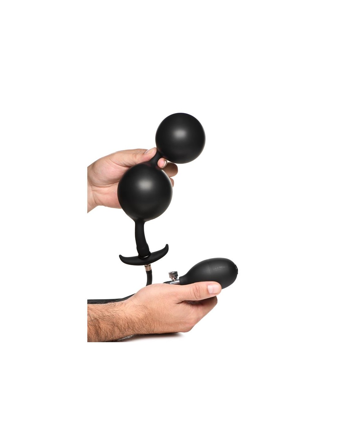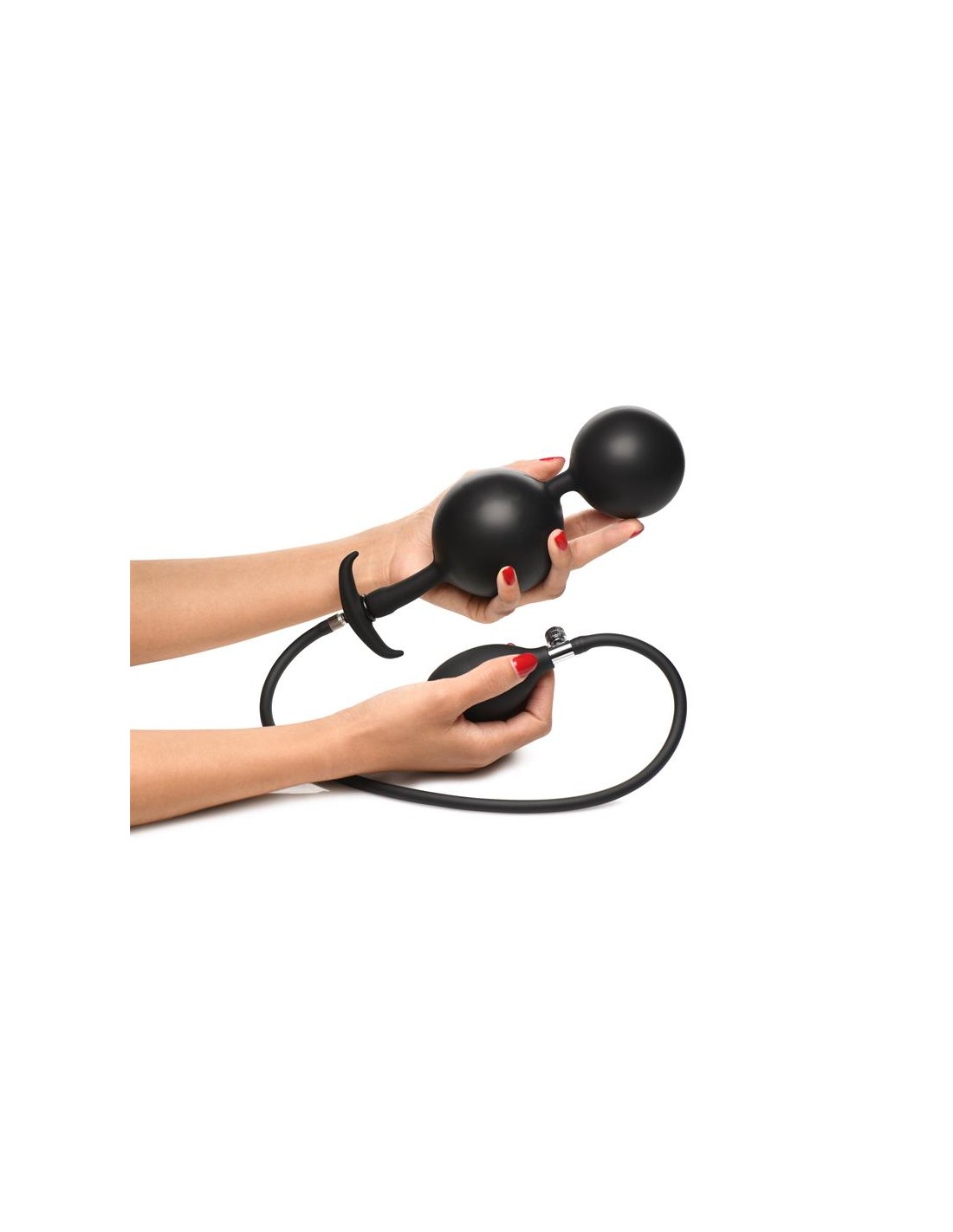 Después de la inserción y el inflado, puedes retirar la manguera y las bolas permanecerán infladas. Disfruta de la fuerza de la gravedad que tira suavemente de las bolas. Simplemente empieza añadiendo bastante lubricante, introduciendo una bola y luego la siguiente, una vez que ambas estén dentro, infla lentamente hasta el punto que te resulte cómodo. Después de usarlo, simplemente lava con agua tibia y jabón suave, rocía con un limpiador de juguetes y deja secar al aire.