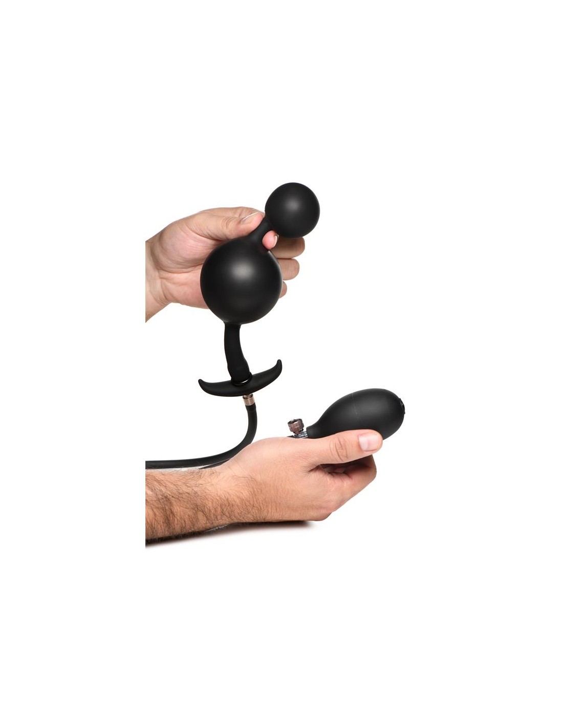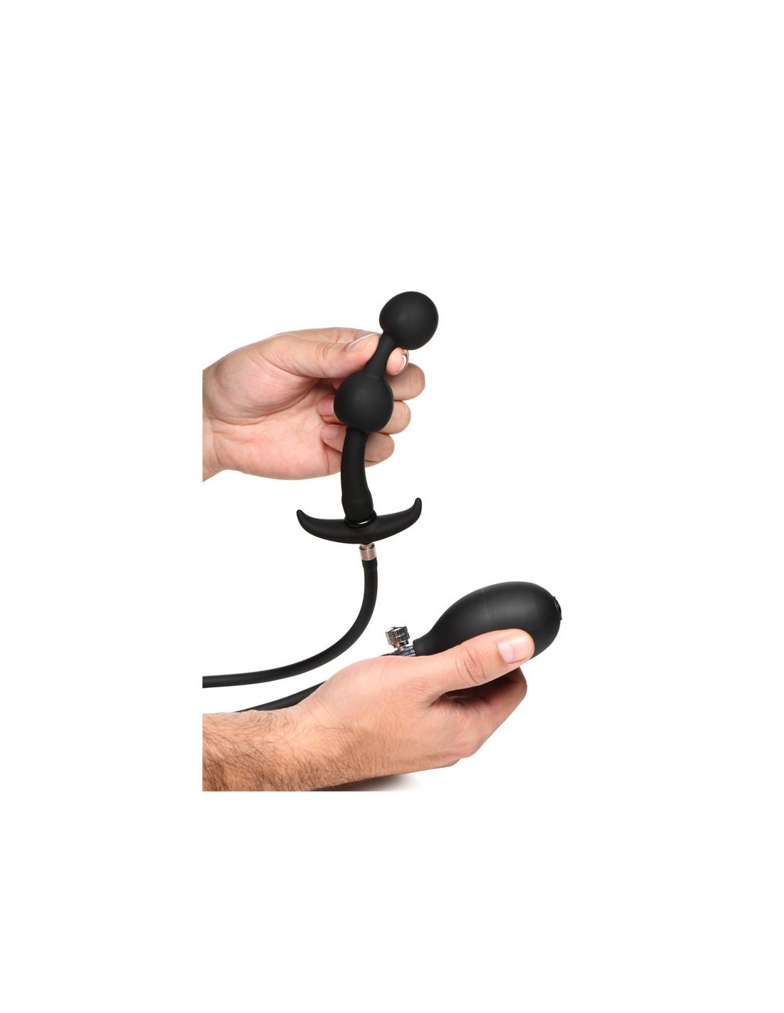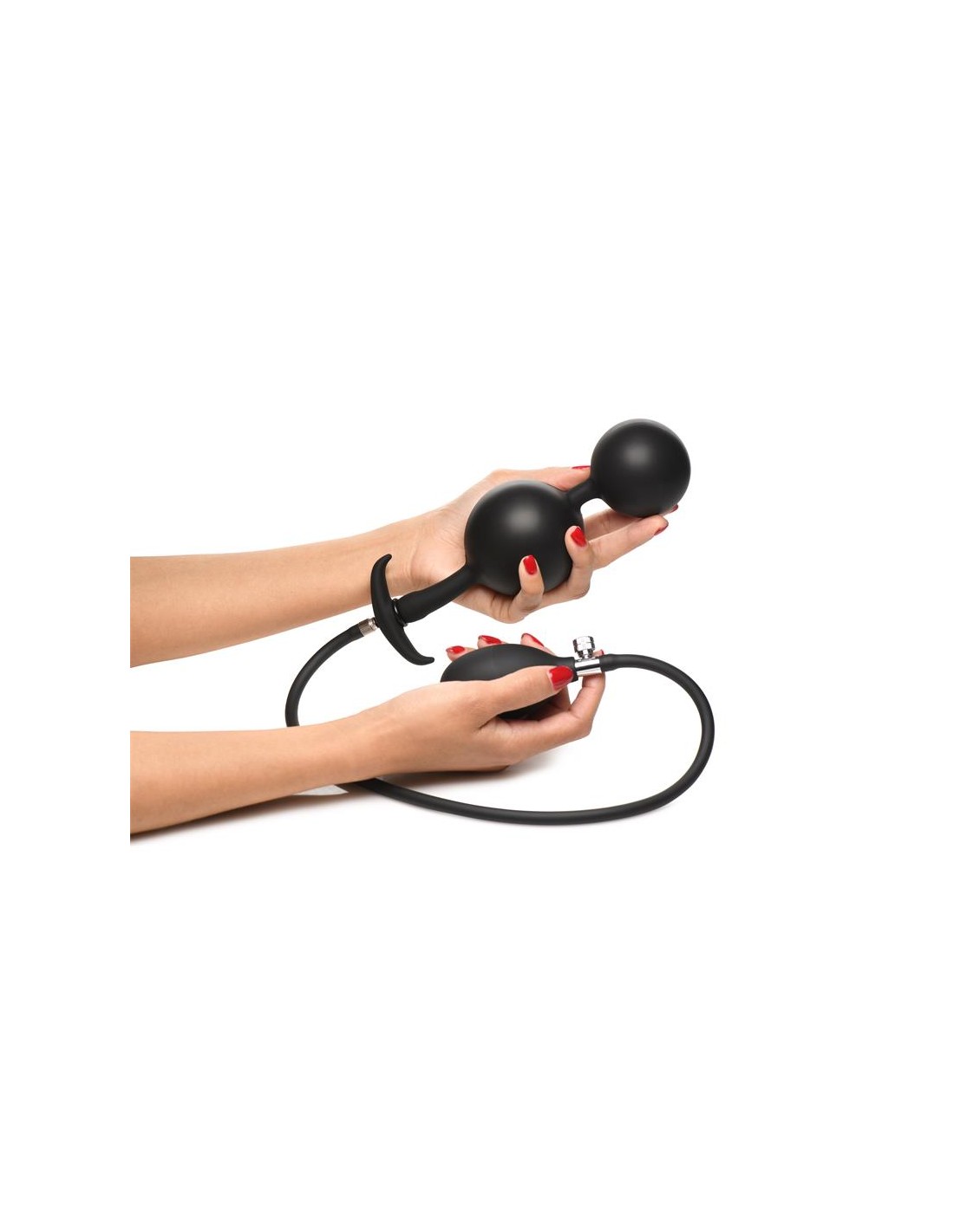 Después de la inserción y el inflado, puedes retirar la manguera y las bolas permanecerán infladas. Disfruta de la fuerza de la gravedad que tira suavemente de las bolas. Simplemente empieza añadiendo bastante lubricante, introduciendo una bola y luego la siguiente, una vez que ambas estén dentro, infla lentamente hasta el punto que te resulte cómodo. Después de usarlo, simplemente lava con agua tibia y jabón suave, rocía con un limpiador de juguetes y deja secar al aire.
