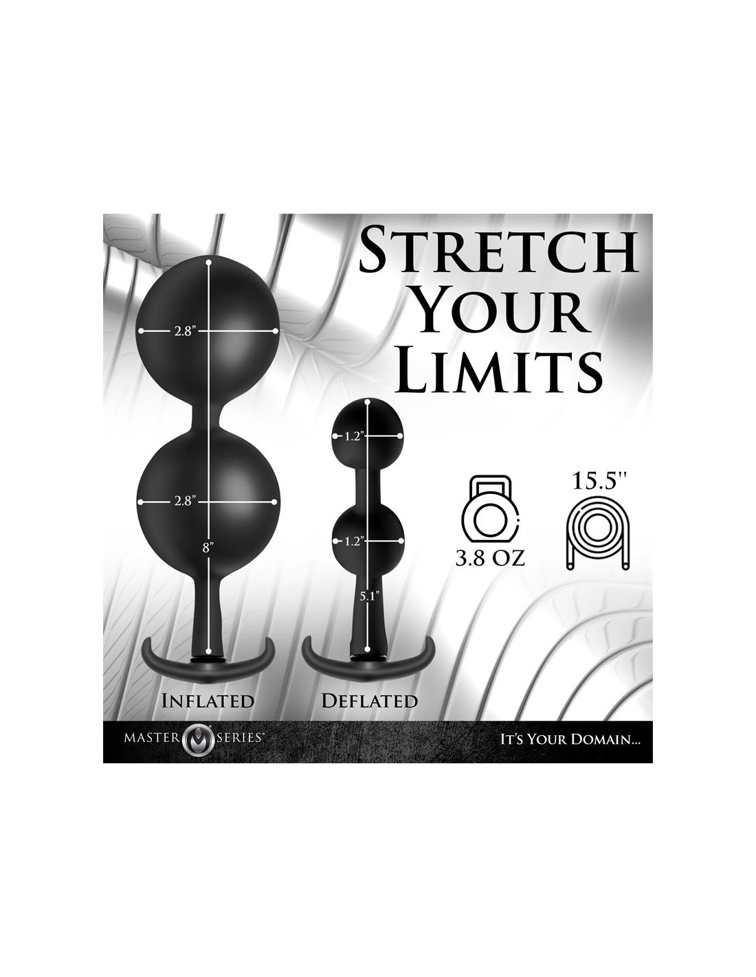 Profundiza en tus fantasías y amplía tu placer con estas bolas anales de silicona con función de inflado con peso. Las dos bolas grandes están hechas de acero resistente y recubiertas de silicona elástica y suave. Podrás inflar las bolas de 3 a 7 cm de ancho para estimular tu punto A o P. Controlas la presión y la liberación con la válvula de liberación rápida incorporada, que te permite desinflar rápida o lentamente.