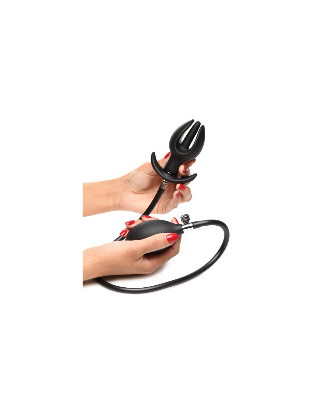 ¡Prepárate para subir la presión con este plug anal inflable en forma de ancla! La silicona suave y tersa tiene una punta cónica en el centro y lados curvos y redondeados para facilitar la inserción. Los entusiastas del sexo anal de cualquier nivel disfrutarán de cómo este plug. Se expande desde 8 cm de largo y 4,6 cm de ancho a 12,7 cm de largo y 14 cm de ancho. La intensa presión interna presiona el esfínter mientras la base con brida mantiene el plug anclado en su lugar. Después de usar la pera de silicona suave para inflar el plug al nivel deseado, puedes retirar la manguera y el plug se mantendrá inflado. ¡Disfruta la sensación de estar lleno hasta el límite!