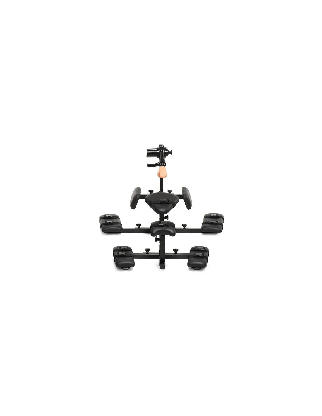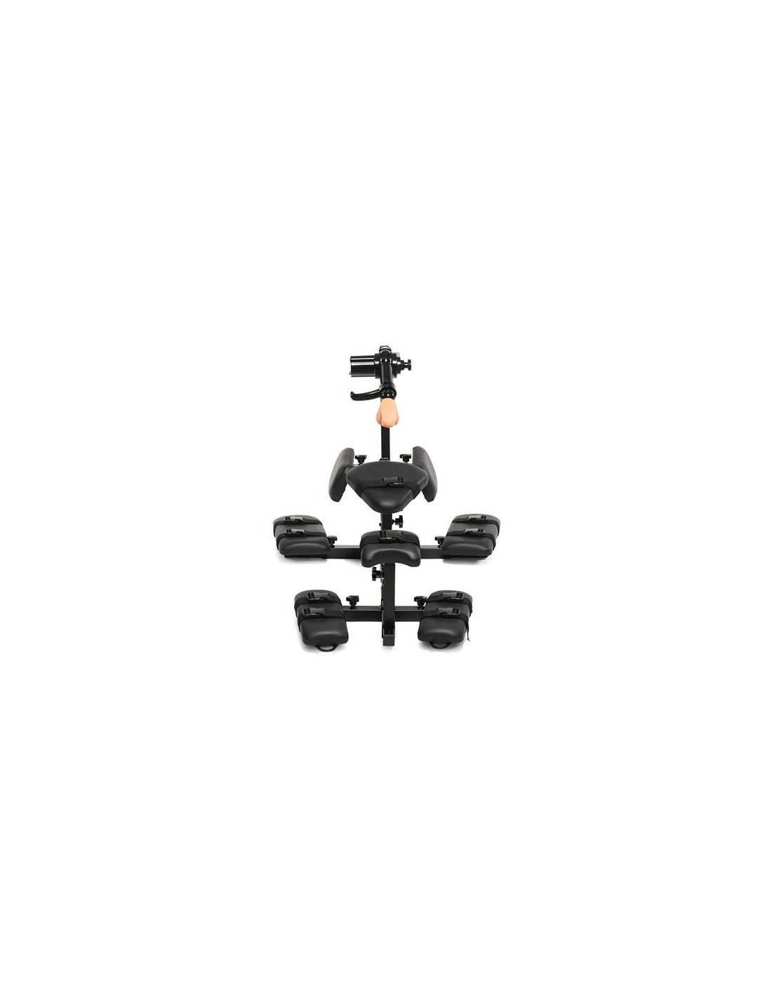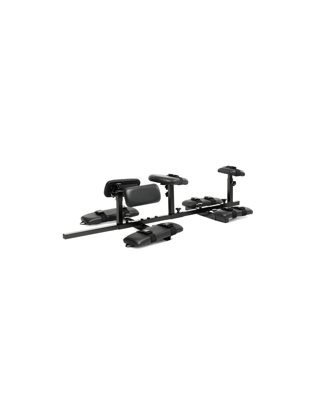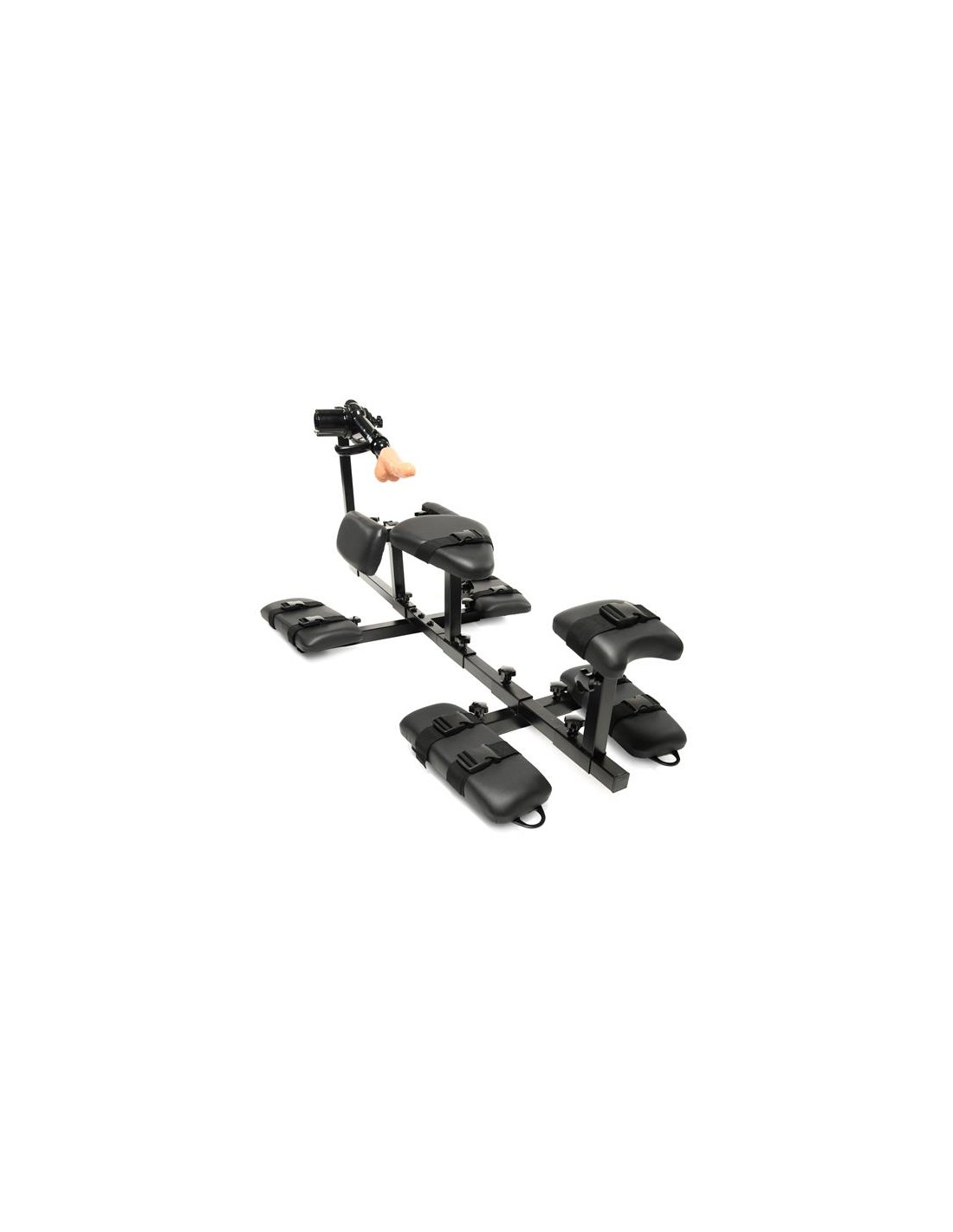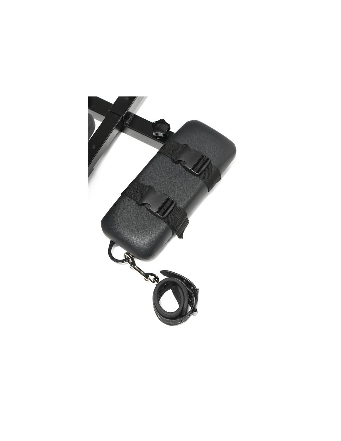 - Empalizada horizontal: Esta resistente empalizada de acero está orientada de forma que usted o su pareja puedan tumbarse boca abajo y disfrutar del cómodo acolchado de los cojines recubiertos de cuero sintético, sin perder la sujeción.