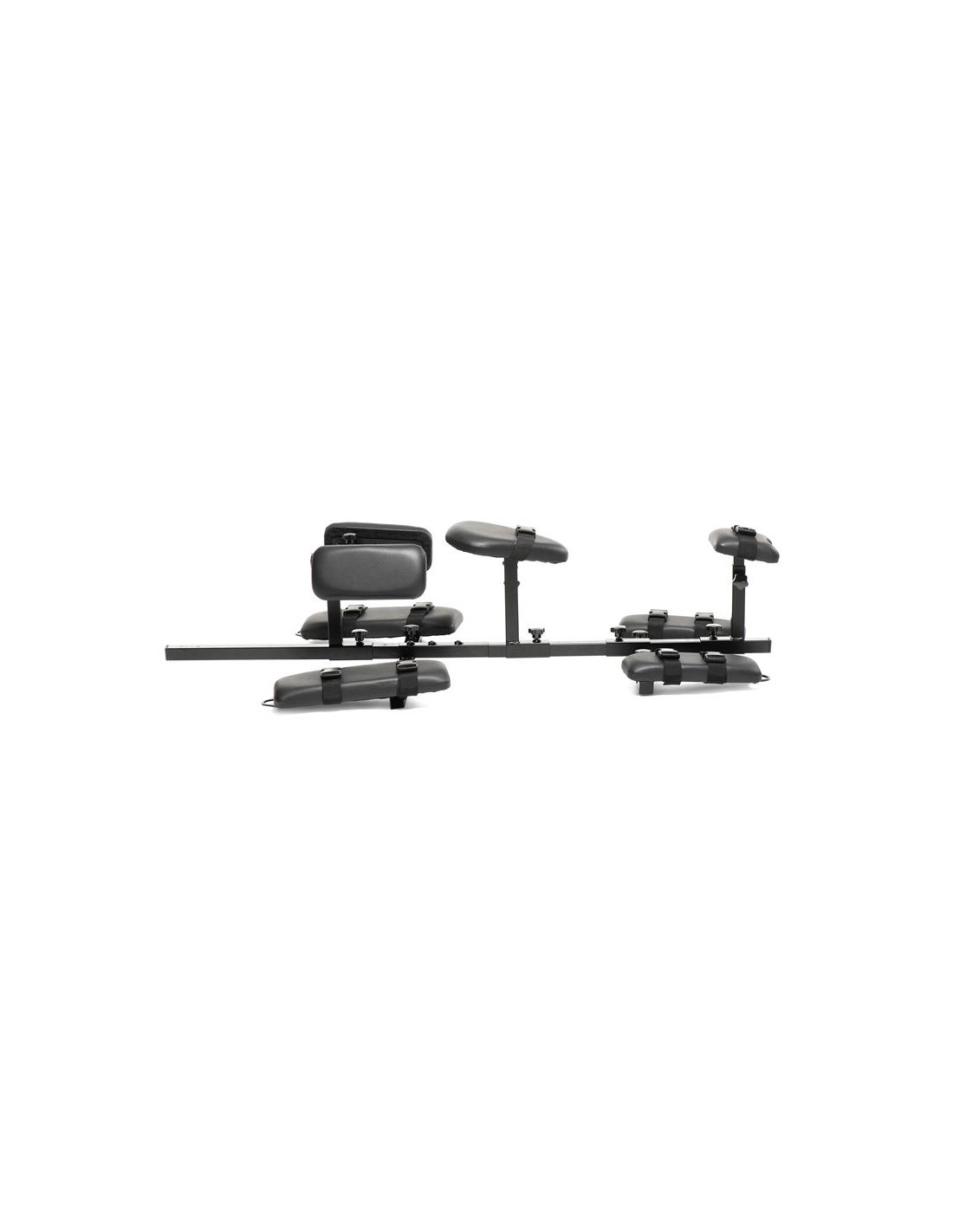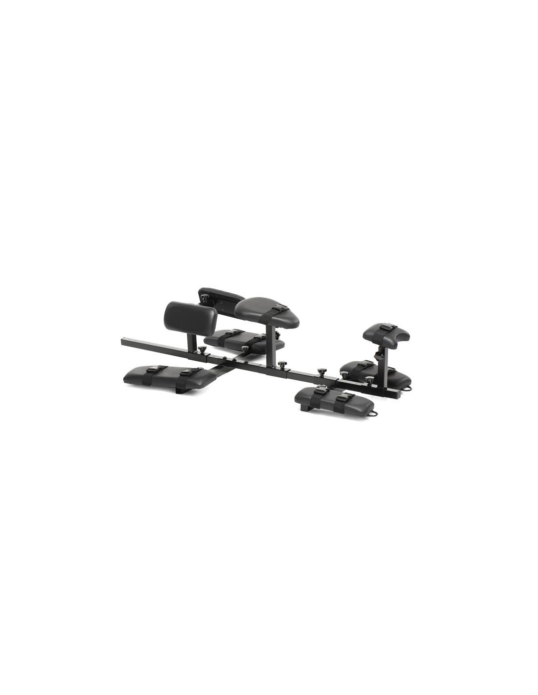 - Correas y puntos de sujeción: Cuenta con 10 correas de nailon con hebillas de plástico ABS para sujetar al sumiso. Dos correas para cada extremidad, una detrás de la cintura y otra detrás del cuello. Además, cuenta con 4 puntos de sujeción de acero para esposas de muñecas y tobillos.