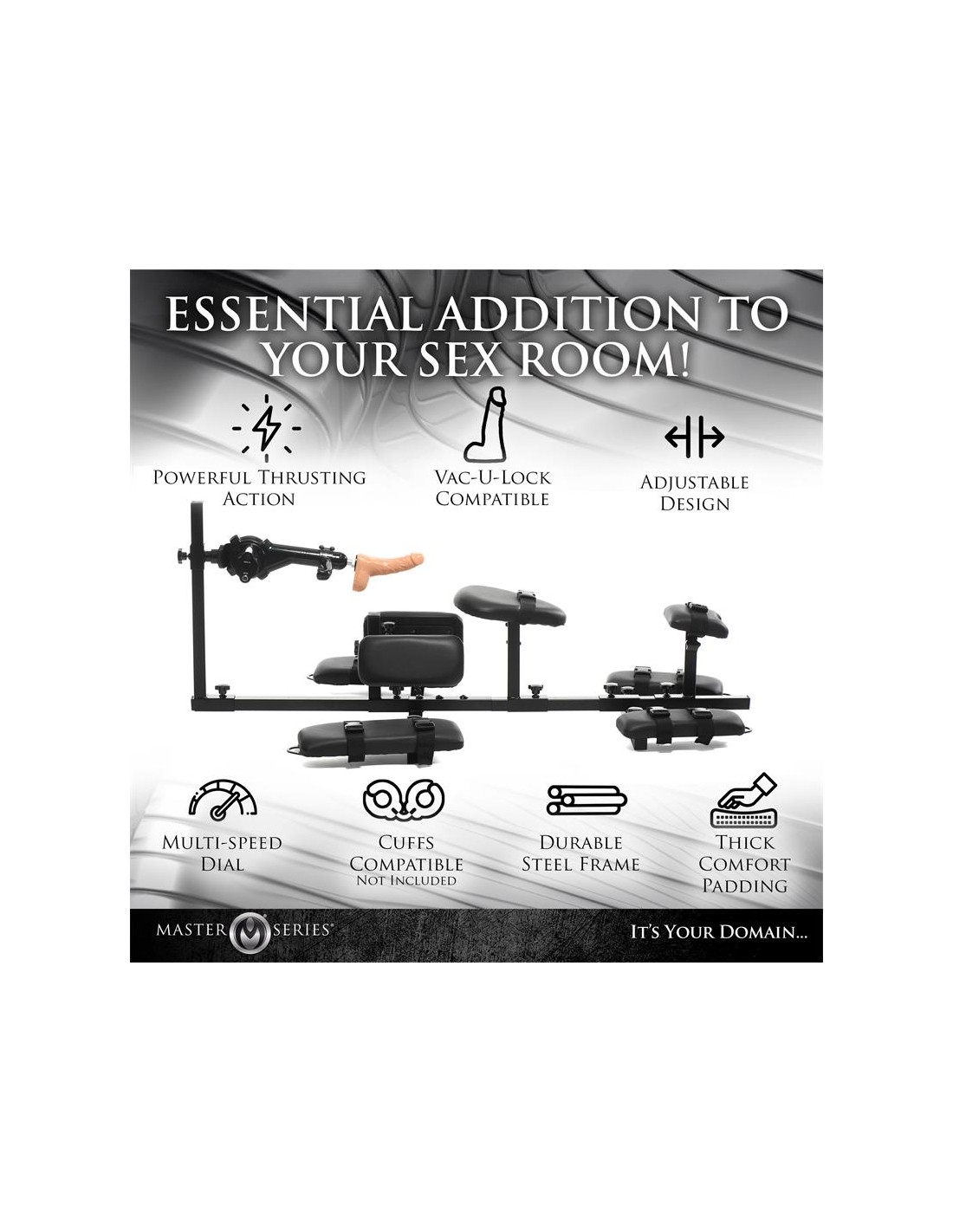Es ajustable para adaptarse a diferentes longitudes de torso. Todos los cojines son de felpa y acolchados, y están cubiertos de cuero sintético vegano, cómodo y fácil de limpiar. Tu sumiso estará inclinado, como si estuviera montado en un caballo, ¡así que puedes penetrarlo a lo perrito con tu cuerpo, tus manos o con la máquina sexual! La máquina sexual se puede usar manualmente y separar, o puedes conectarla a la máquina para que penetre automáticamente hasta 195 RPM. El consolador está hecho de TPE y solo debe usarse con lubricantes a base de agua. Esta máquina sexual se enchufa a la pared para que nunca se quede sin energía.