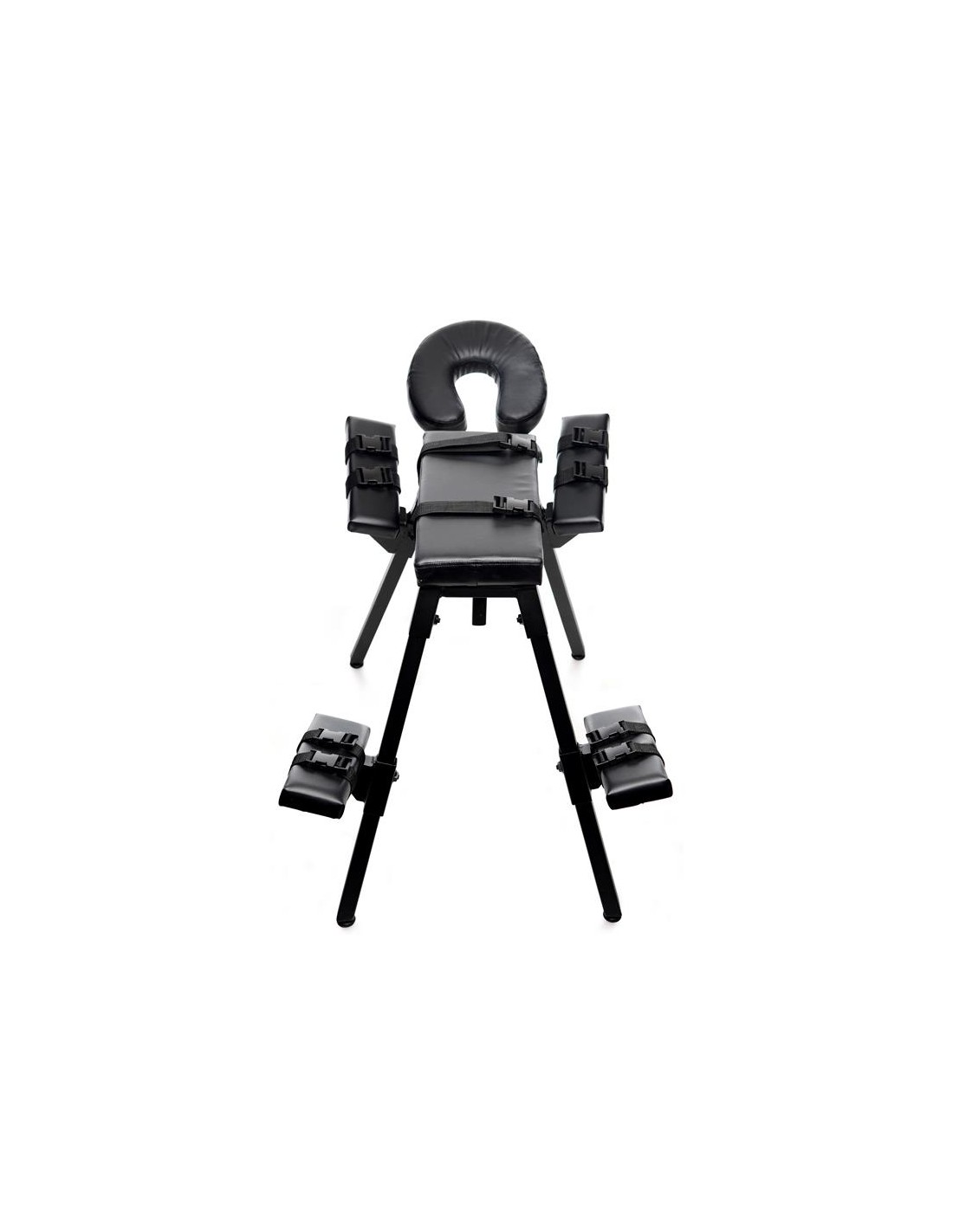 ¡Haz realidad tus fantasías más oscuras o prepárate para intensas escenas de juego impactante al atar a tu pareja al Banco Sexual Obedience Extreme! Este resistente mueble sexual está hecho de acero robusto, con cómodo acolchado para el cuerpo, las piernas, los brazos y la cabeza de tu pareja, para que puedas jugar con intensidad durante horas. ¡Mantén a tu sumiso indefenso y a tu merced! Este banco ergonómico lo dejará expuesto a azotes, penetración o ambos. ¡Incluso podrás llegar más profundo que nunca! El reposacabezas en forma de U no amortiguará sus gemidos ni chillidos mientras juegas. Juega sin las correas o mantenlo completamente atado. Las hebillas de liberación rápida son fáciles de usar. Ajusta la altura de los brazos y las piernas, o retira el reposacabezas para personalizar completamente la experiencia.