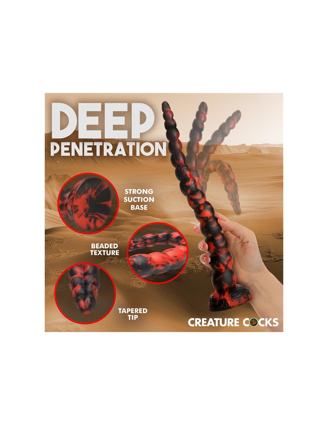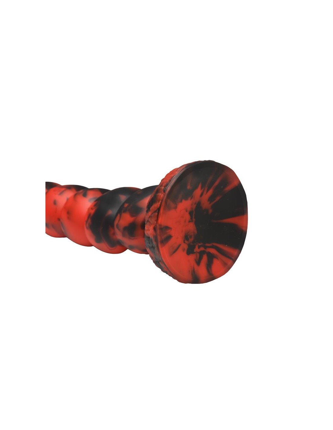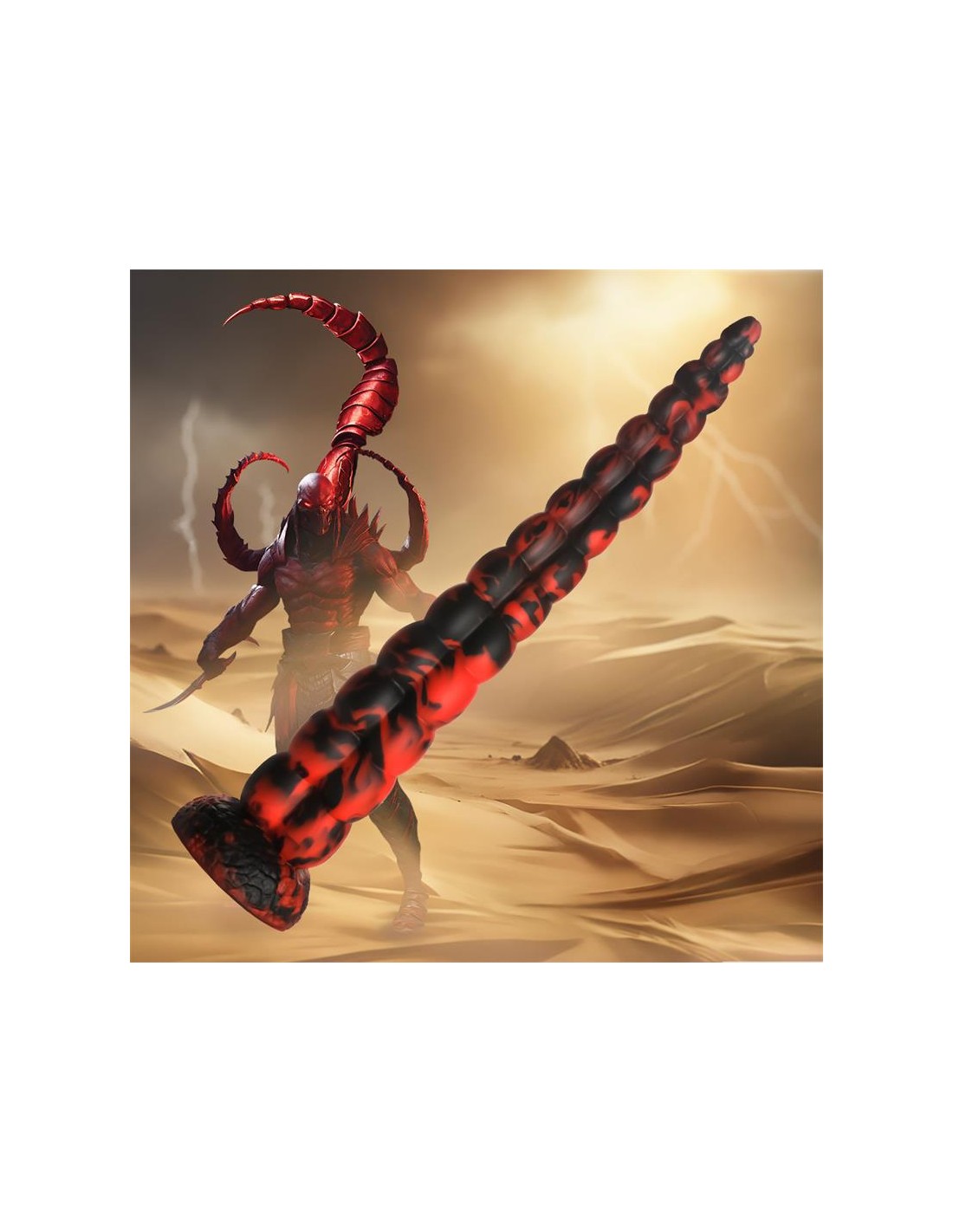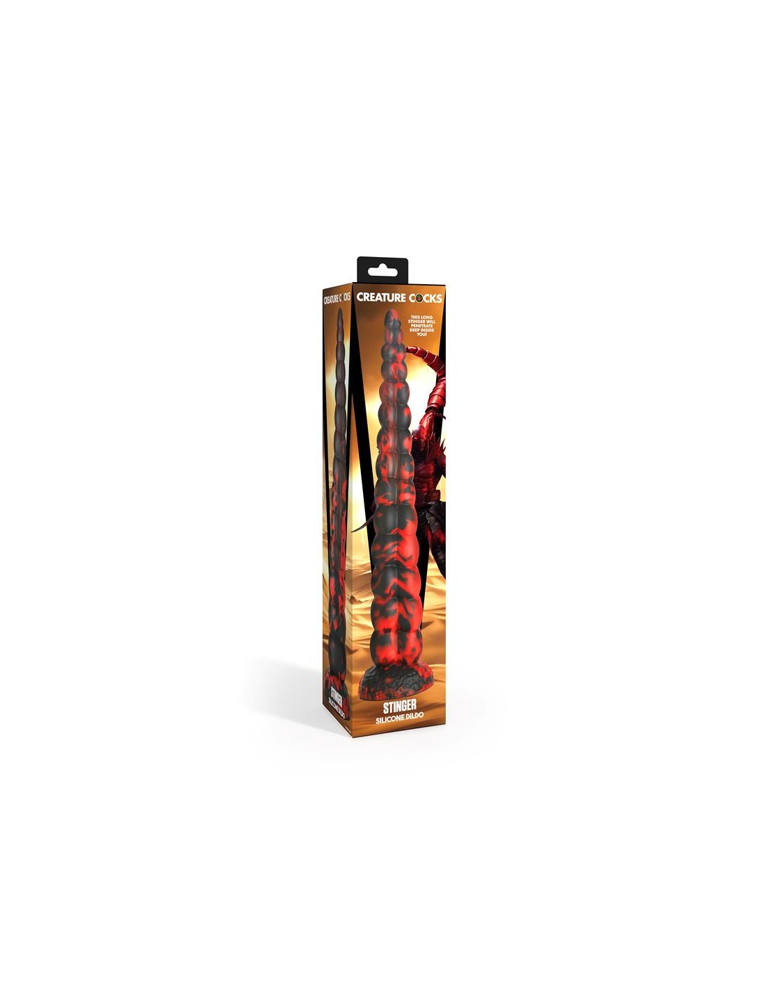 Da rienda suelta a tus fantasías con el dildo de silicona Stinger. Con casi 35 cm de largo, este juguete único luce un impactante diseño en rojo y negro que imita la imponente cola de un escorpión si hubiera evolucionado en un planeta alienígena. Su punta cónica y sus protuberancias graduadas te proporcionarán sensaciones intensas que jamás hubieras imaginado. Fabricado con silicona de primera calidad, libre de ftalatos, es seguro para tu cuerpo y duradero. Disfruta de una experiencia con manos libres gracias a su robusta base con ventosa y aprecia su cuerpo firme pero flexible para un juego sin esfuerzo.