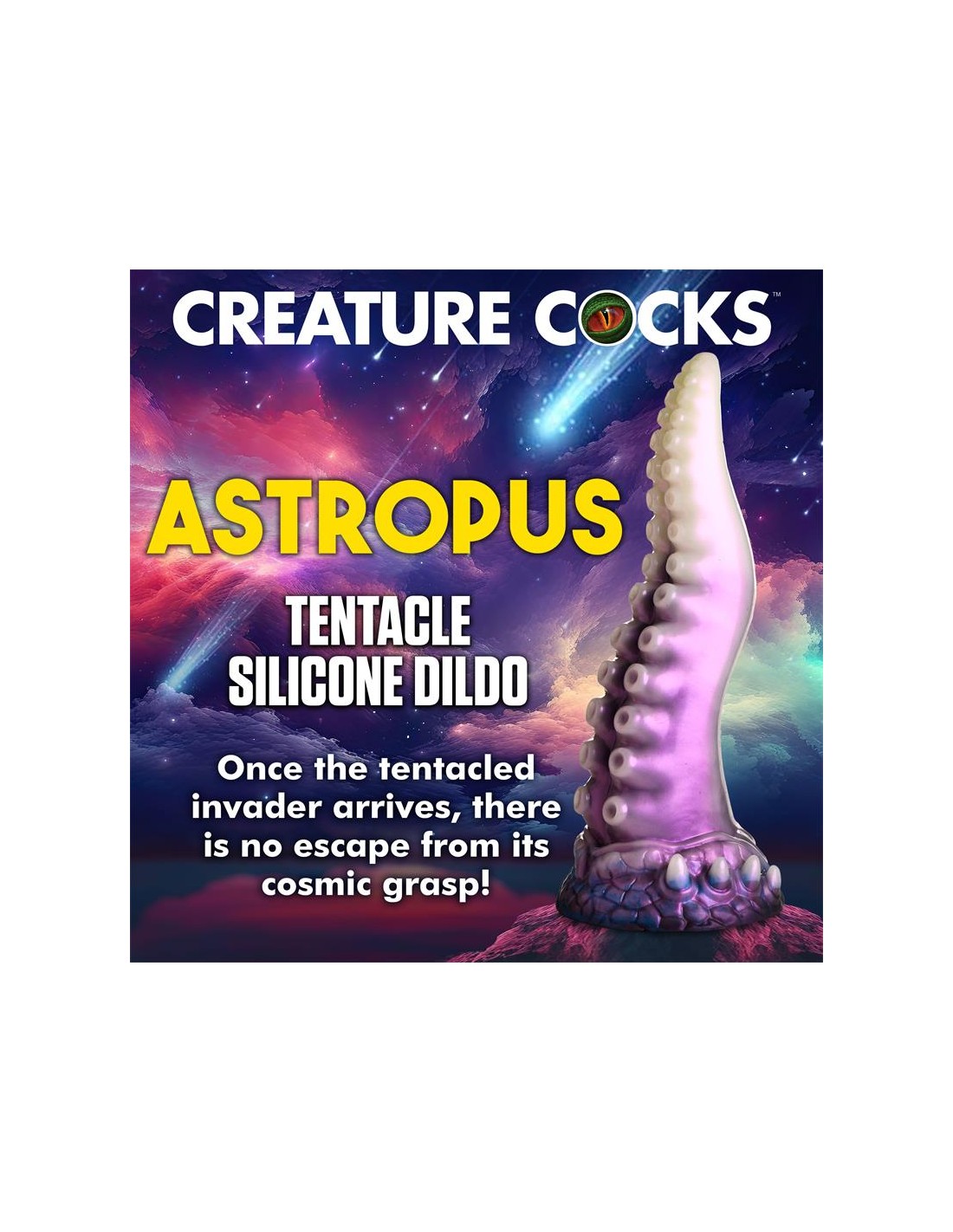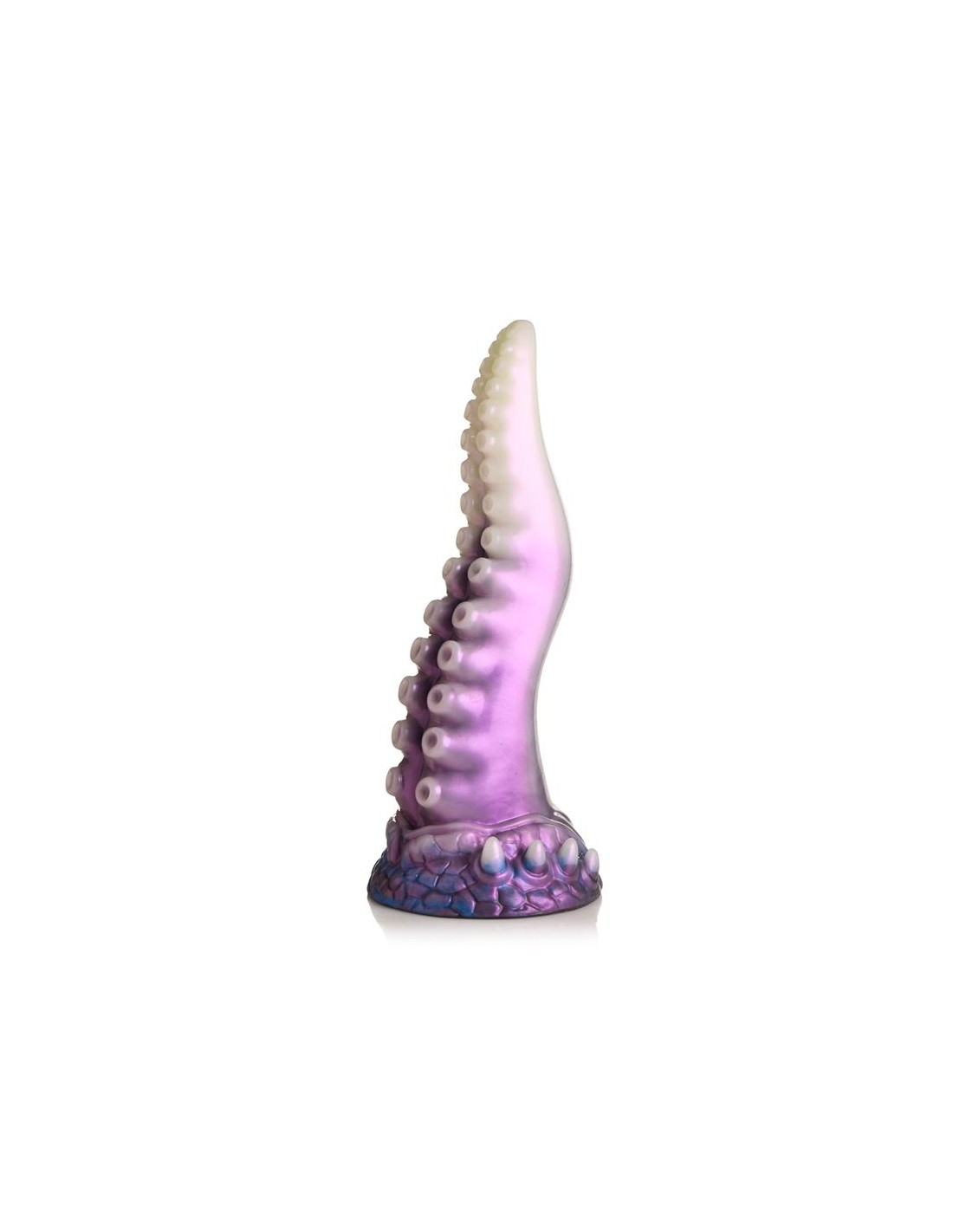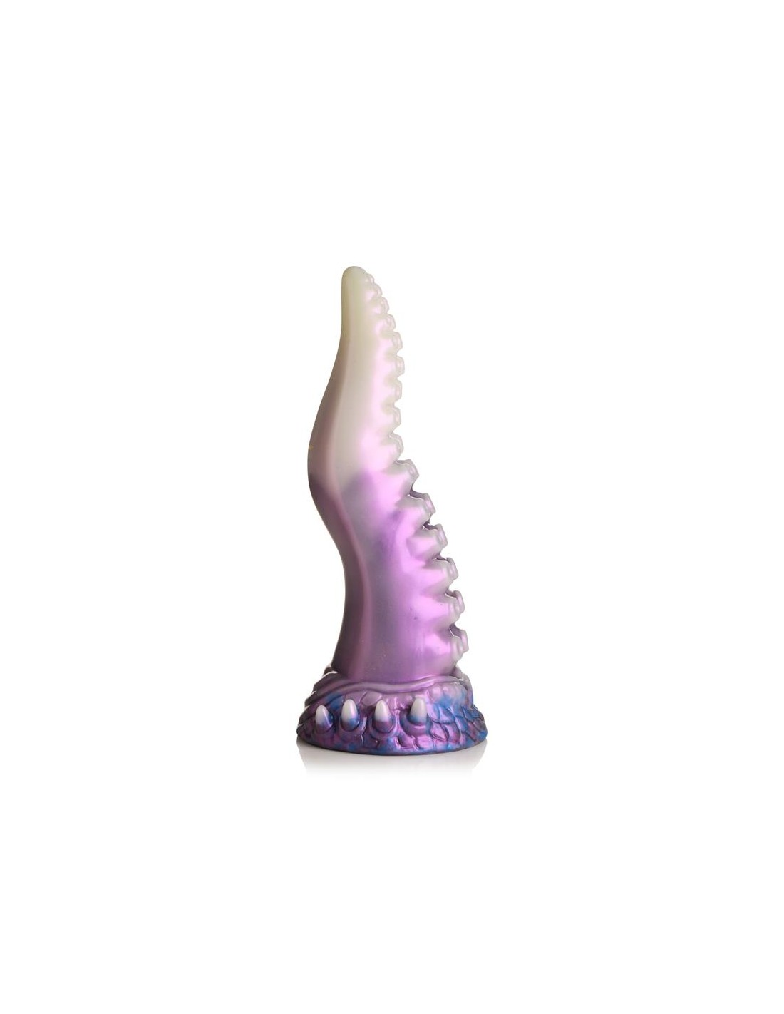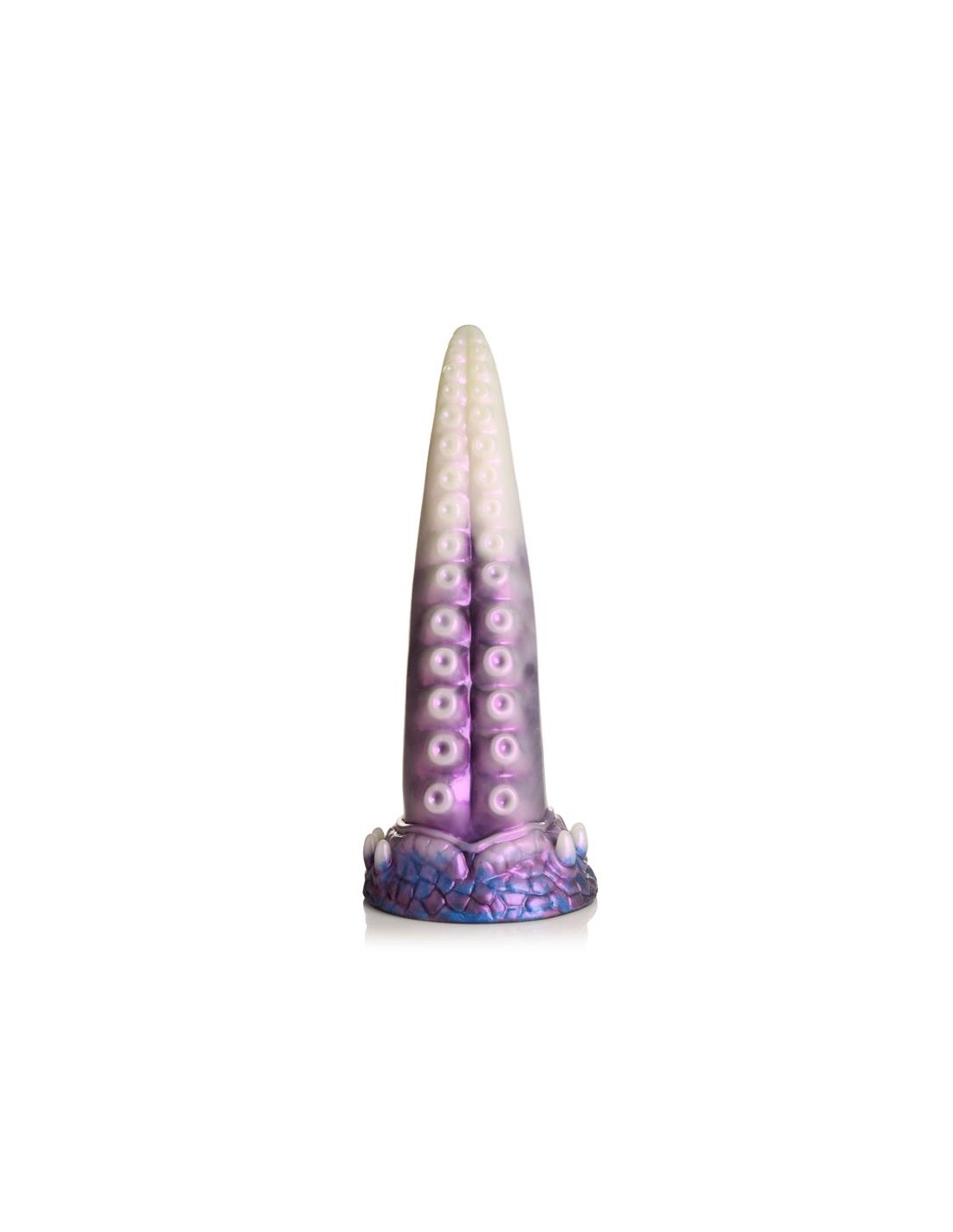 ¡Una aterradora criatura espacial con tentáculos acaba de ser descubierta! Este tentáculo blanco perlado, morado y azul es el pene perfecto. La punta cónica es fácil de insertar, el cuerpo ancho te abre y las ventosas añaden una textura estimulante. Hecho de silicona premium sin ftalatos, tiene un núcleo firme y una superficie suave y sedosa. ¡Explora todas las escenas de ciencia ficción, fantasía, juegos de rol o cosplay que desees con este épico juguete para adultos! Úsalo solo con lubricantes a base de agua para obtener mejores resultados. Después de jugar, lava el dildo con agua tibia y jabón y usa un limpiador de juguetes para limpiarlo. Sécalo y guárdalo en un lugar fresco y oscuro, alejado de la luz solar directa.
