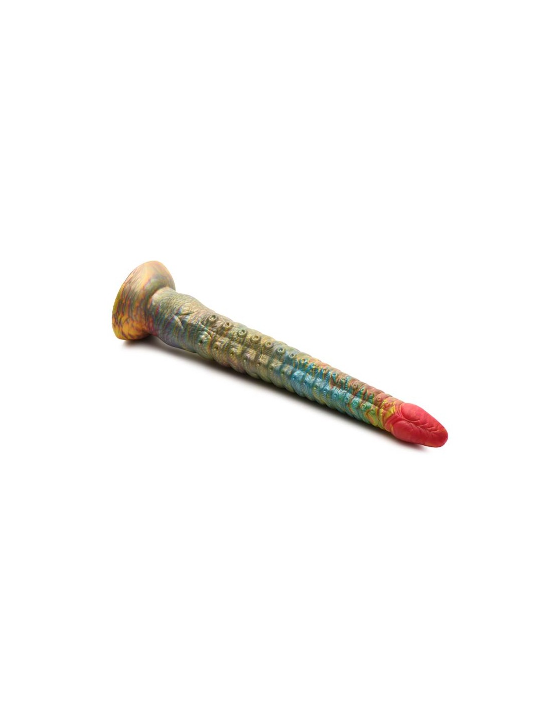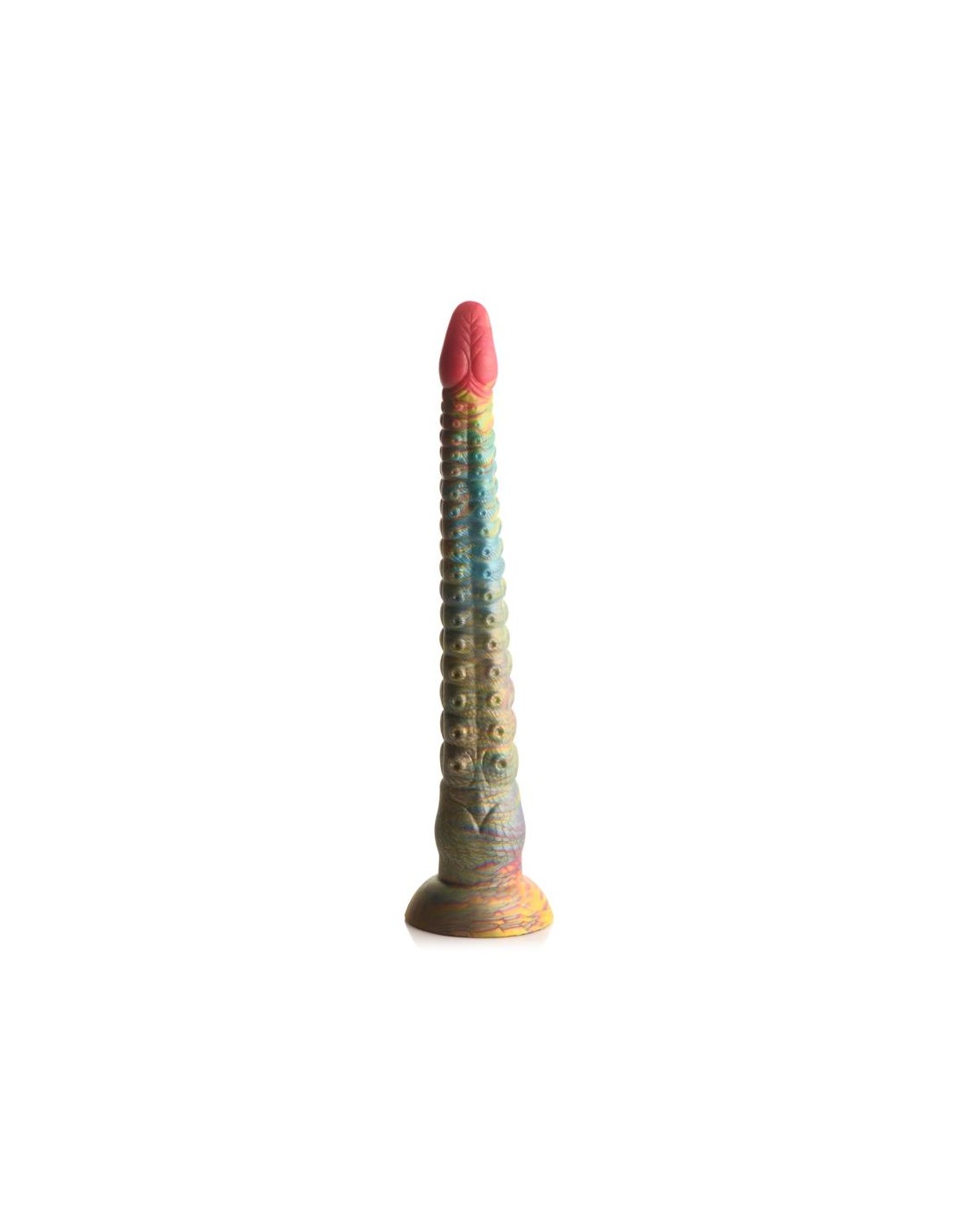 ¡Este largo tentáculo te llegará a lo más profundo! Diseñado para disfrutar a escondidas, este colorido dildo con tentáculos cuenta con una hilera de ventosas en un lado y un cuerpo fibroso y estriado a lo largo de su largo brazo de 28 cm. Su colorido diseño combina rojos, amarillos y azules para crear una apariencia única, escamosa y mística que destaca entre tus juguetes. Hecho de silicona premium sin ftalatos, tiene un núcleo firme, es flexible y suave. Usa su amplia base con ventosa para mantenerlo en su lugar y úsalo con las manos libres, o combínalo con un arnés con correa compatible para cosplay erótico, juegos de rol de fantasía o juegos de pegging intenso. Este delgado dildo tiene una punta cónica para una fácil inserción y se agranda gradualmente a medida que lo introduces más profundamente, pero se mantiene relativamente delgado para que puedas llegar más lejos y jugar durante más tiempo. Después de terminar el juego, lava el dildo con agua tibia y jabón y usa un limpiador de juguetes para limpiarlo. Sécalo y guárdalo en un lugar fresco y oscuro, alejado de la luz solar directa.